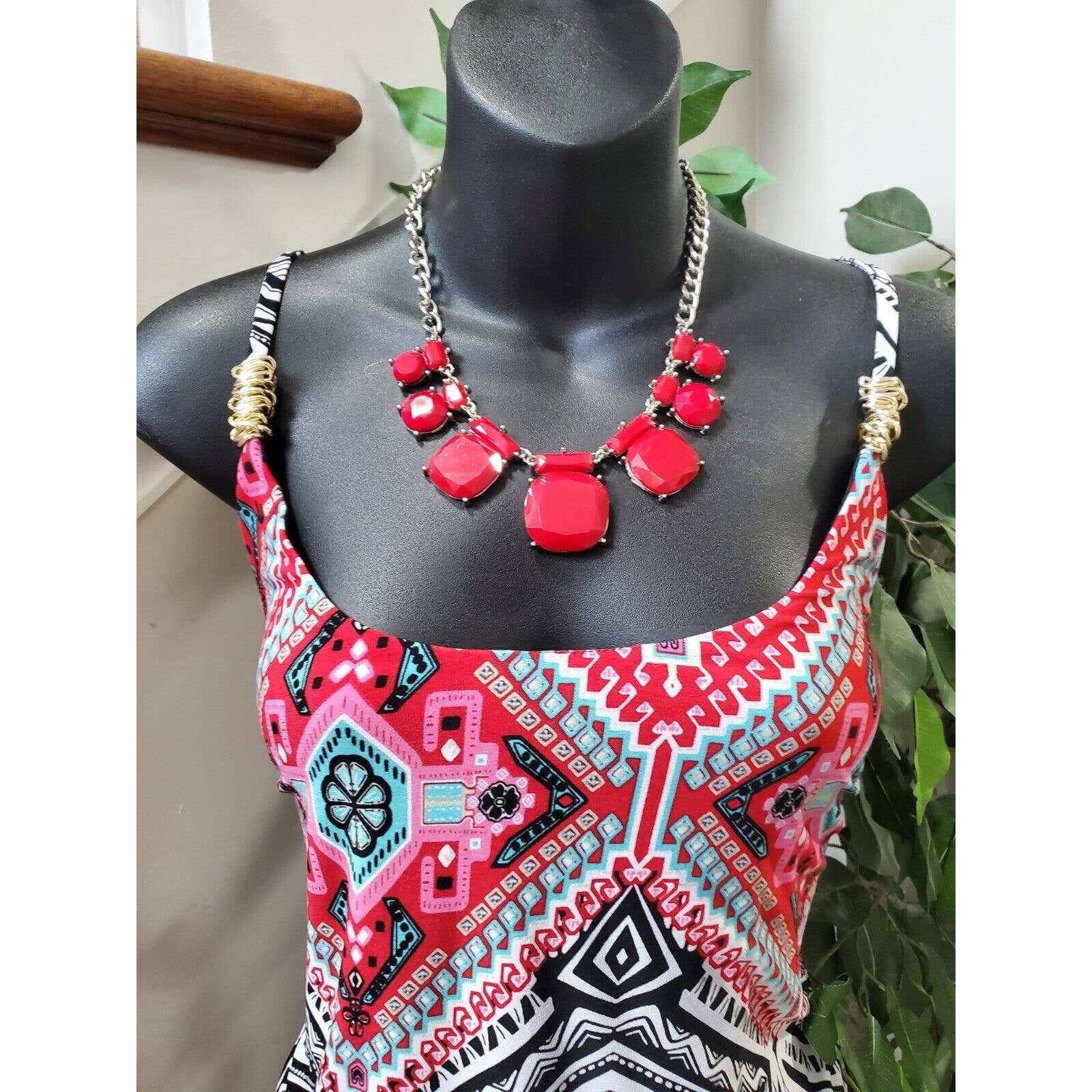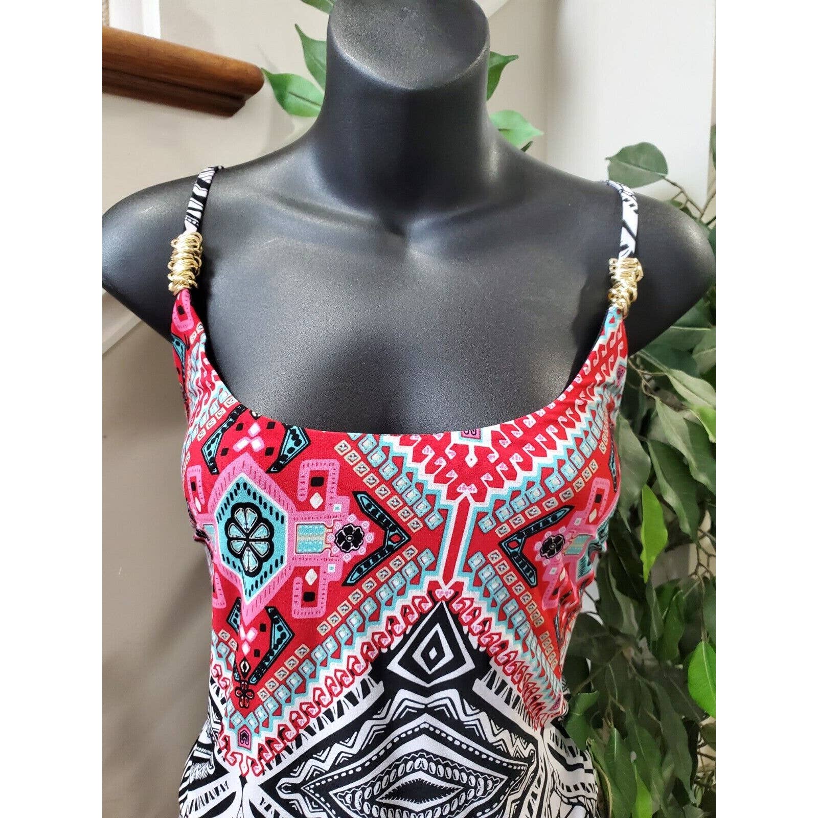 Cato Women White & Black Polyester Scoop Neck Sleeveless Long Maxi Dress Size L.