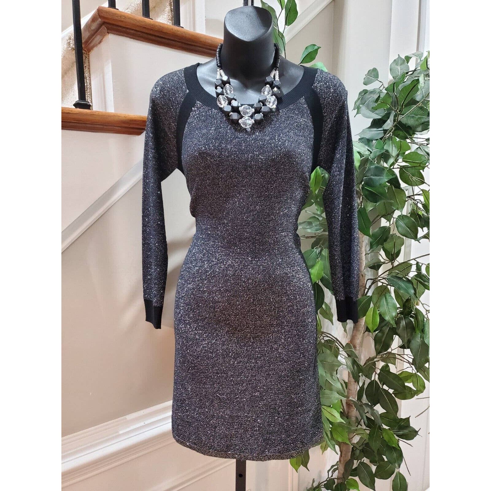 5/48 Women Gray Viscose Round Neck Long Sleeve Casual Knee Length Dress Size XS.