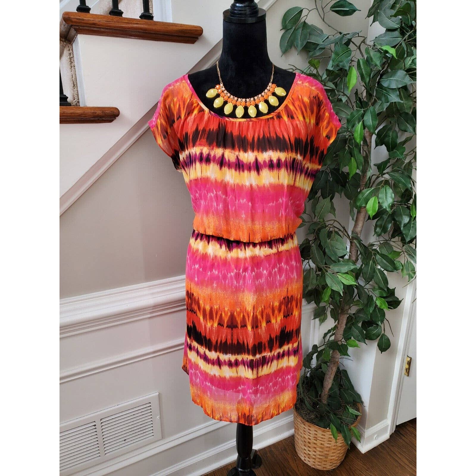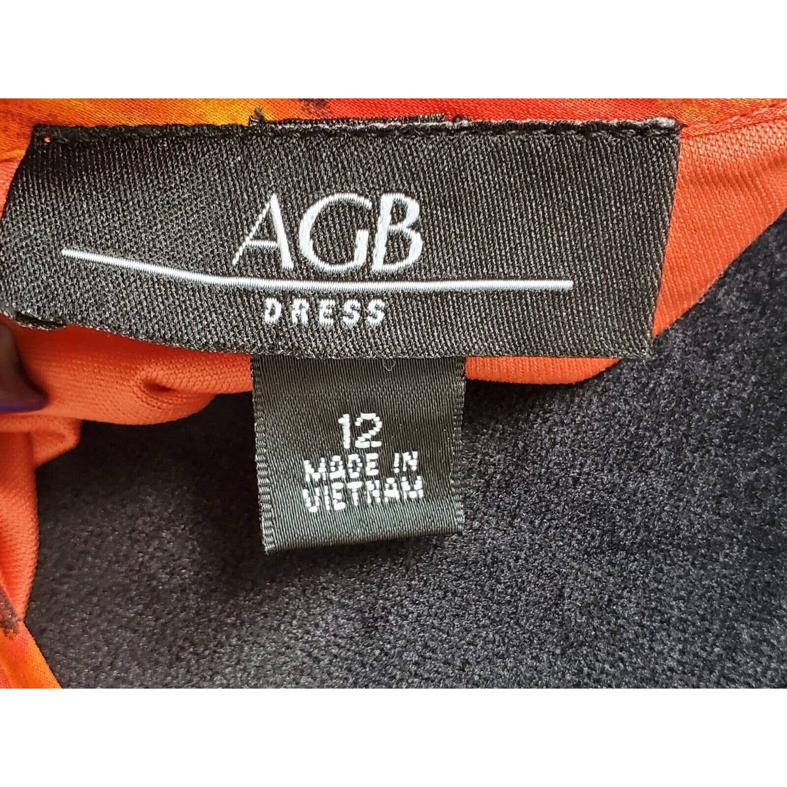 AGB Women Multicolor Polyester Round Neck Sleeveless Knee Length Dress Size 12.