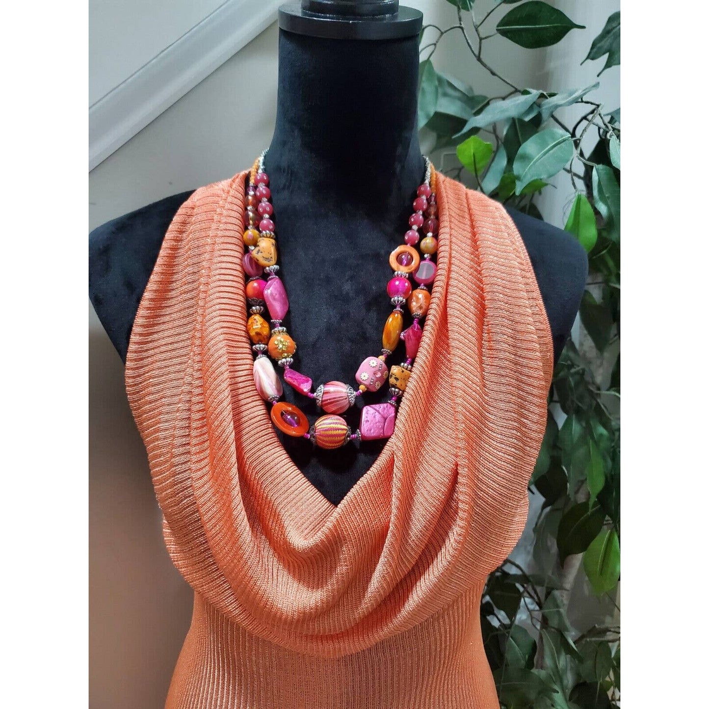 Description Arden B. Women's Orange 100% Rayon Cowl Neck Sleeveless Knee Length Dress Size M.