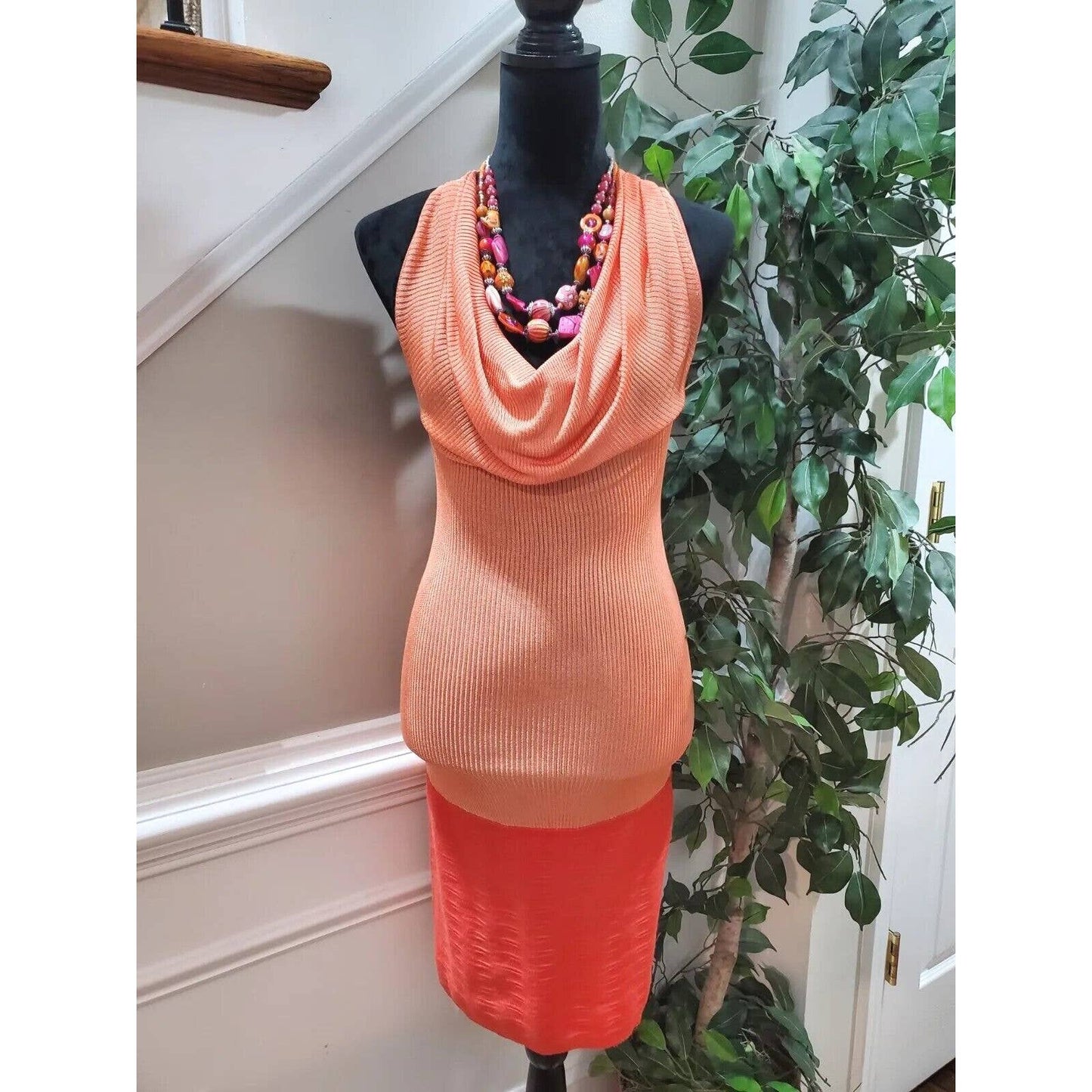 Arden B. Women's Orange 100% Rayon Cowl Neck Sleeveless Knee Length Dress Size M