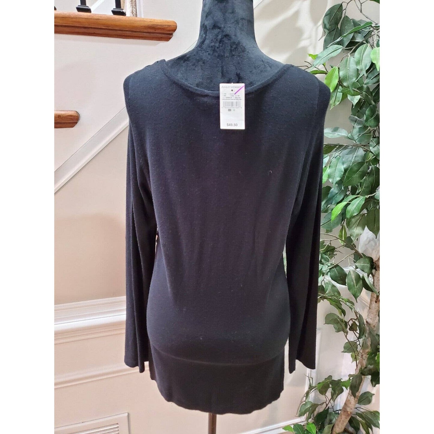 Ashley Stewart Women Black Rayon Scoop Neck Long Sleeve Pullover Knit Sweater 12
