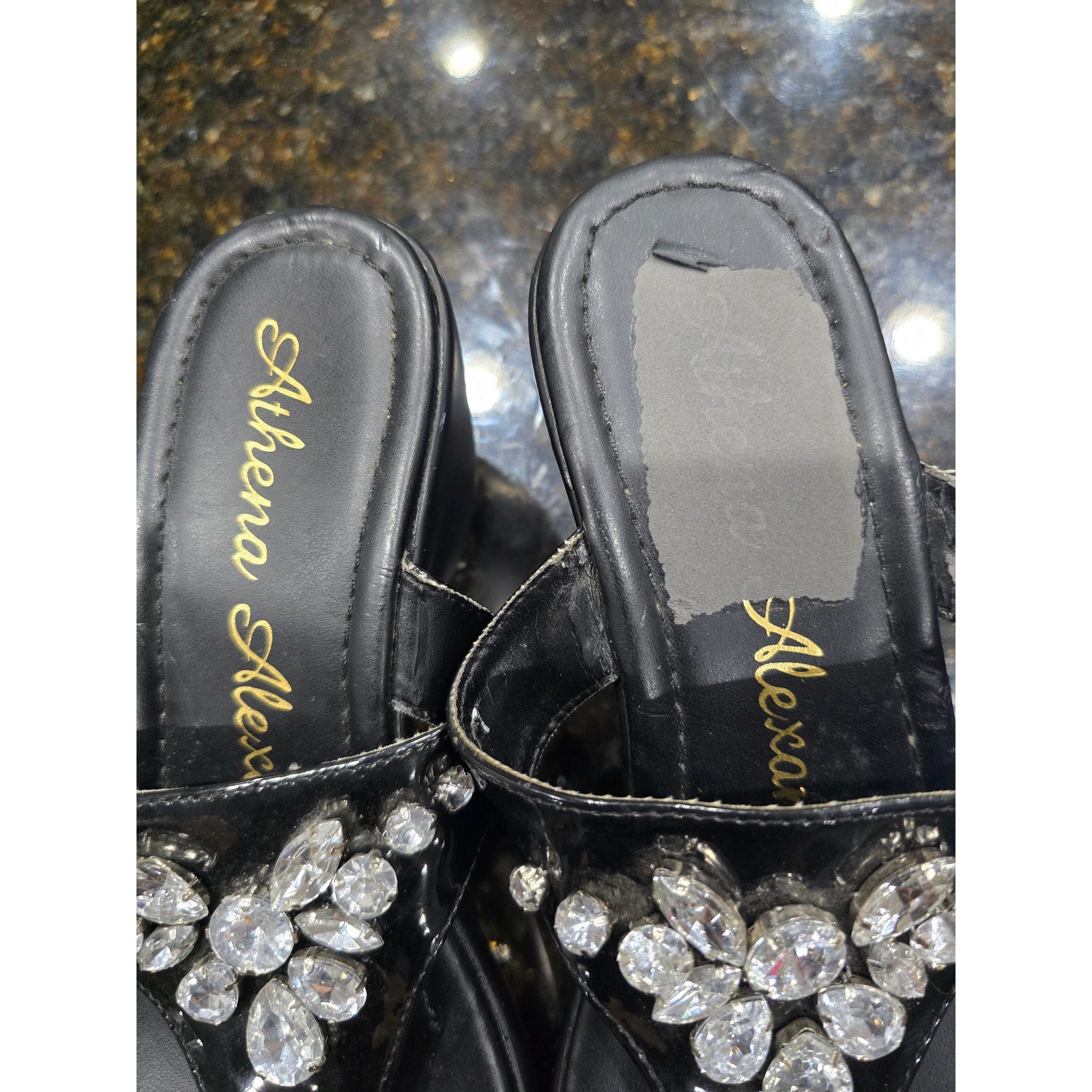 Athena Alexander Sandals Women's Size 7 Black Rhinestone Embellished Slip On