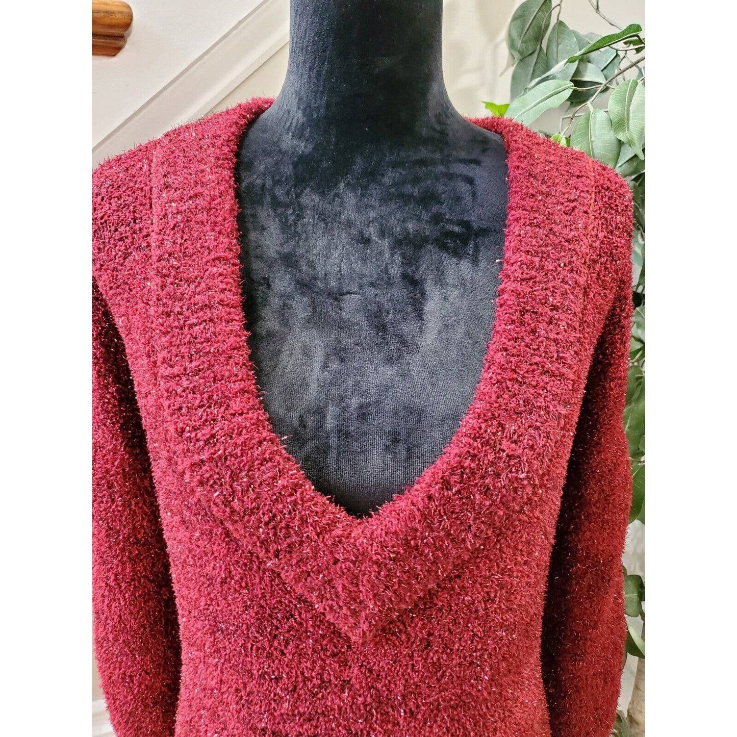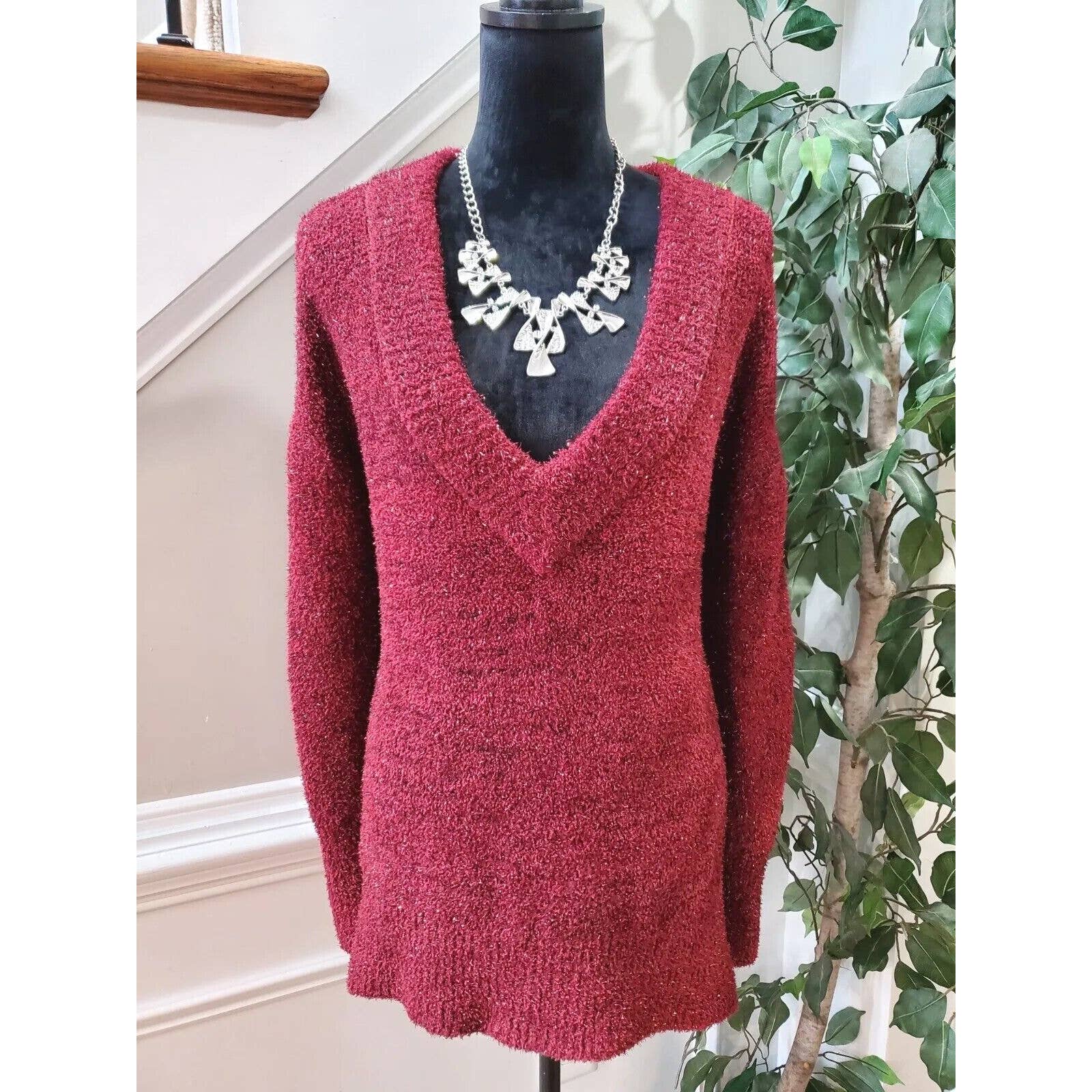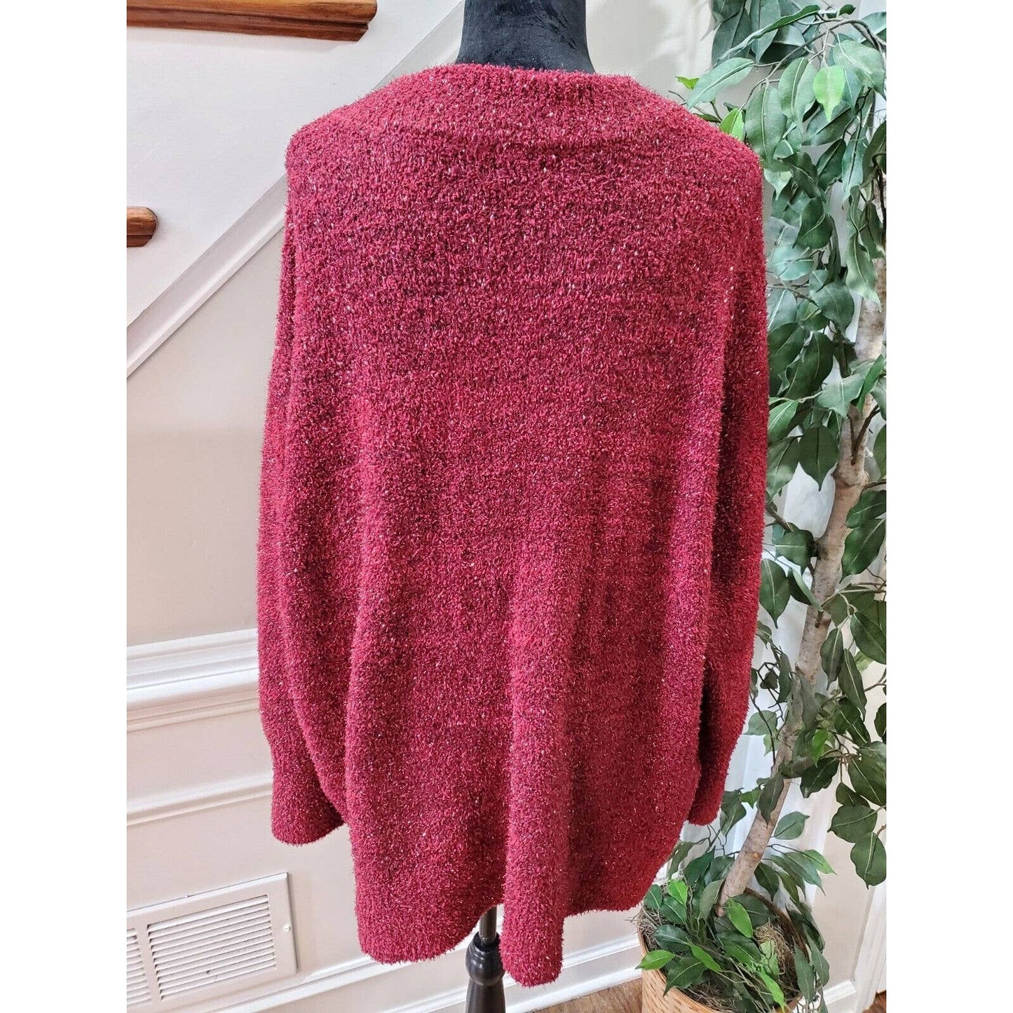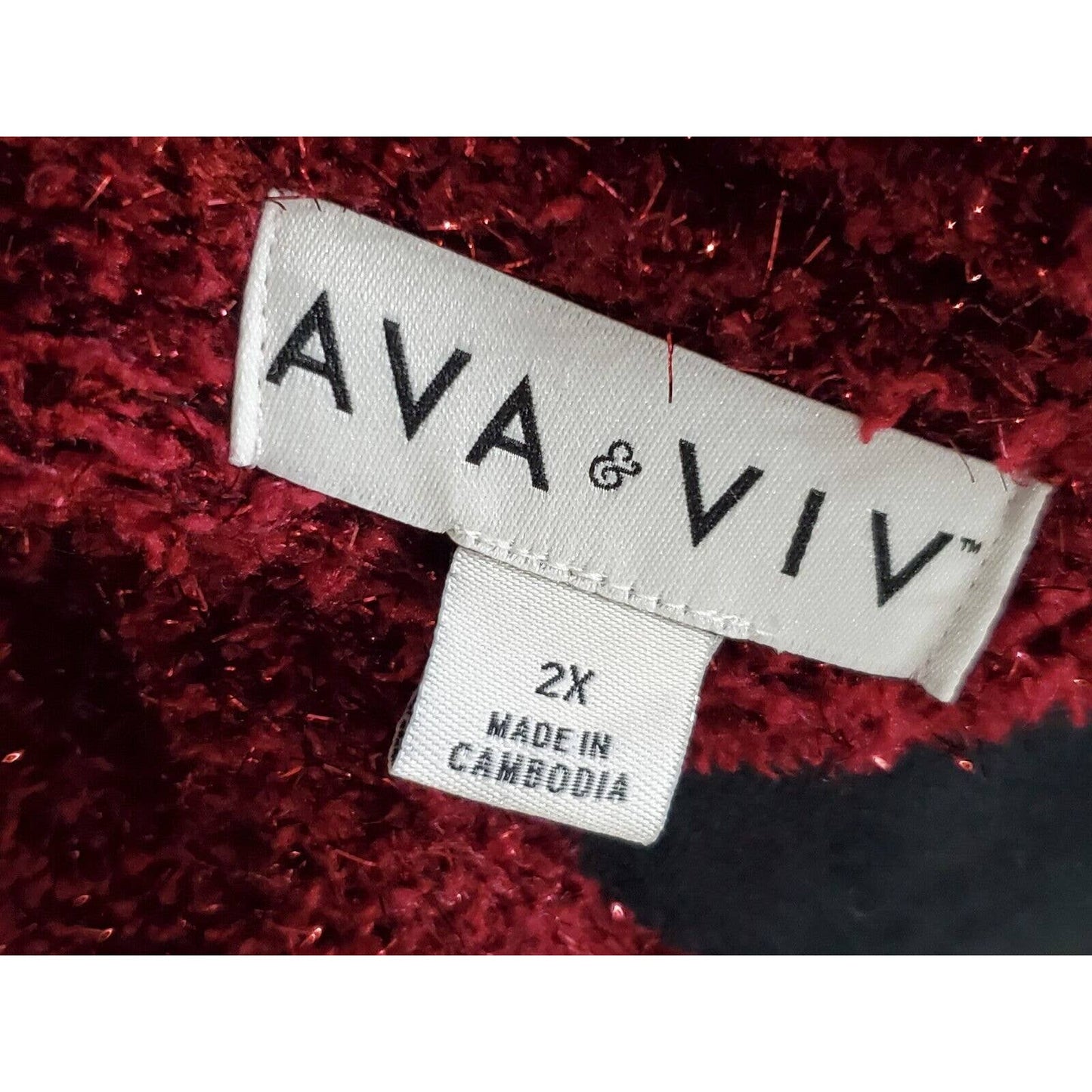 Ava & Viv Women's Red Polyester V-Neck Long Sleeve Pullover Knit Sweater Size 2X.