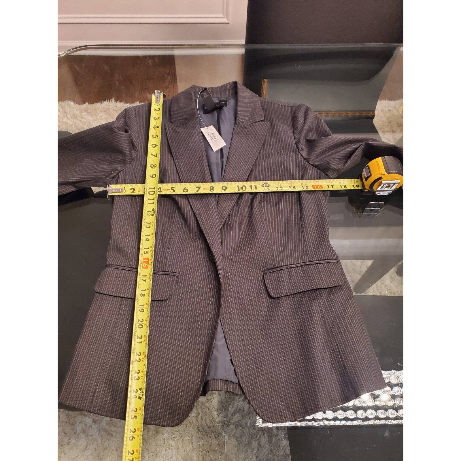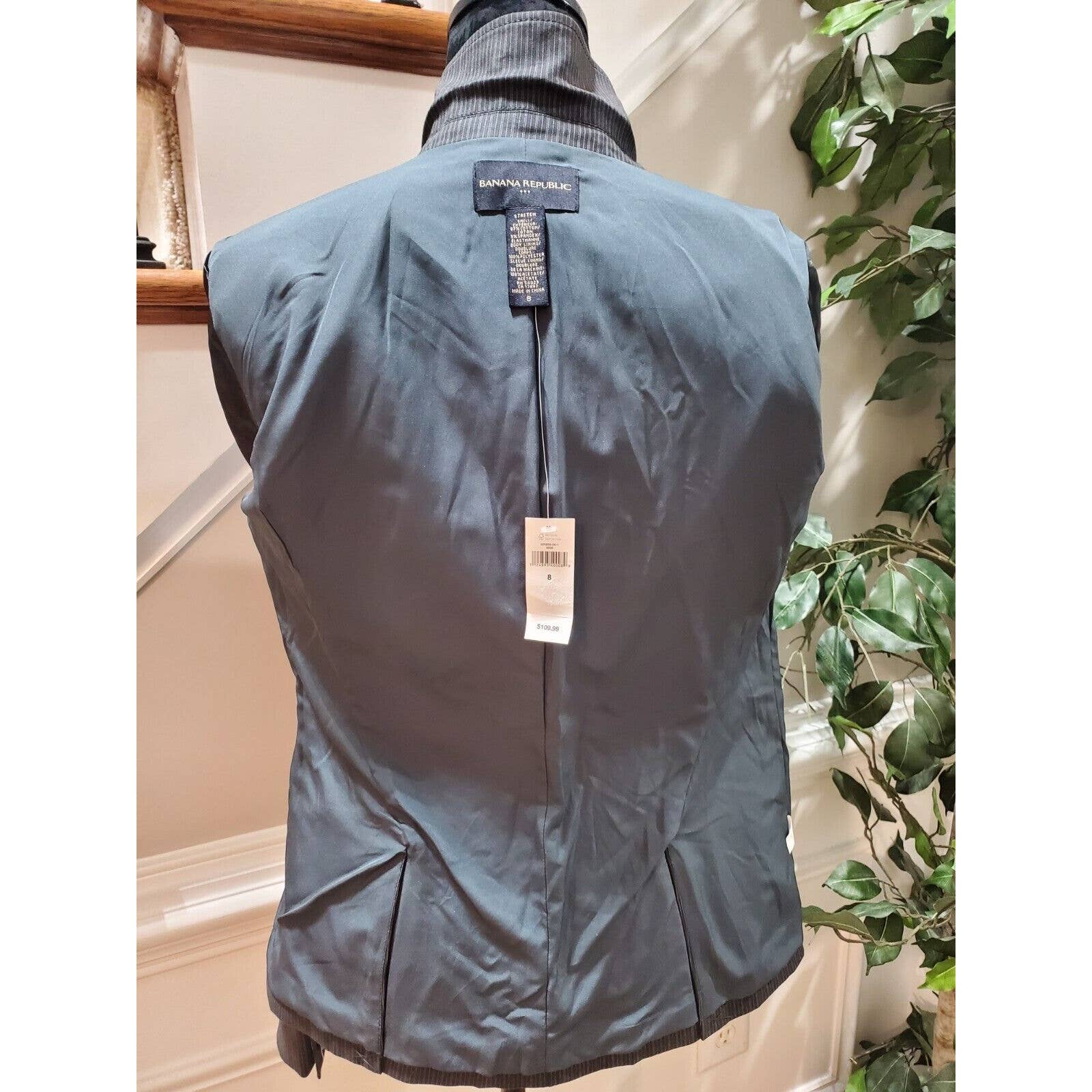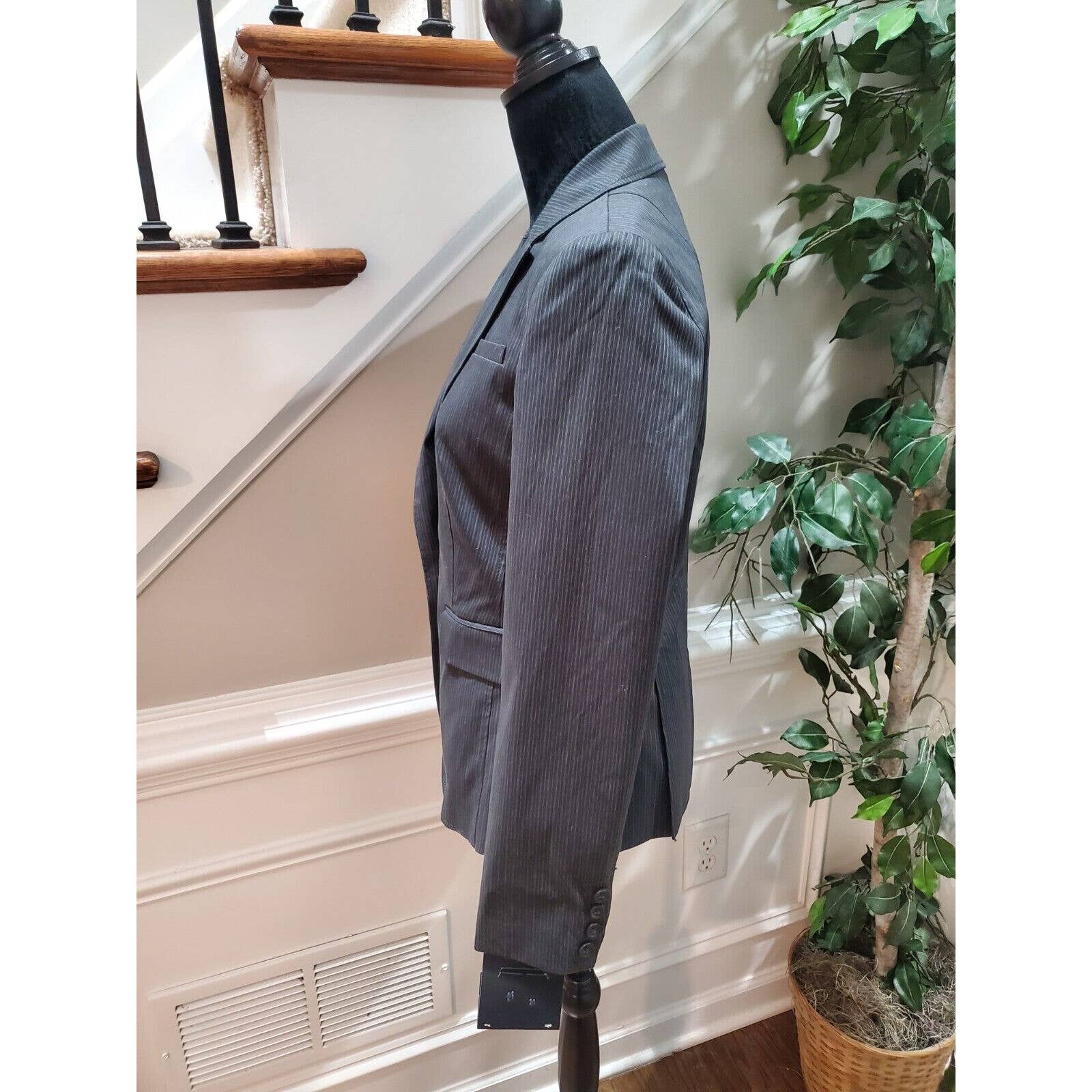Banana Republic Women Gray Striped Cotton Long Sleeve Single Breasted Blazer 8.
