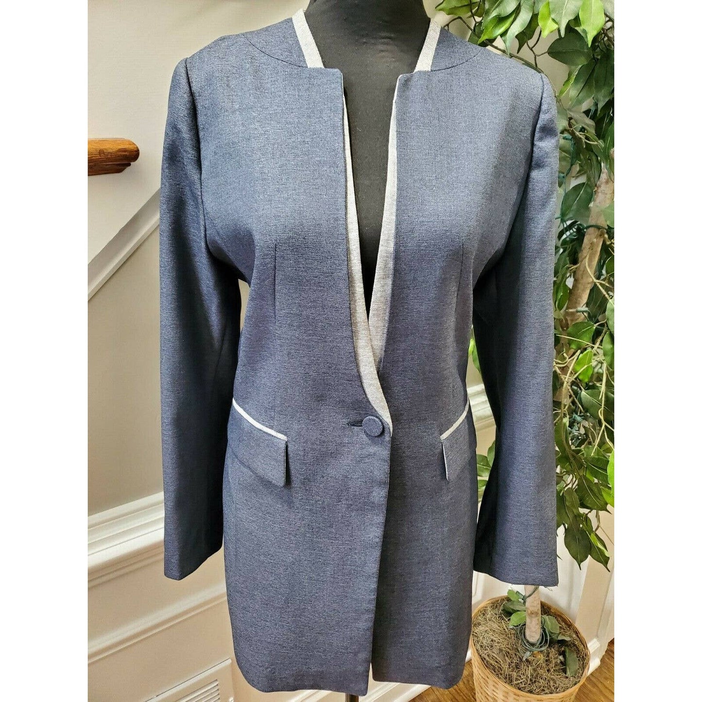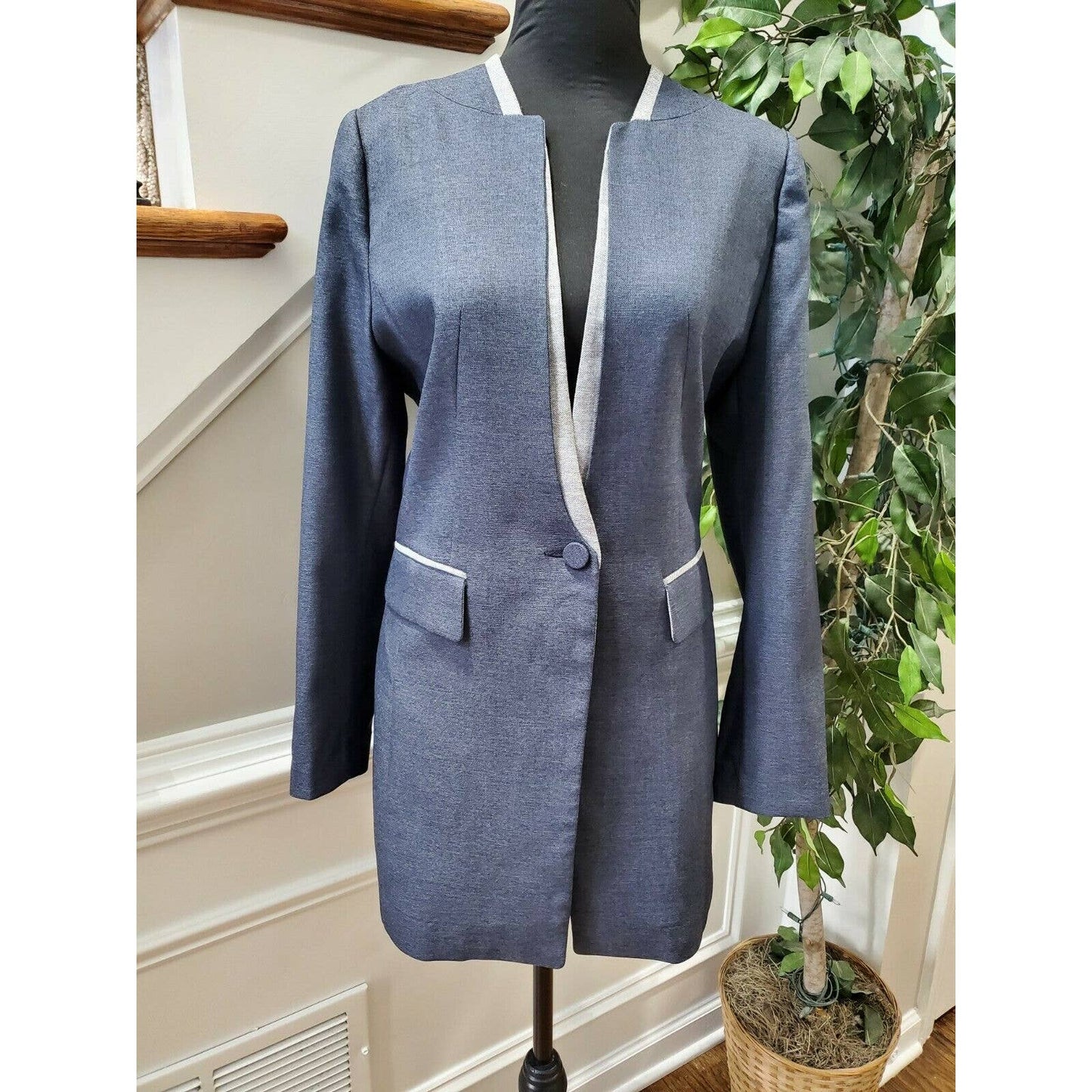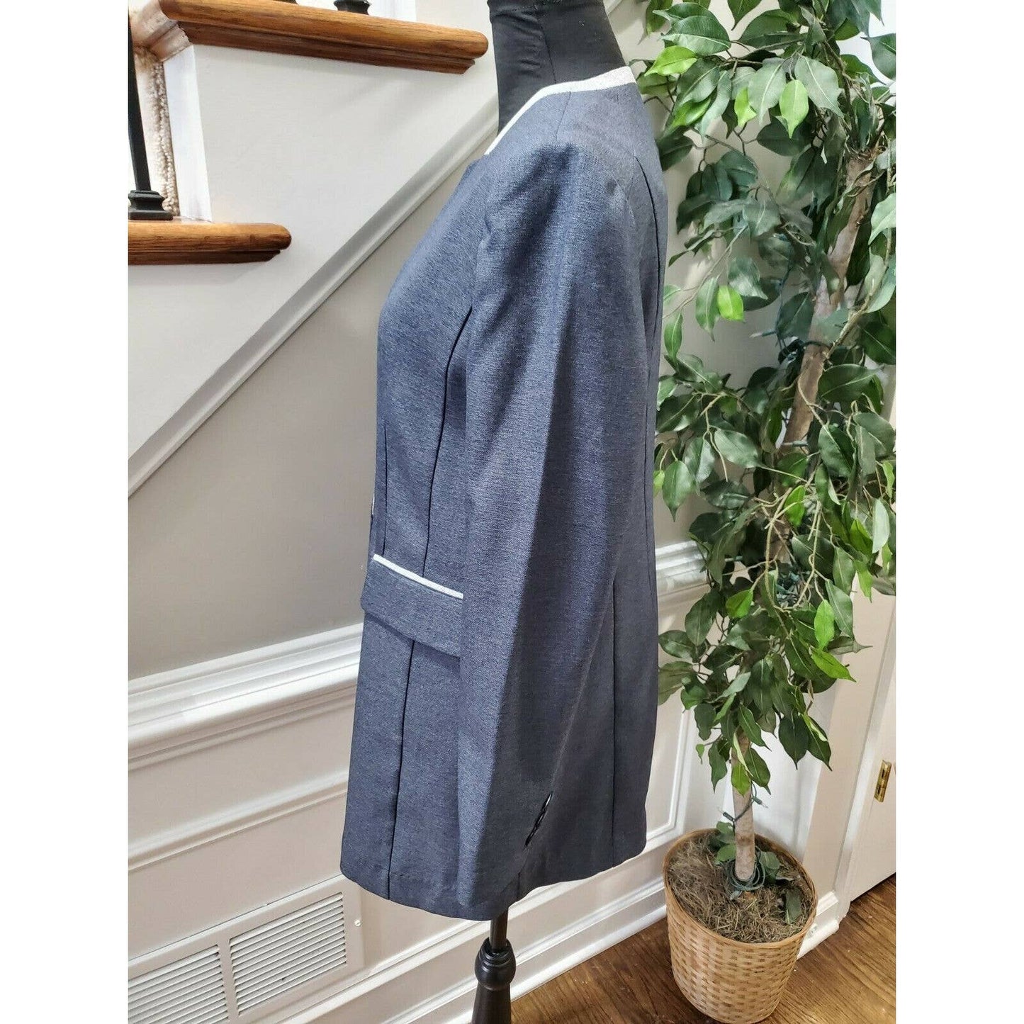 Blue Women's 100% Polyester Long Sleeve Fitted Orchid Chambray Blazer Size XL.