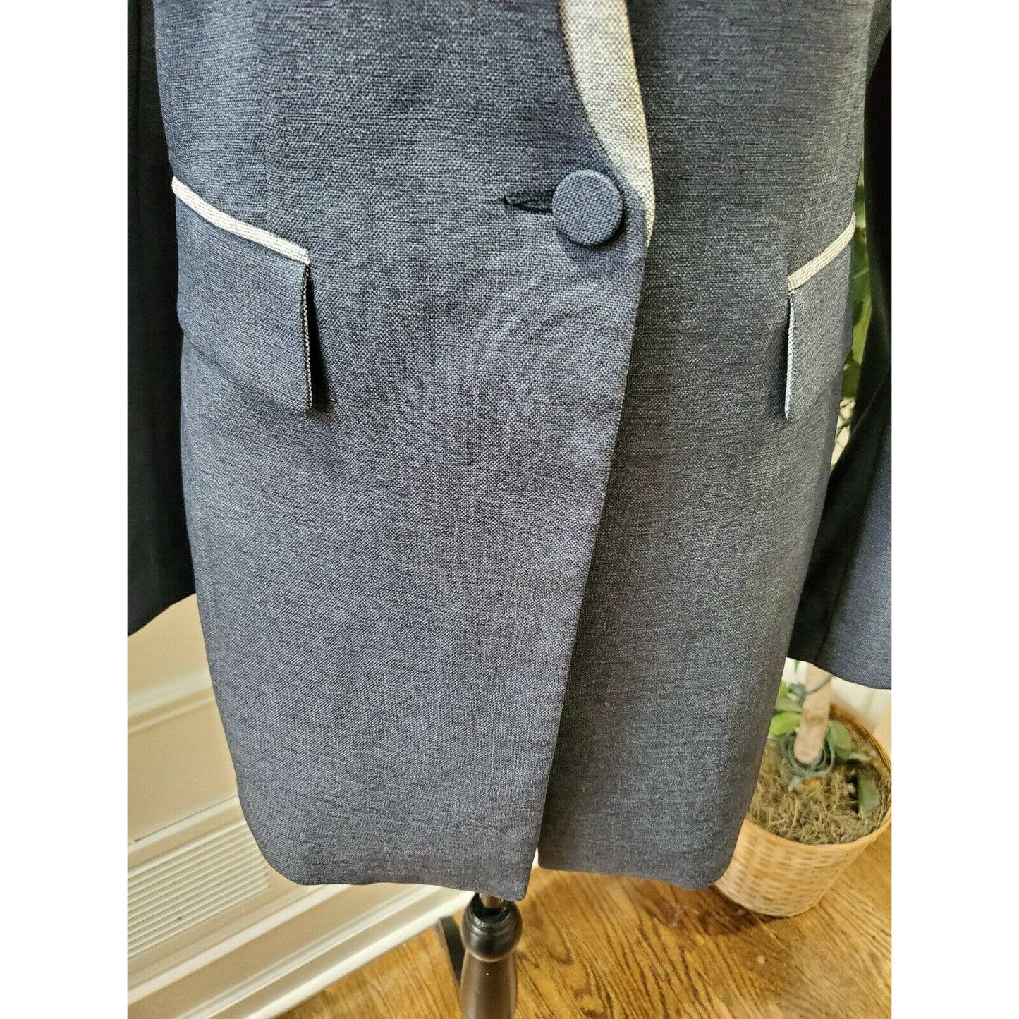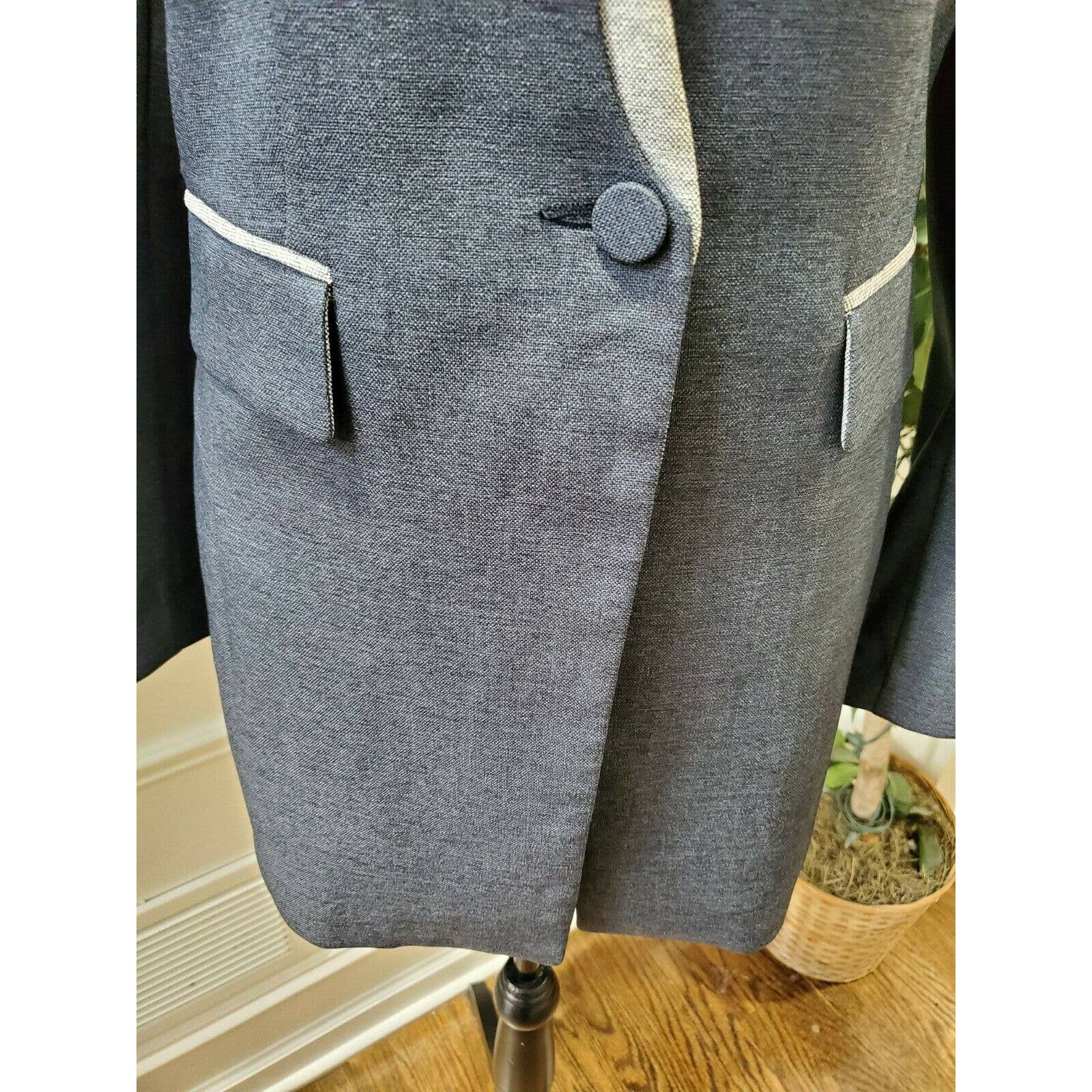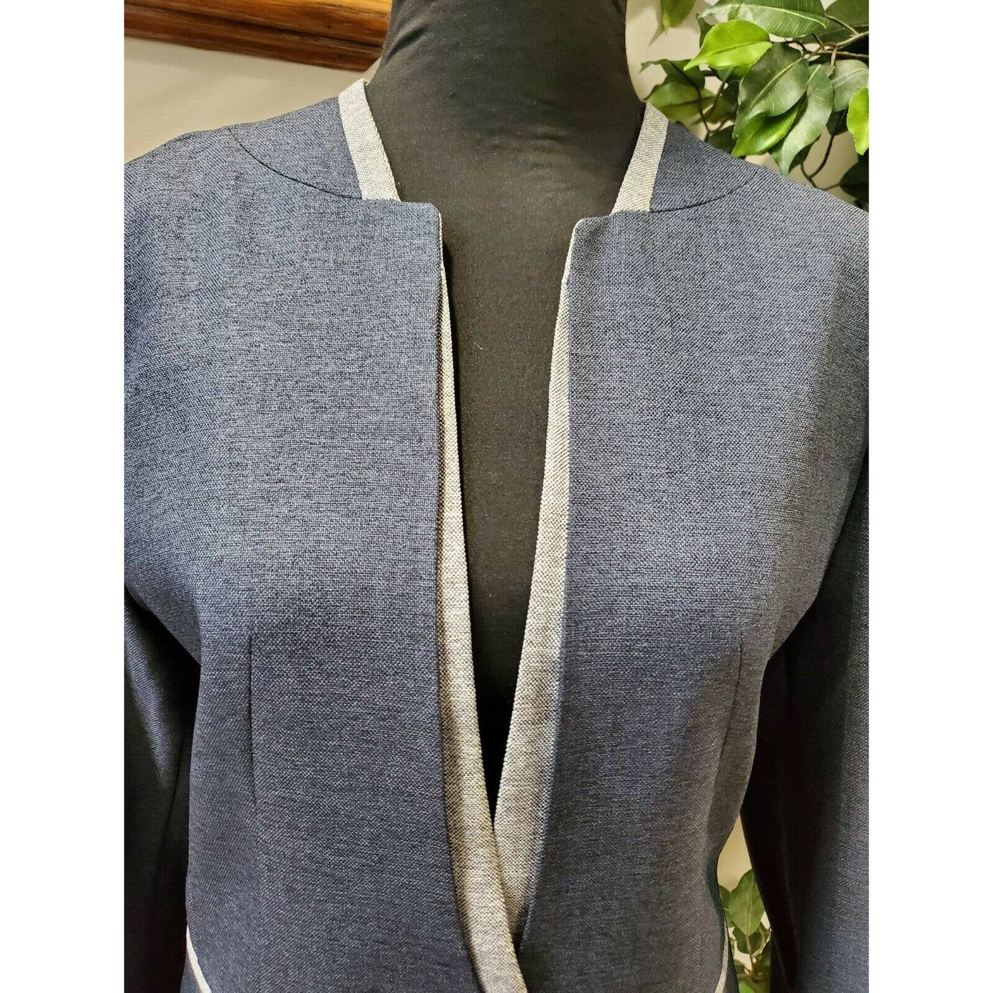 Blue Women's 100% Polyester Long Sleeve Fitted Orchid Chambray Blazer Size XL.