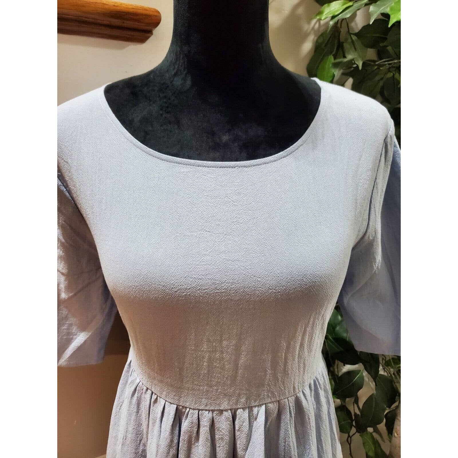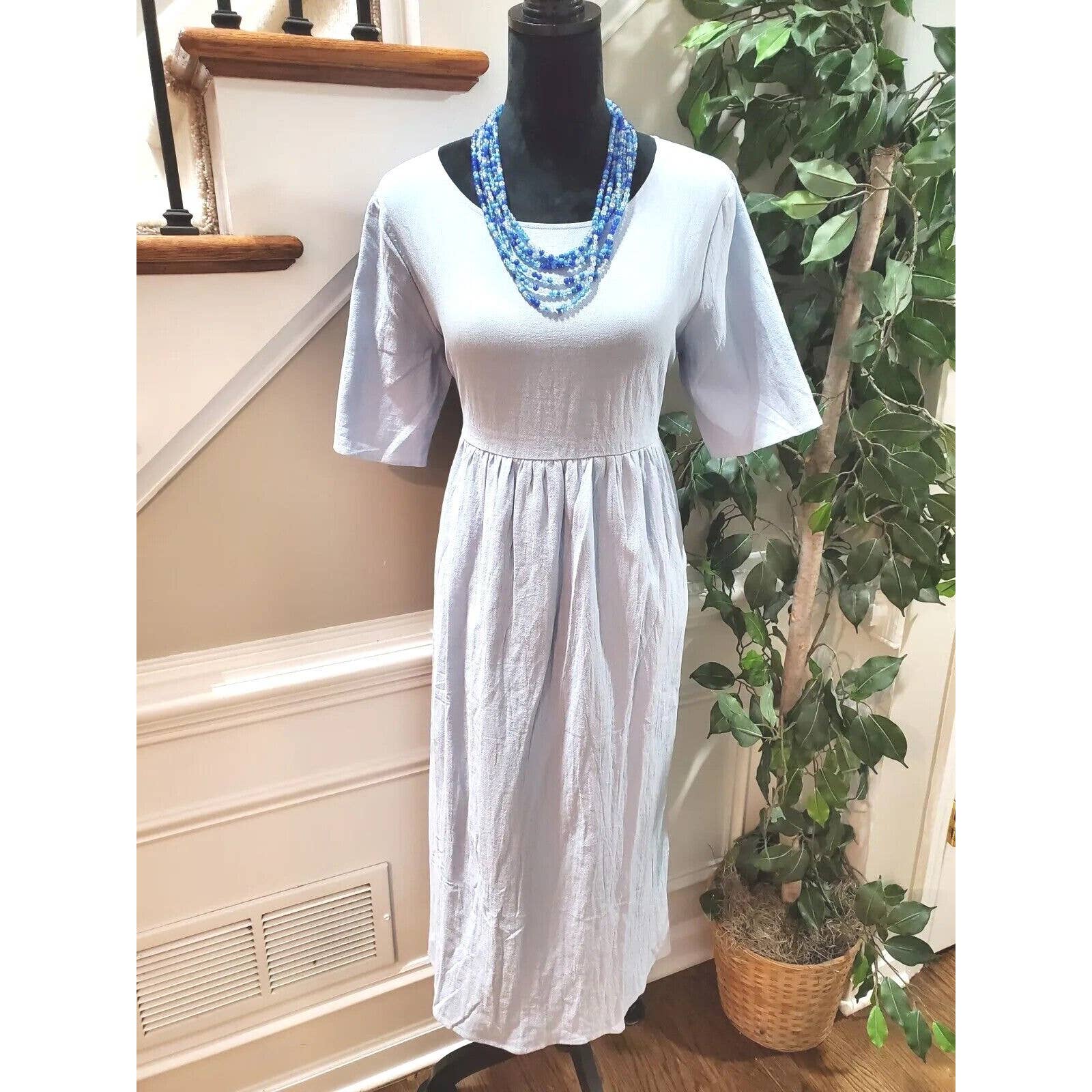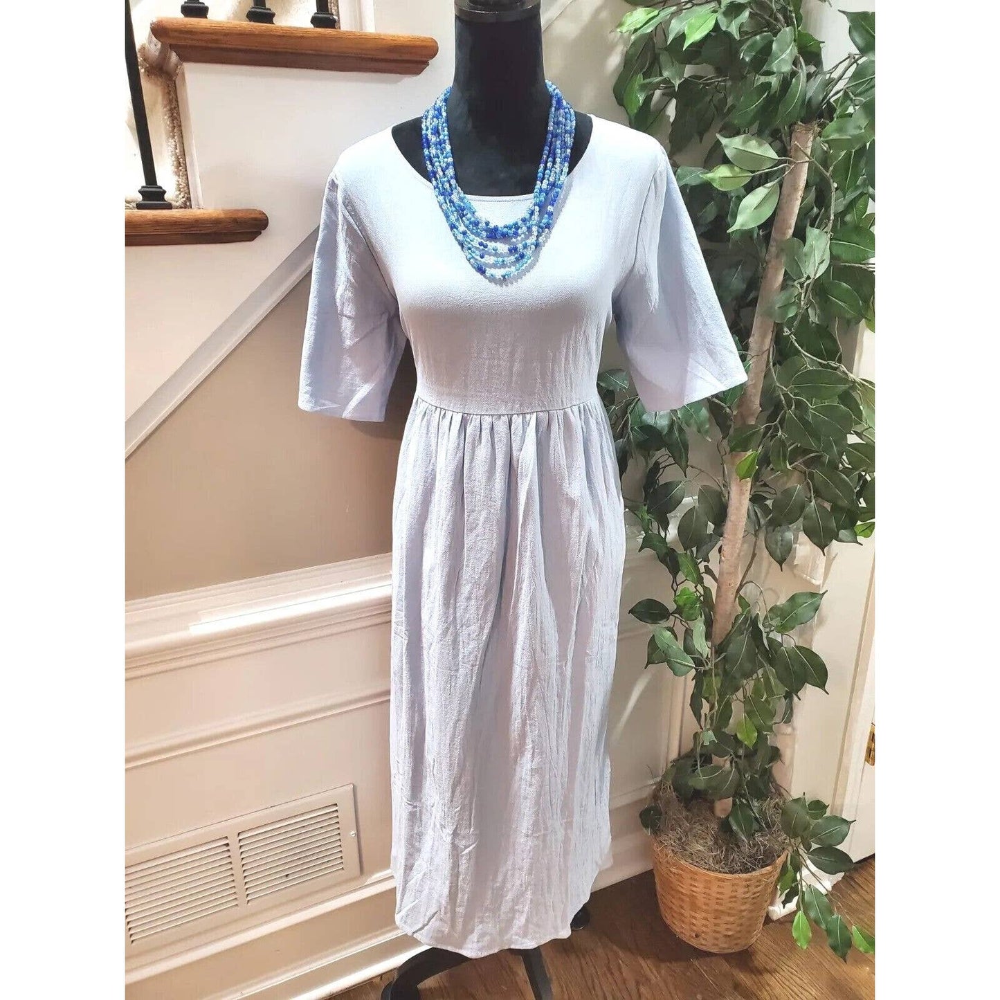 Blue Women's Solid Polyester Round Neck Half Sleeve Long Maxi Dress Size Large