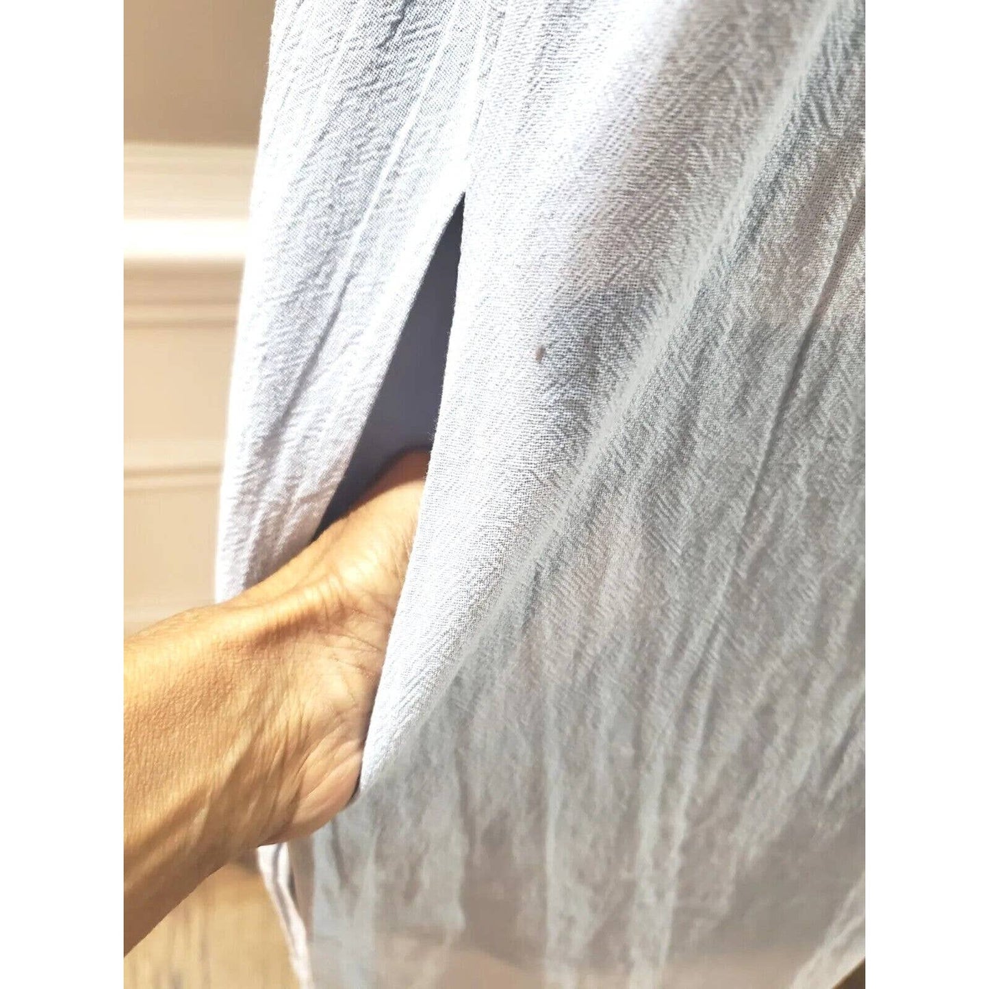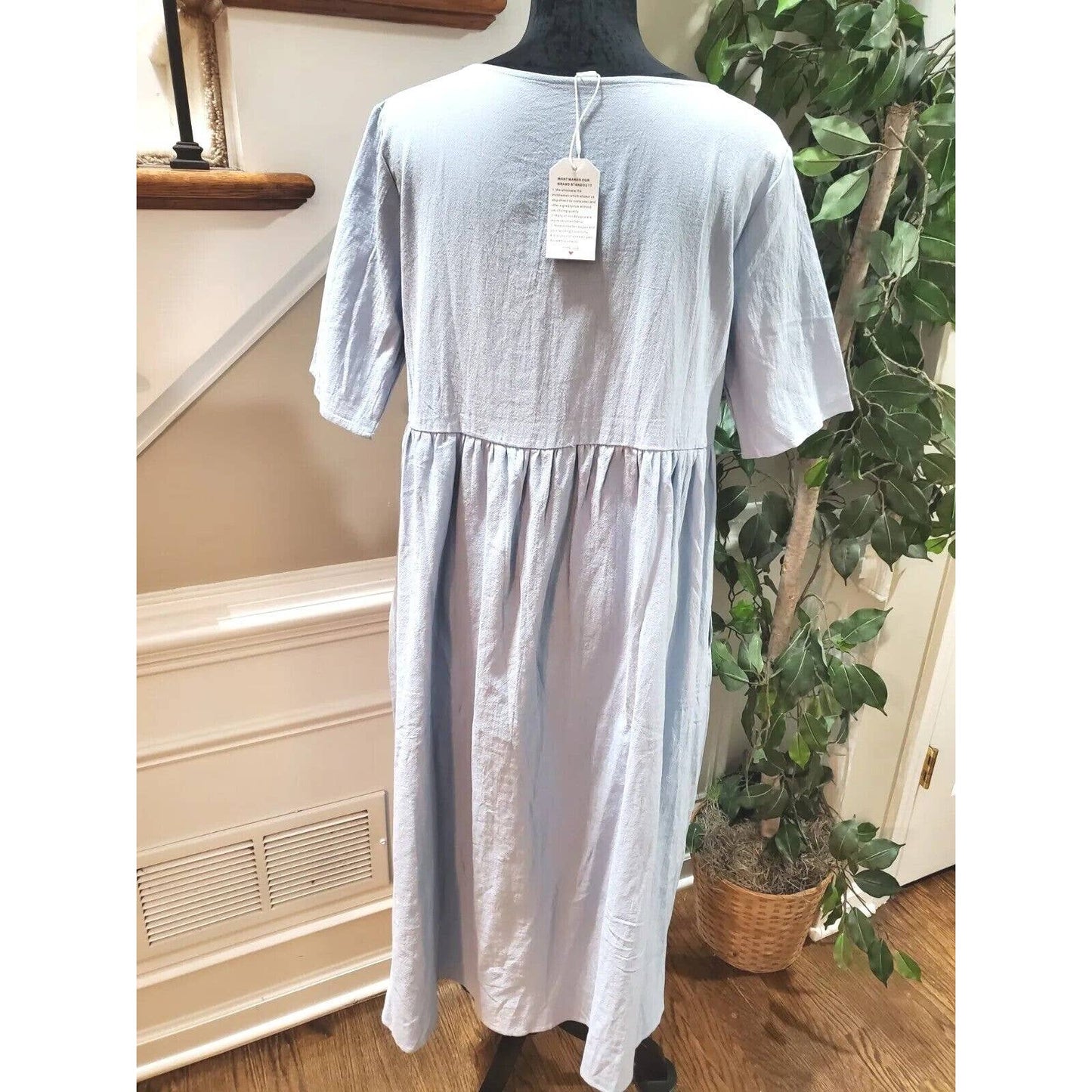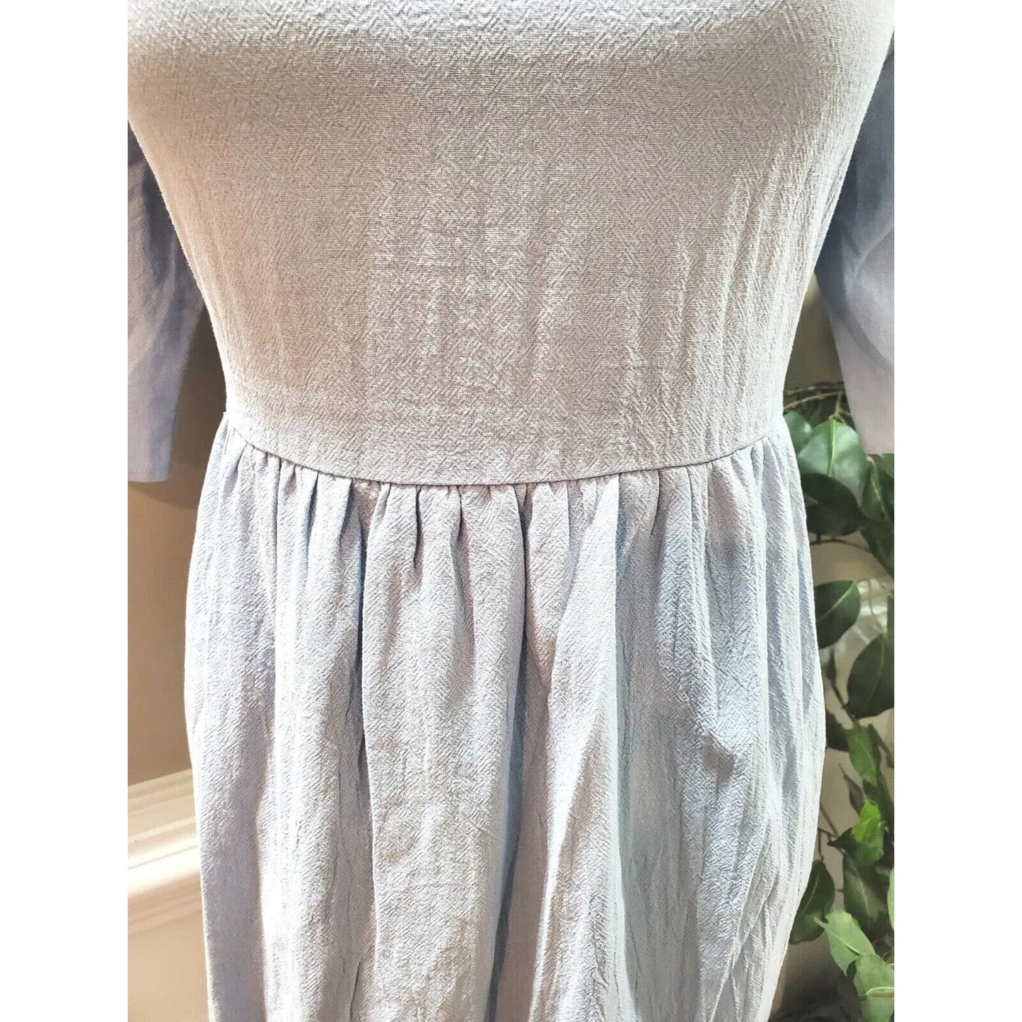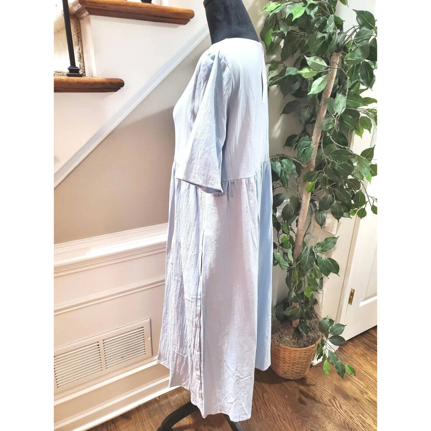 Blue Women's Solid Polyester Round Neck Half Sleeve Long Maxi Dress Size Large