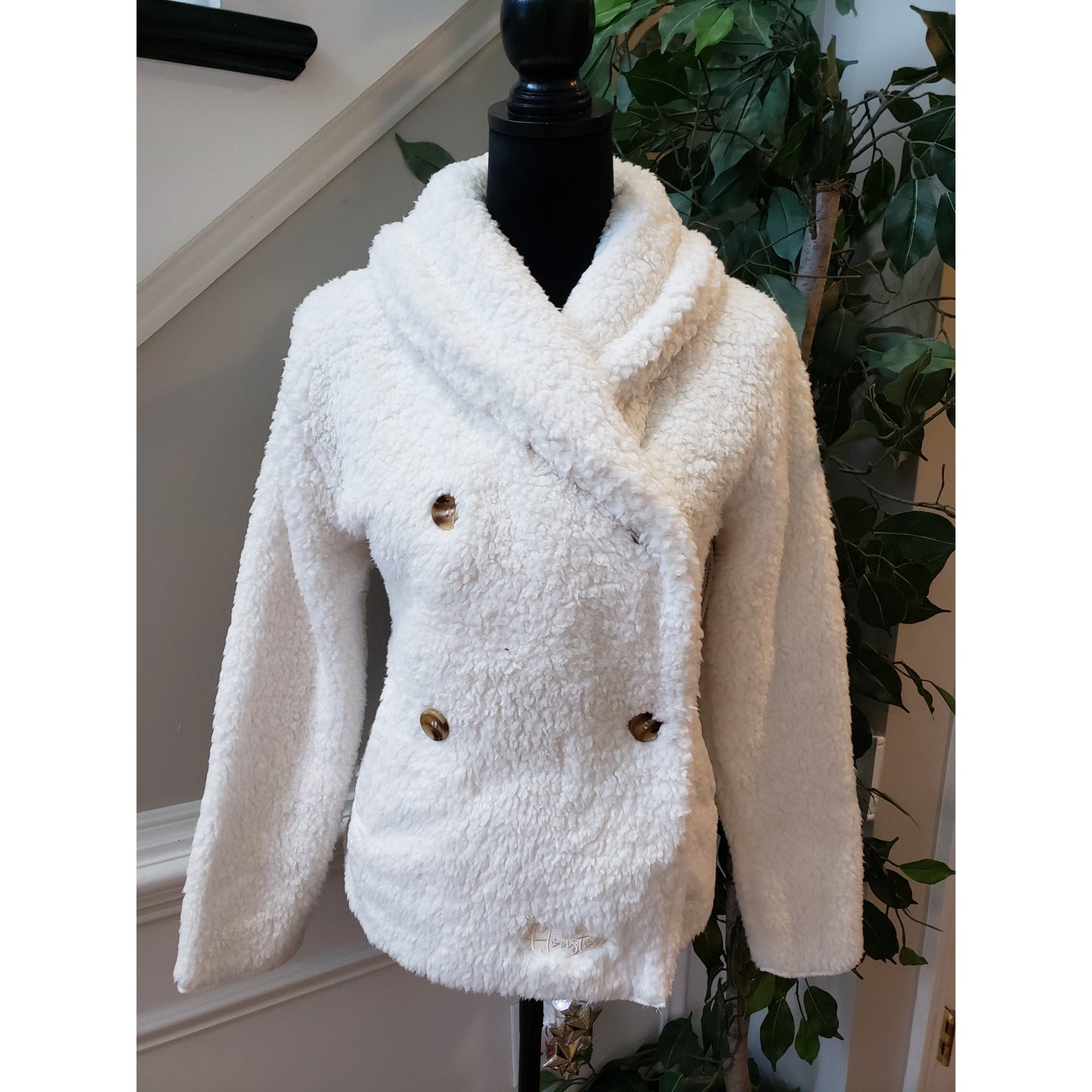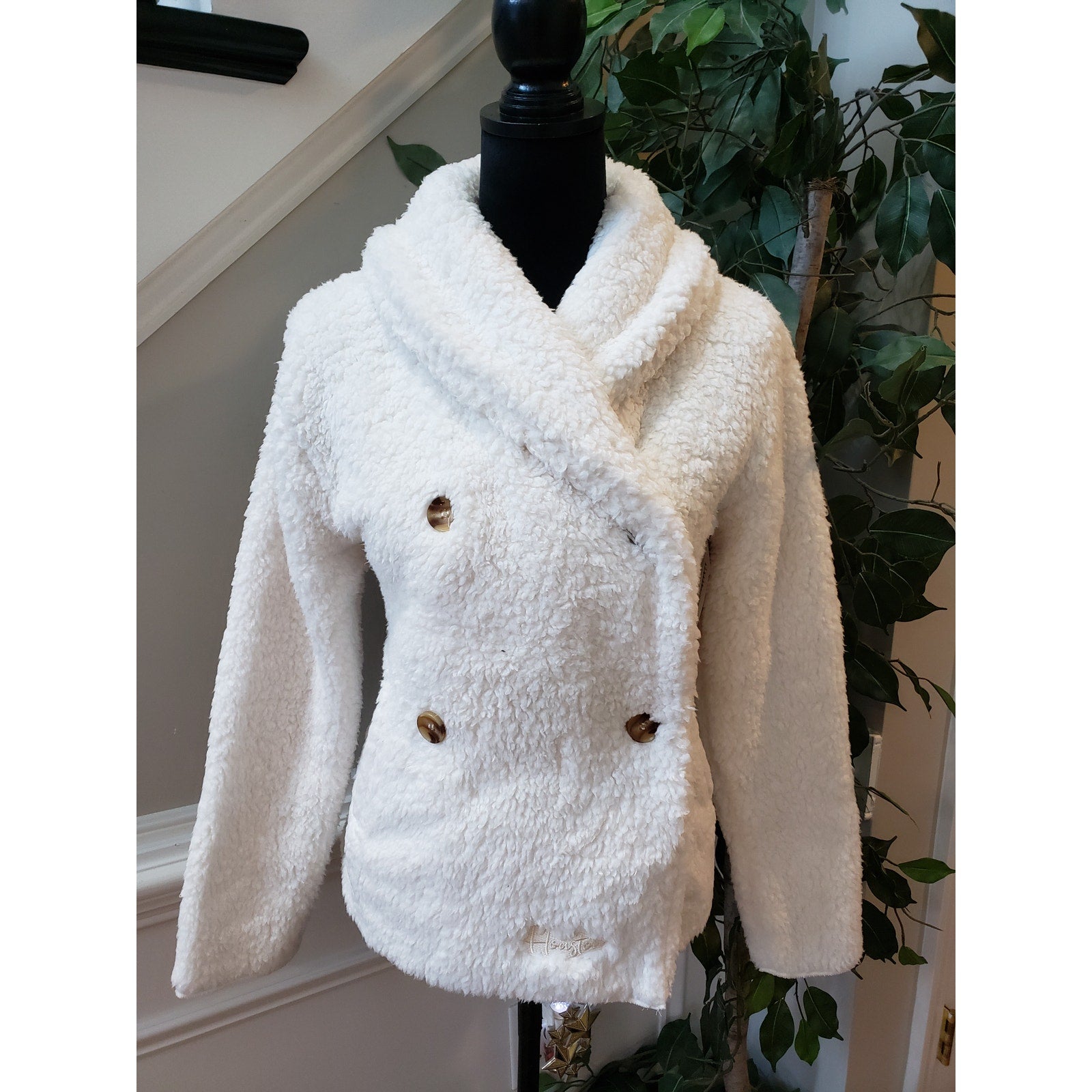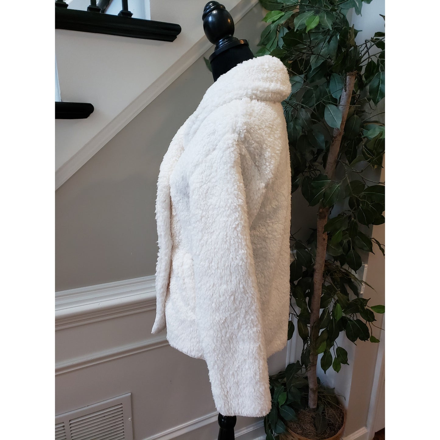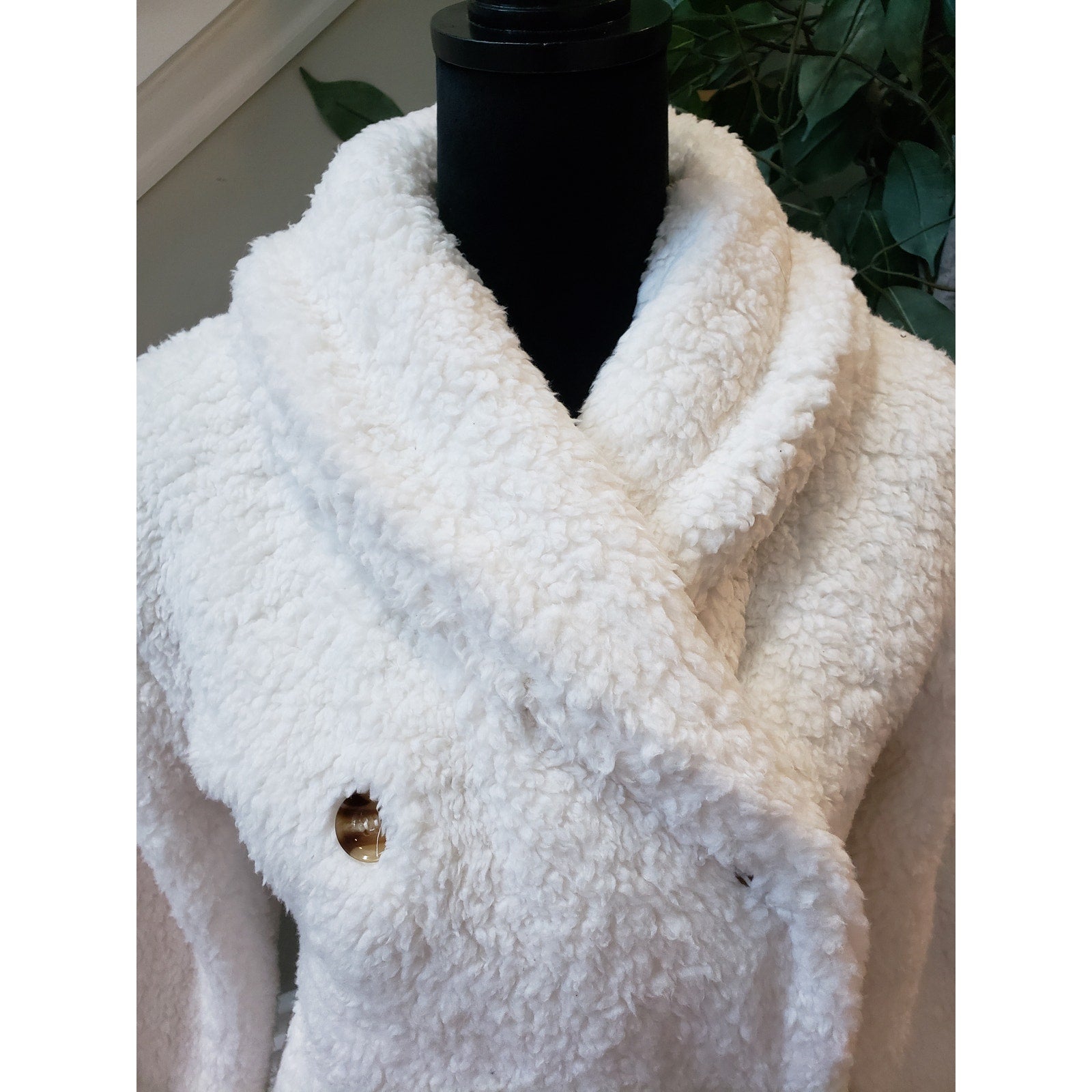 Boxercraft Audrey Coat Womens XS White Sherpa Fleece Shawl Neck Double Breasted