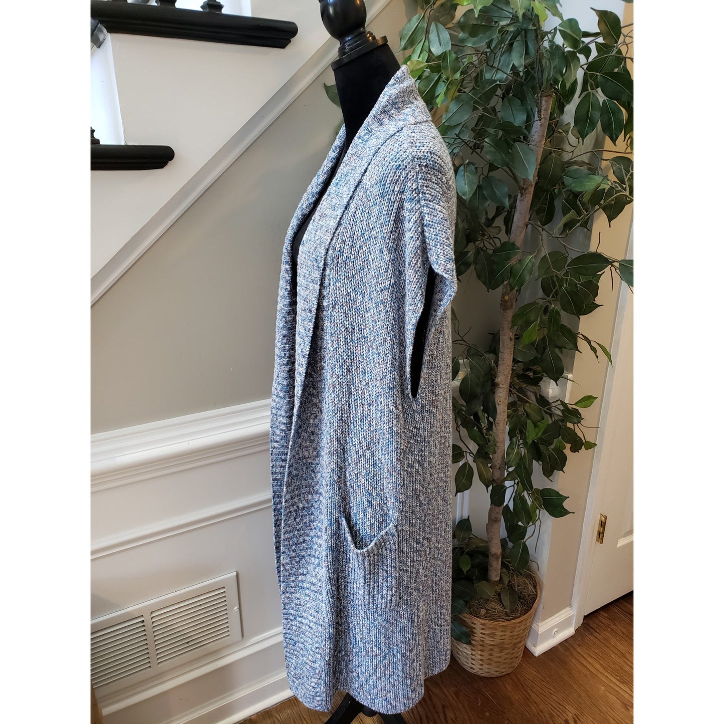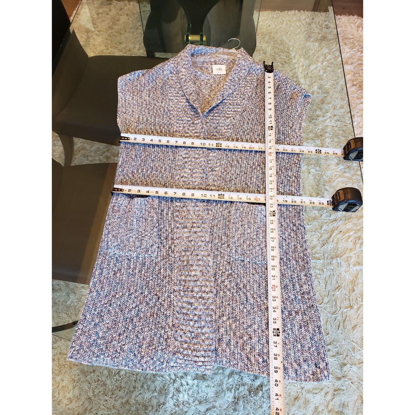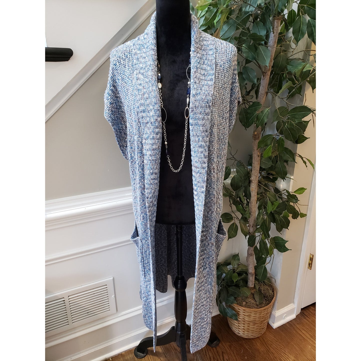 CAbi Cardigan Sweater Women's M Blue Chunky Knit Cotton Cap Sleeve Open Front