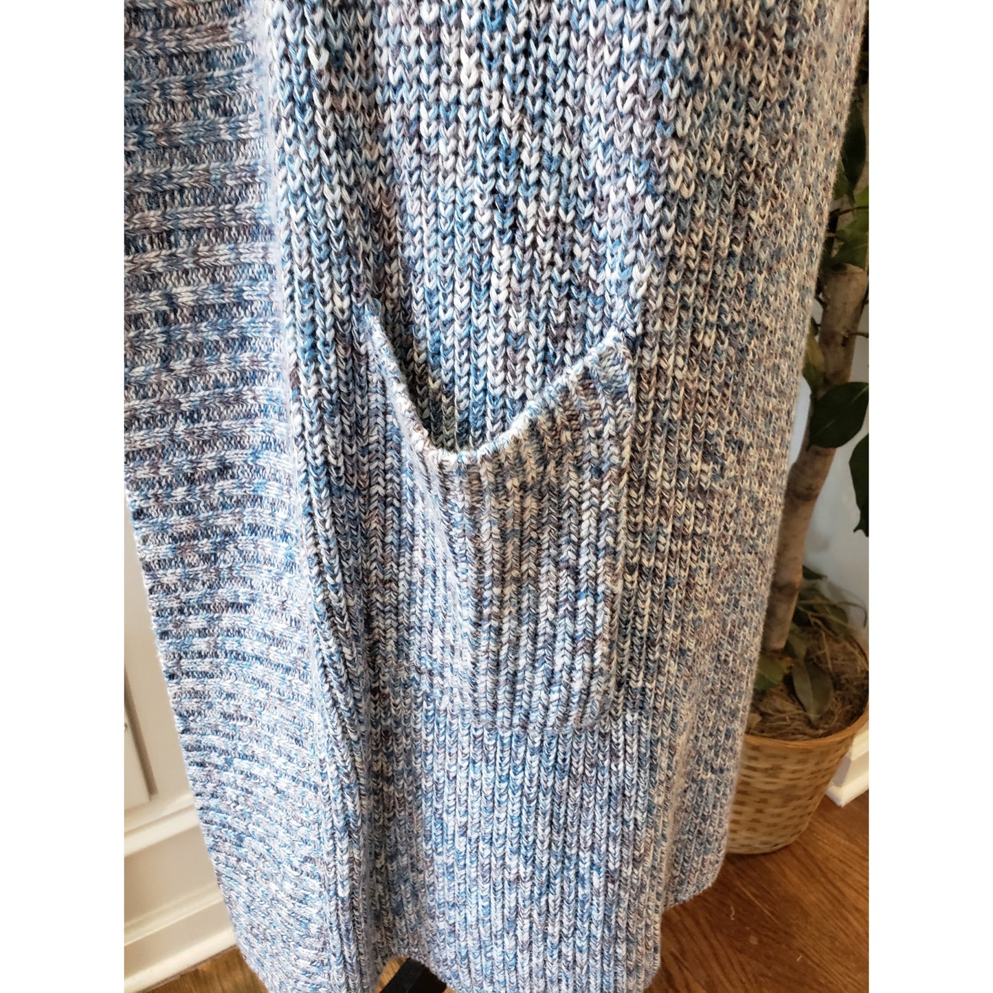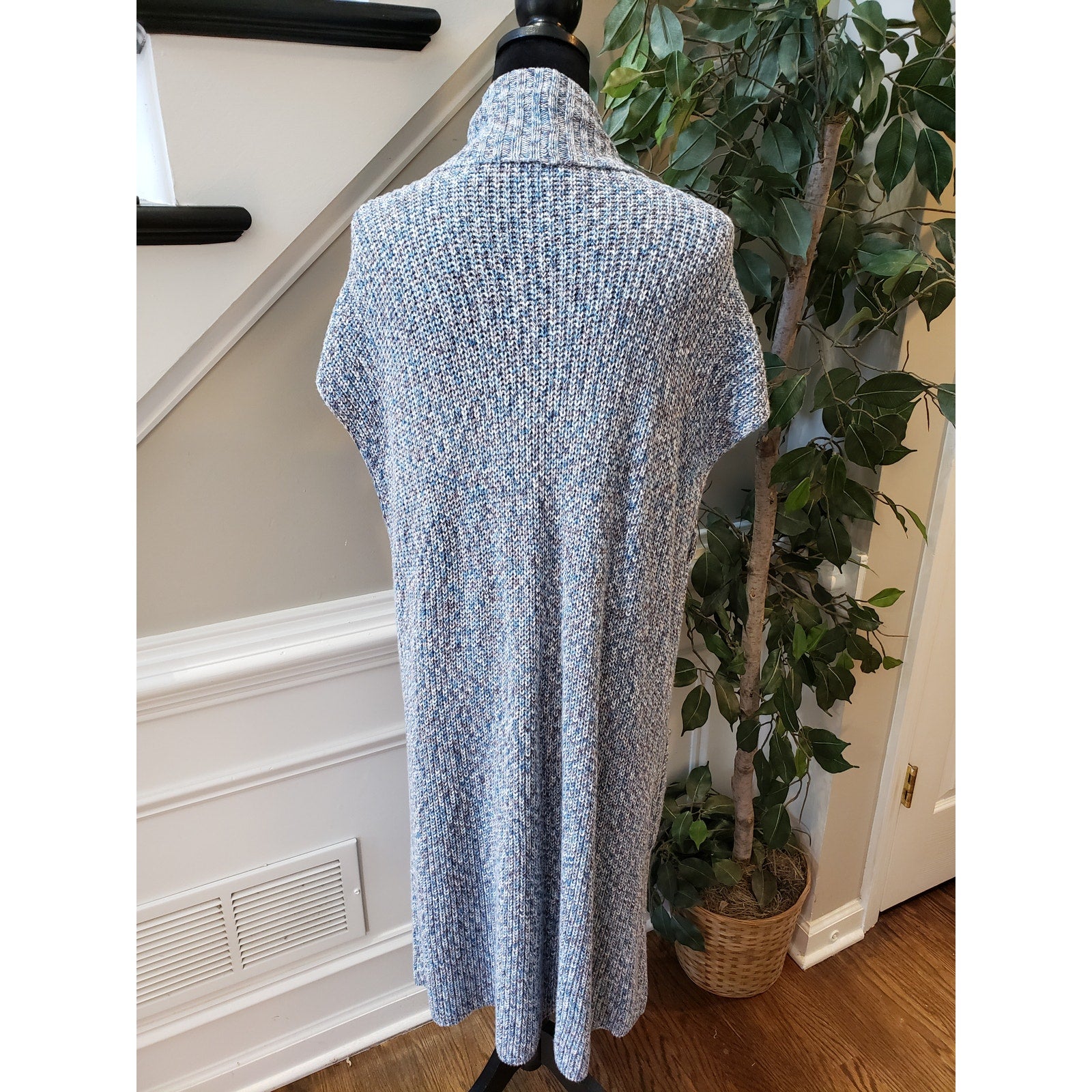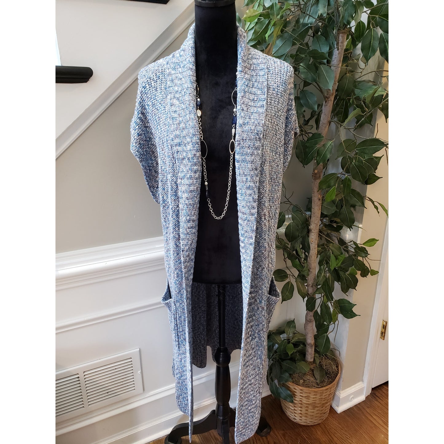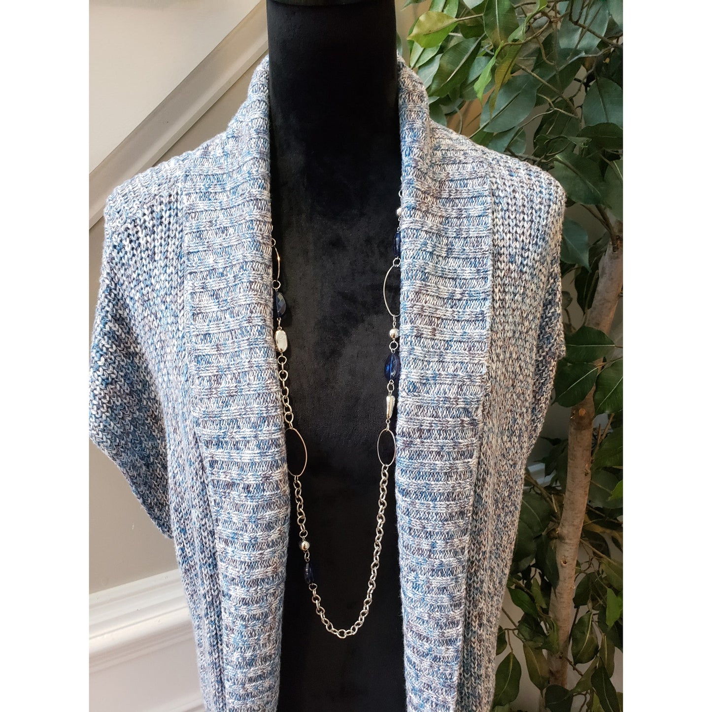 CAbi Cardigan Sweater Women's M Blue Chunky Knit Cotton Cap Sleeve Open Front