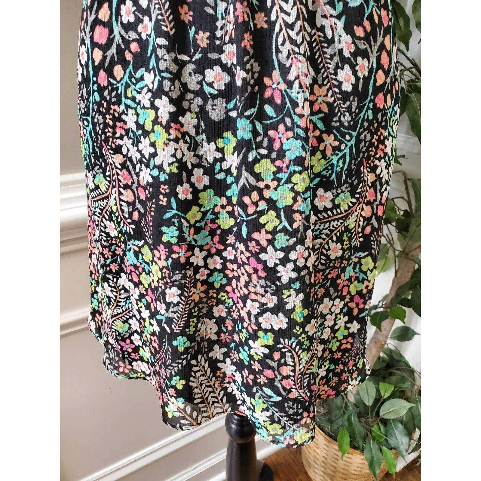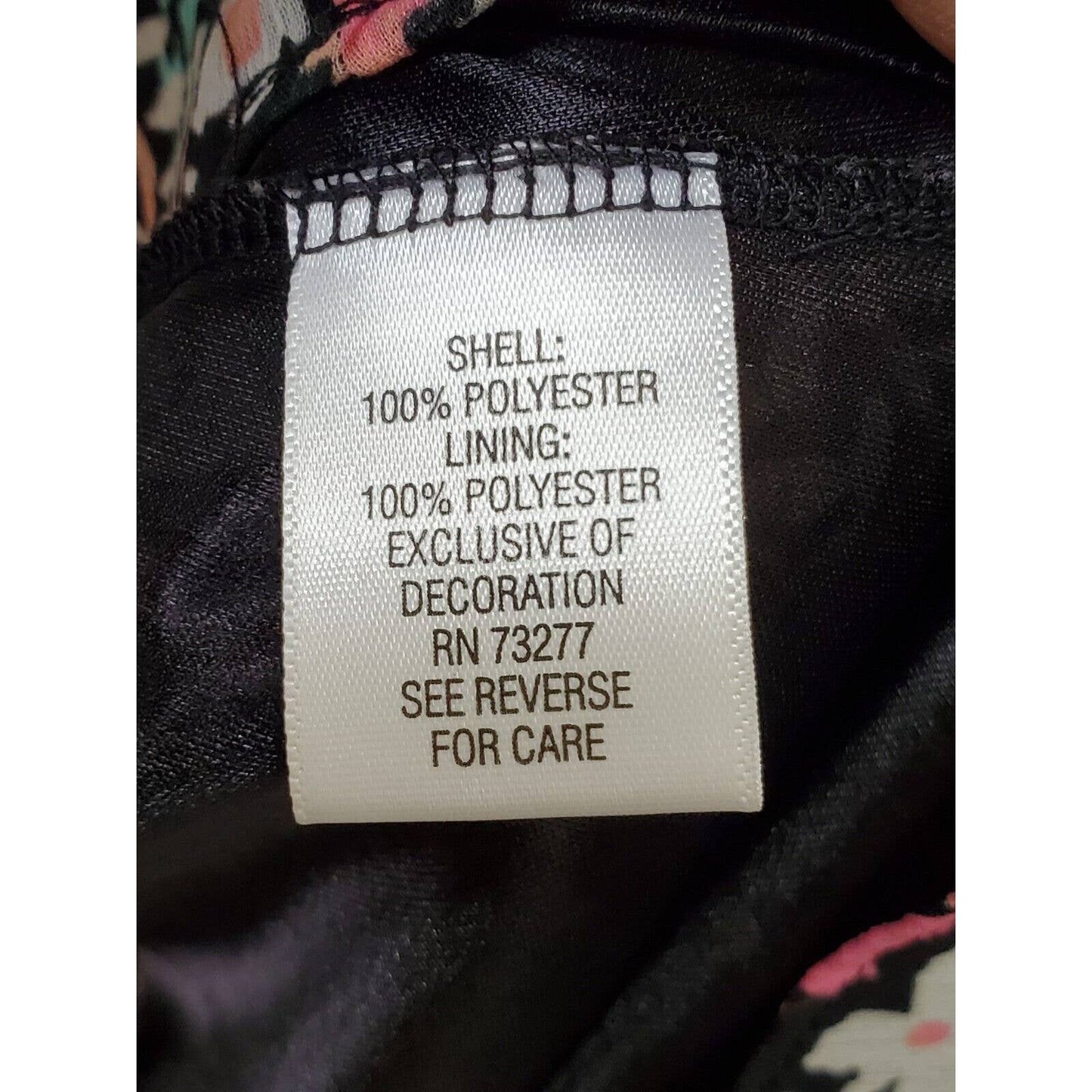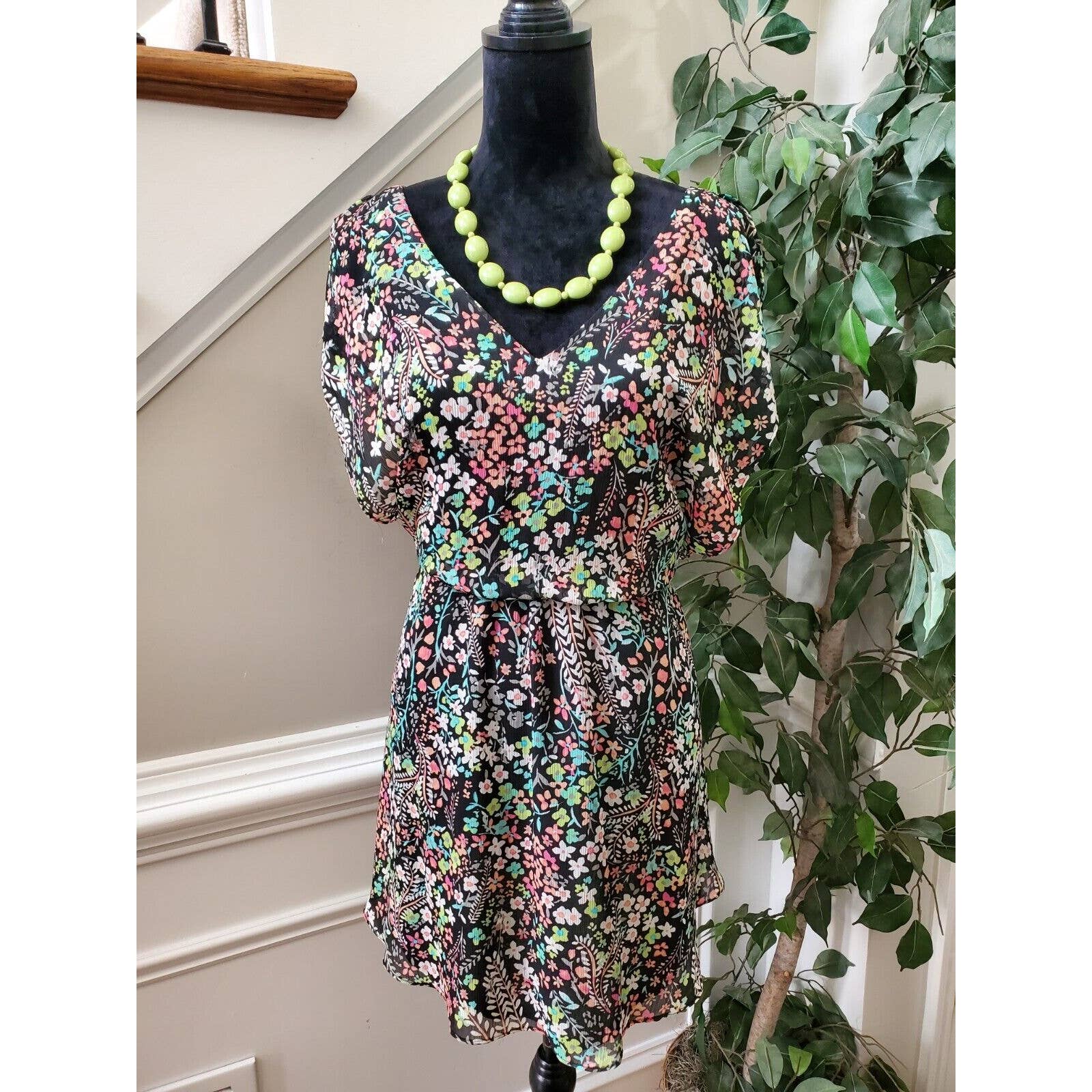 Candie's Women Black Floral Polyester V-Neck Short Sleeve Knee Length Dress L