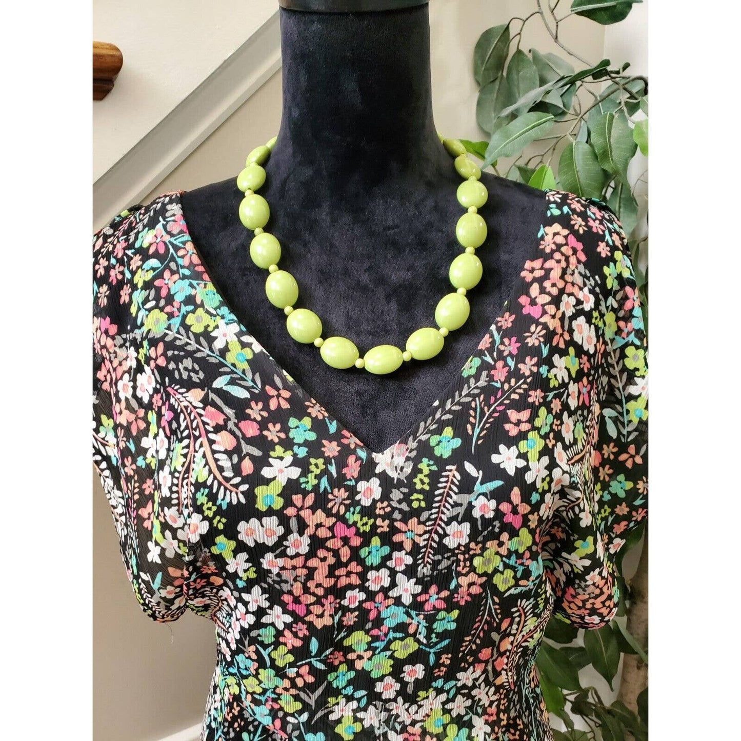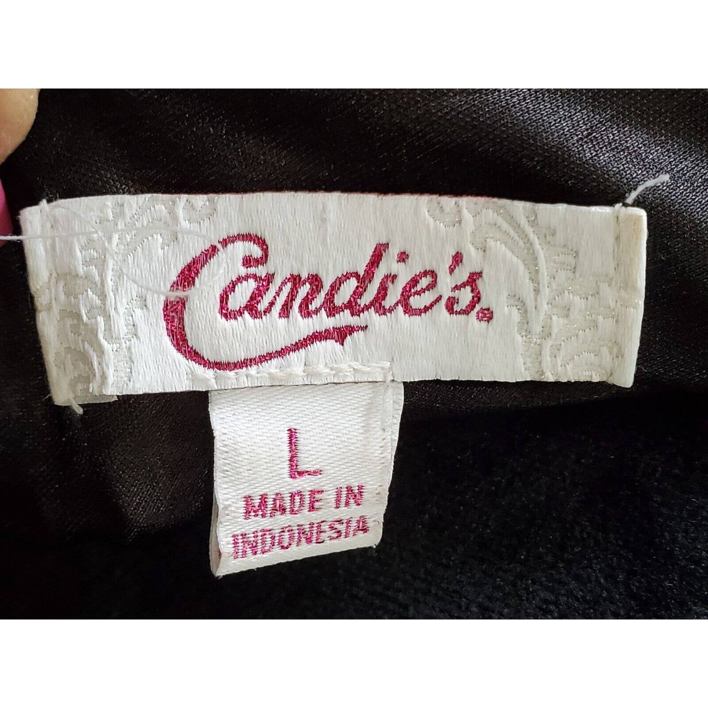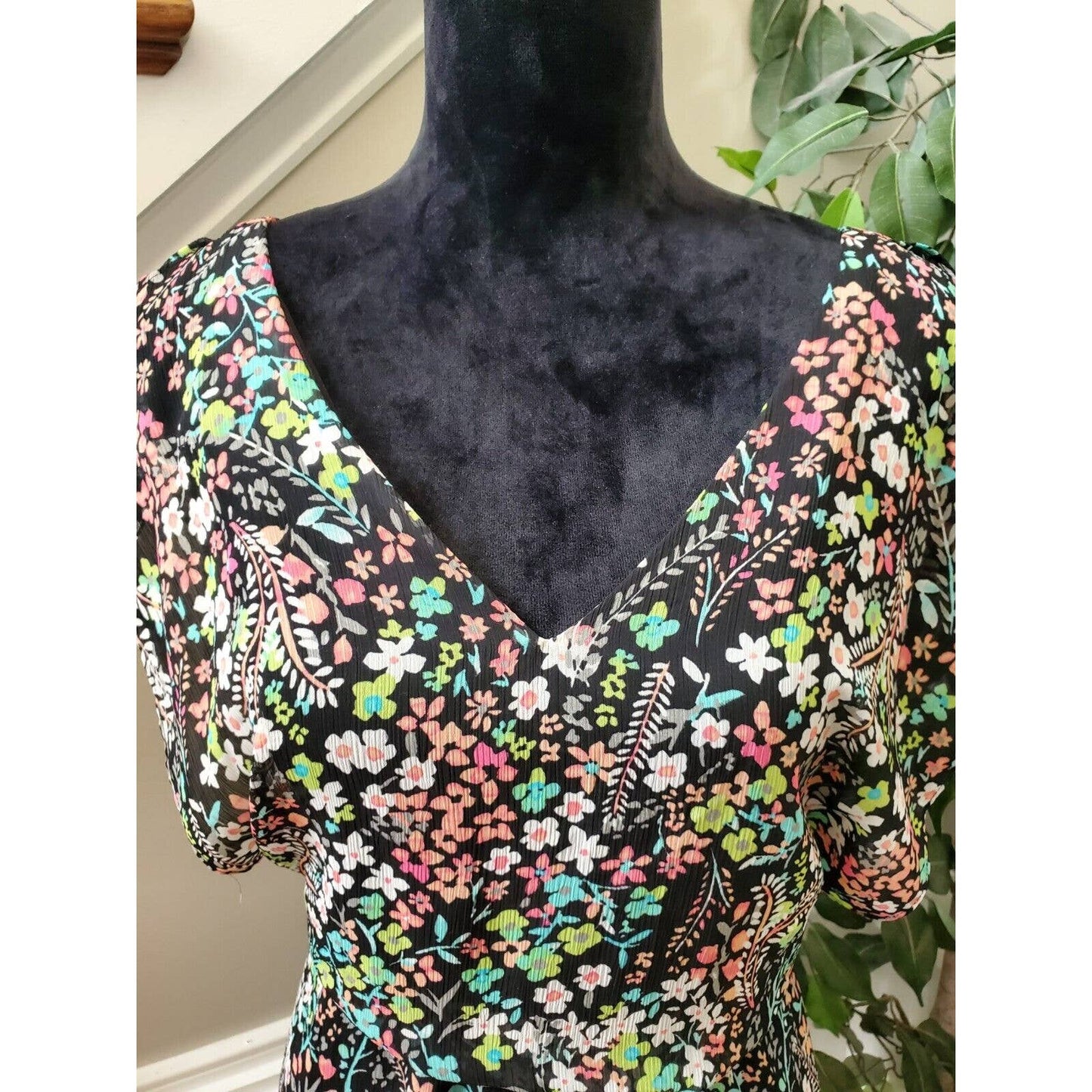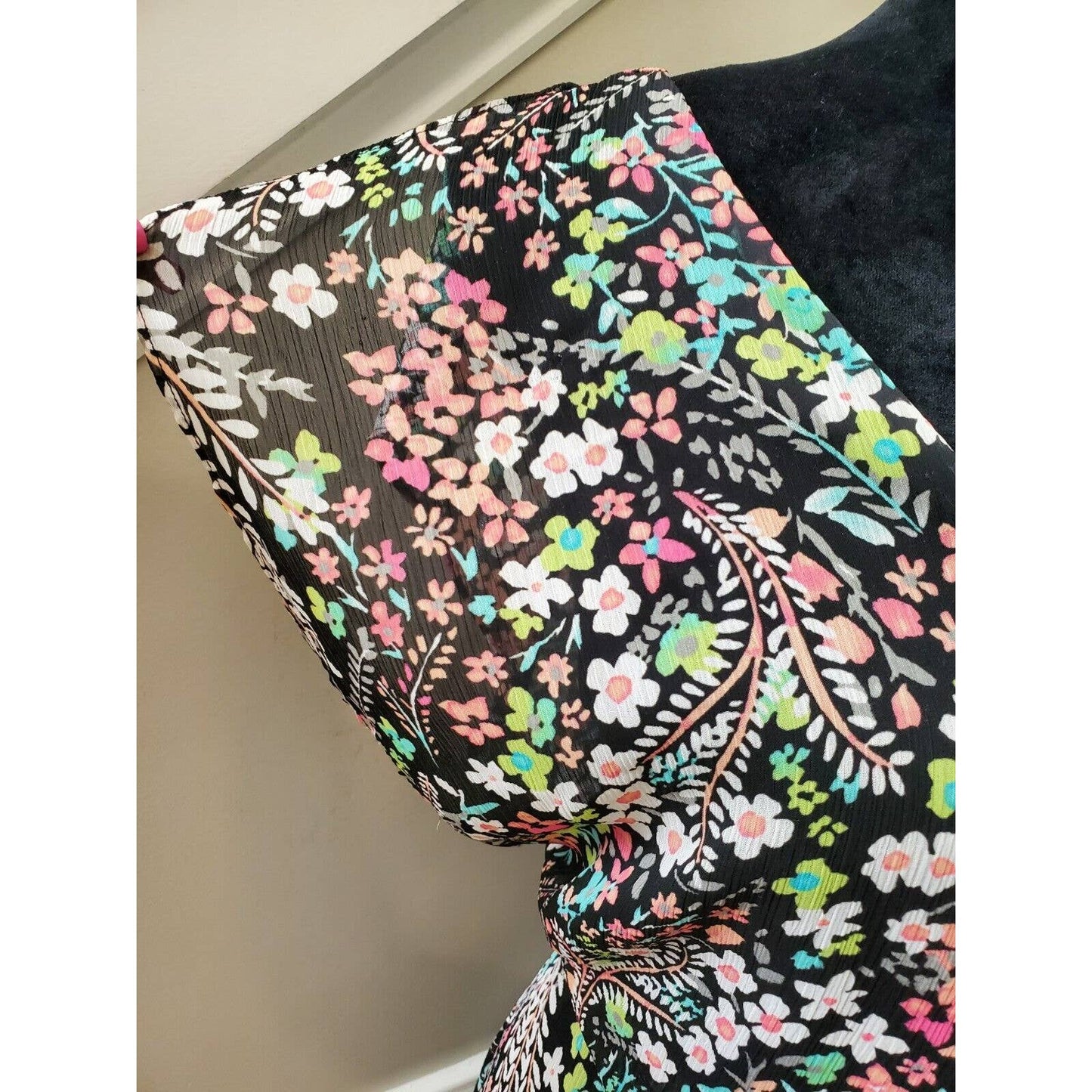 Candie's Women Black Floral Polyester V-Neck Short Sleeve Knee Length Dress L