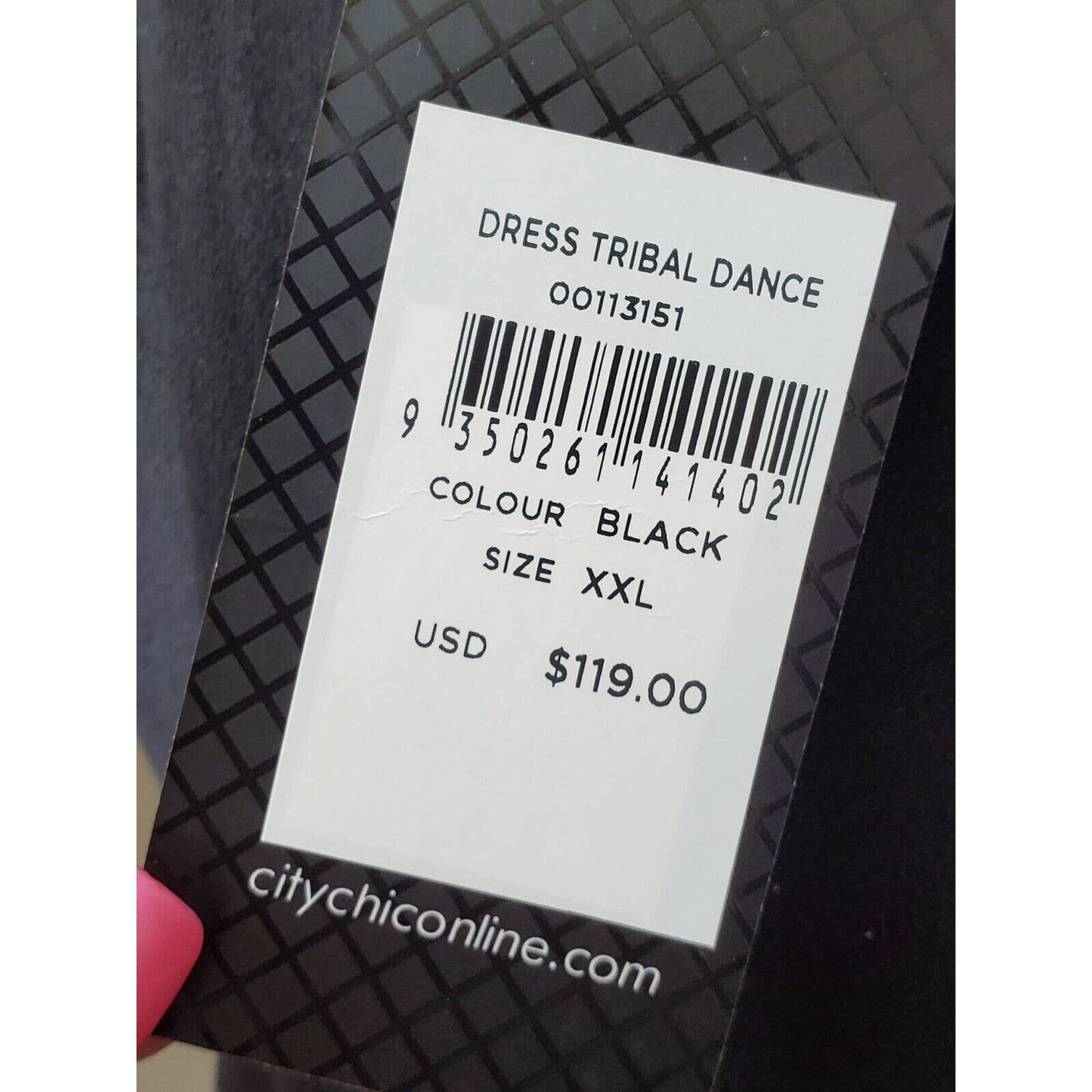 City Chic Women's Black Round Neck Sleeveless Tribal Dance Knee Length Dress 2XL.