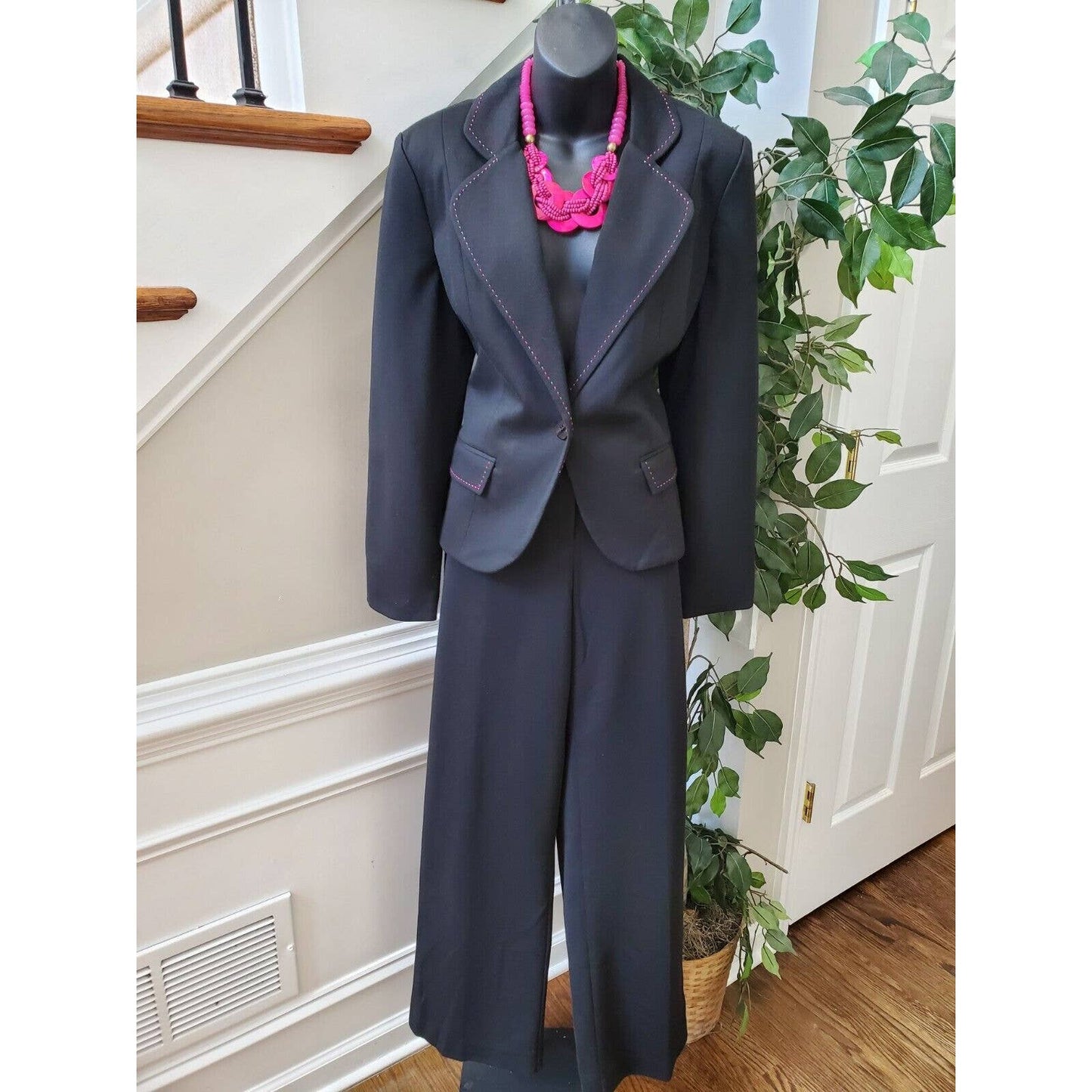 Courtenay Women Black Polyester Single Breasted Jacket & Pant 2 Piece Suit 10.