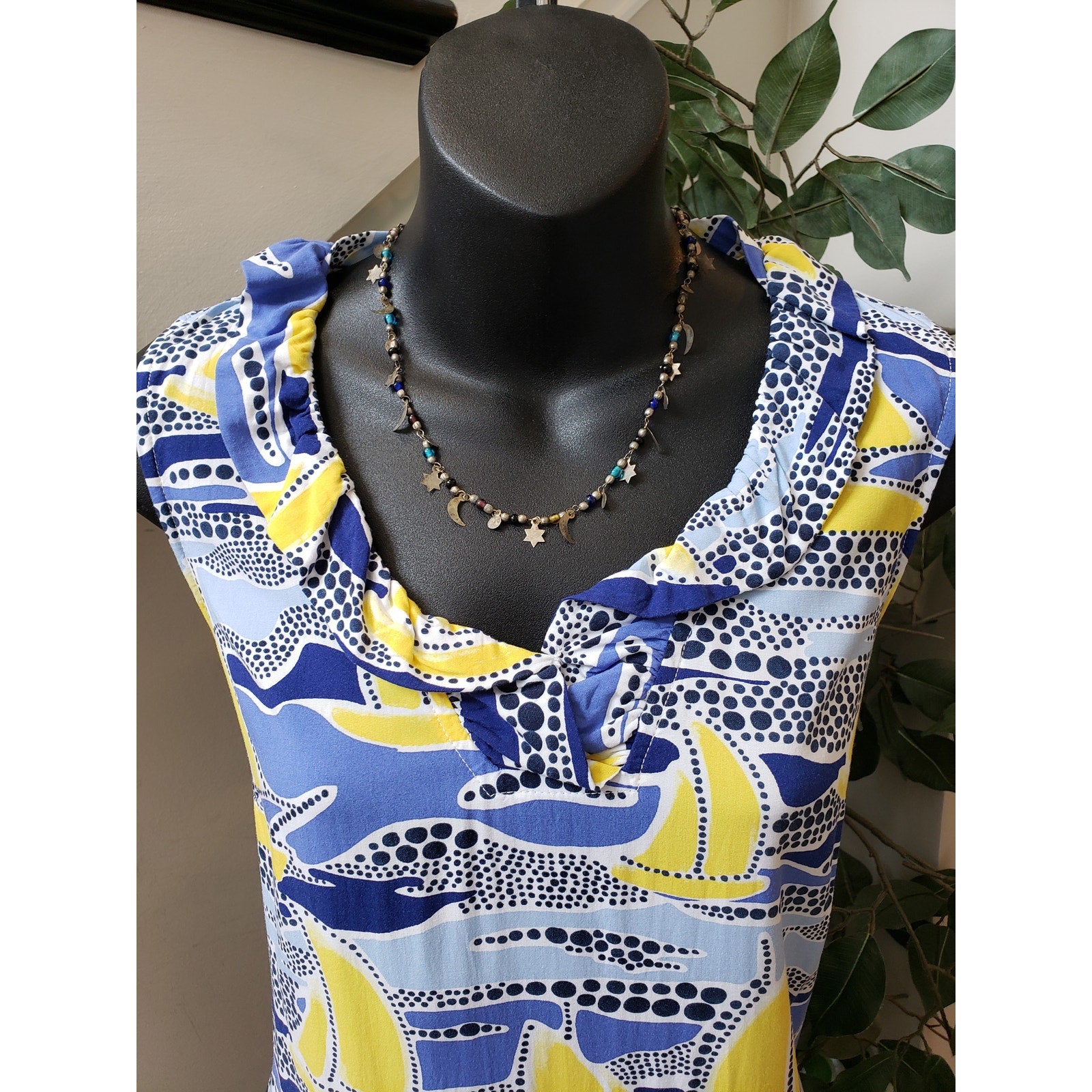 Crown & Ivy Sheath Dress Womens PS Multi Sailboat Print Sleeveless Ruffled Neck
