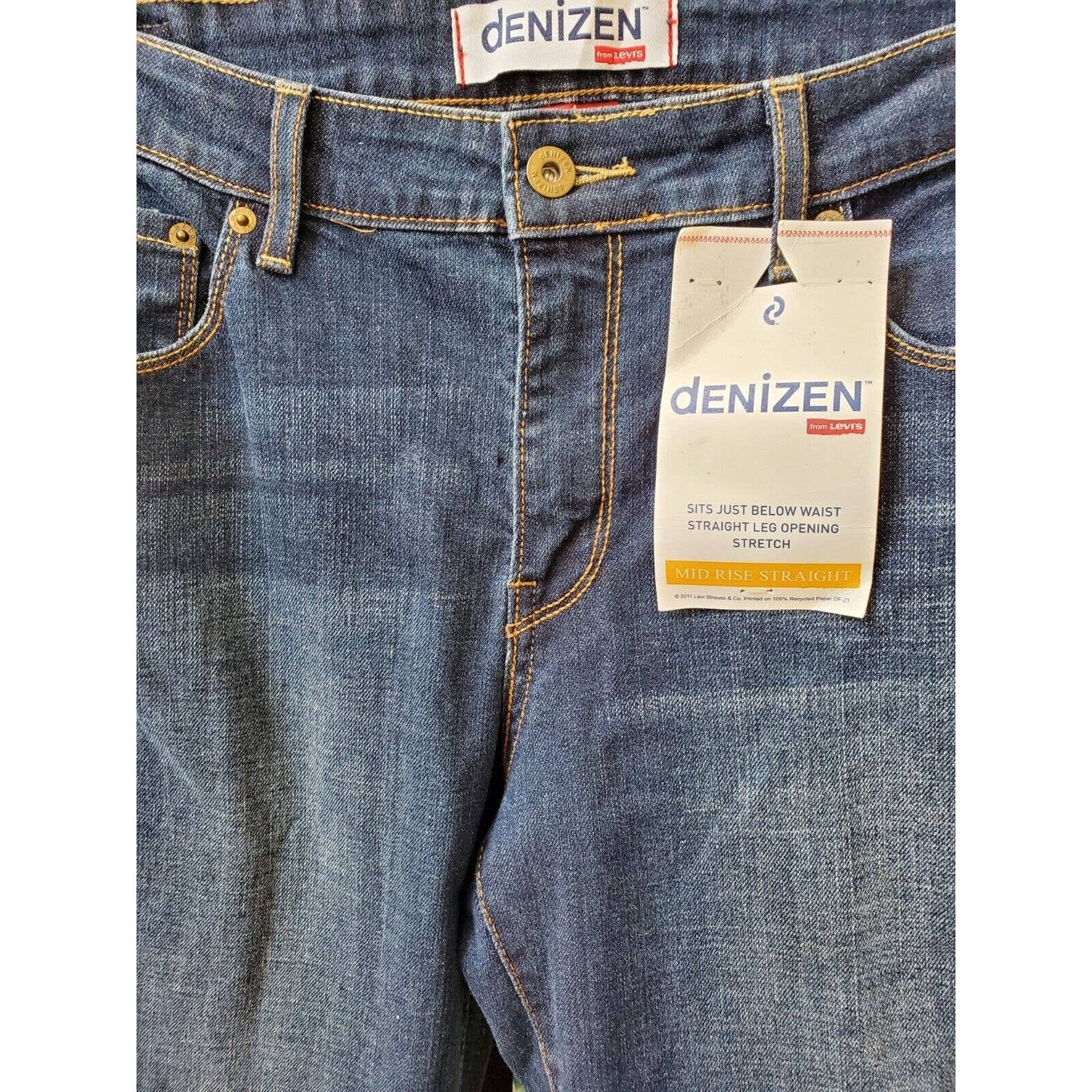 Denizen Women's Blue Denim Cotton Mid Rise Pull on Straight Jeans Pant Size 16M.