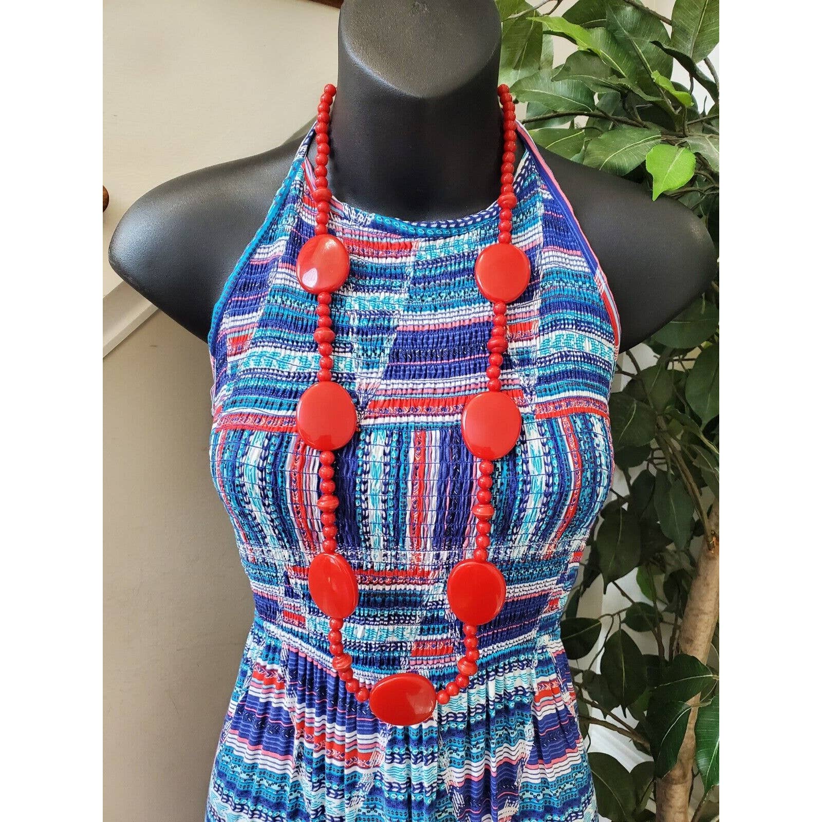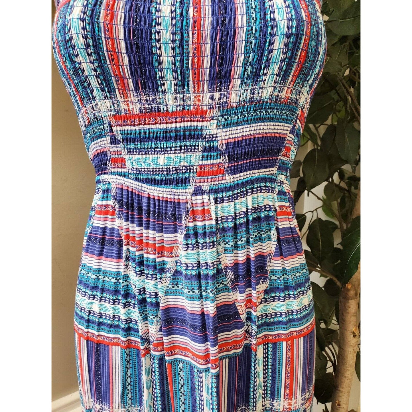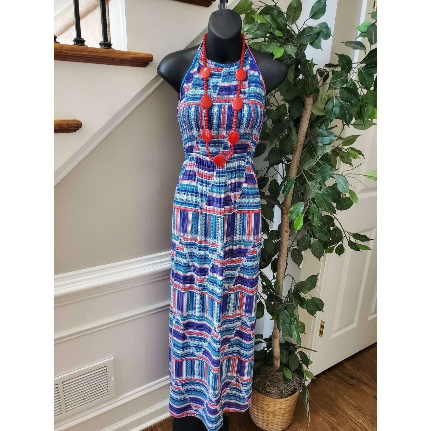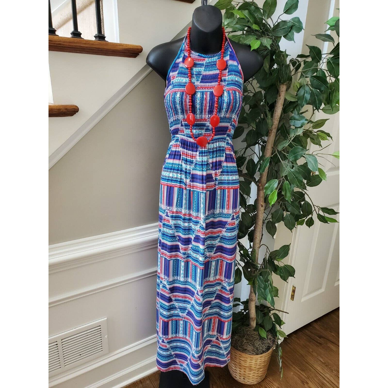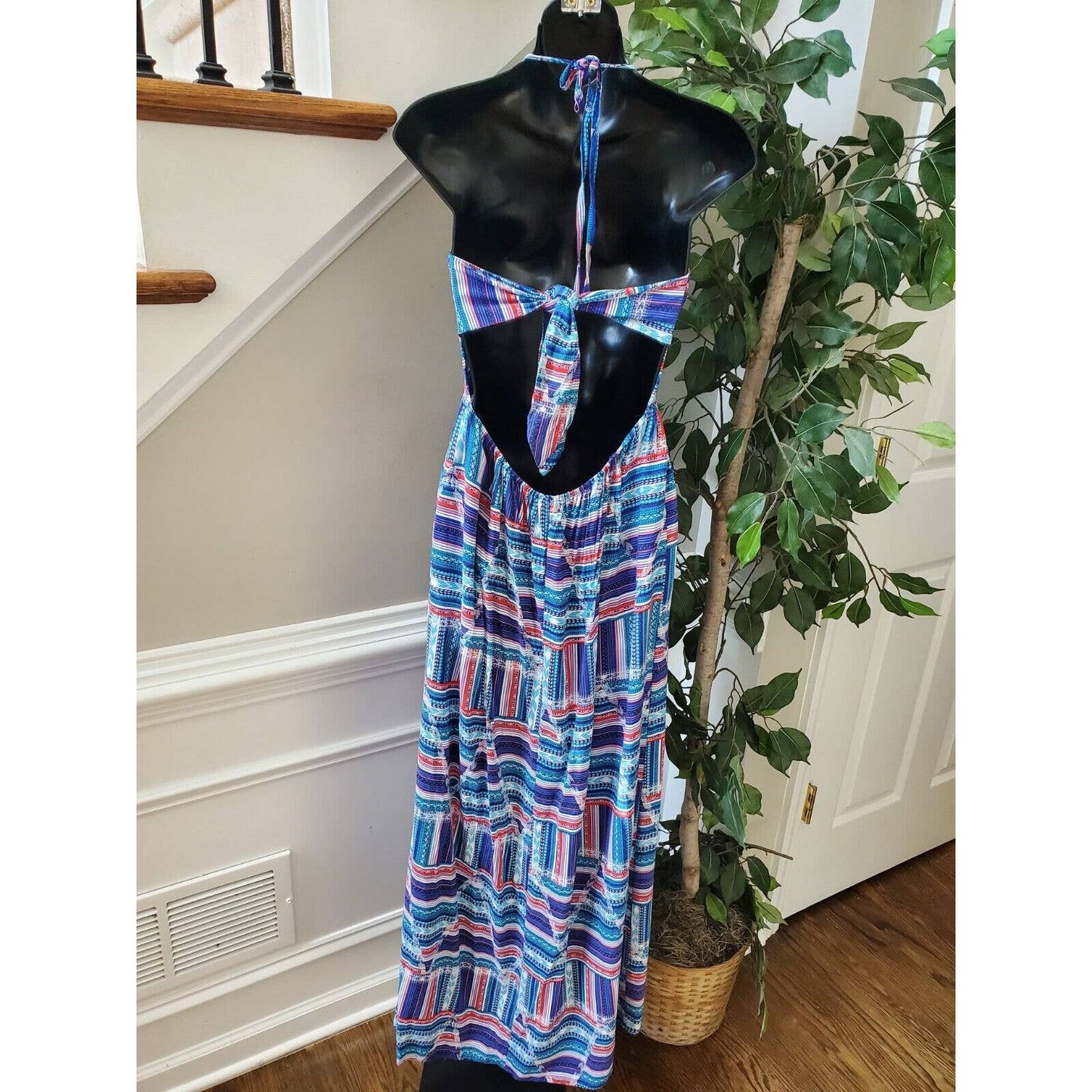 Derek Heart Women Blue 100% Rayon Halter Neck Sleeveless Long Maxi Dress Size L.