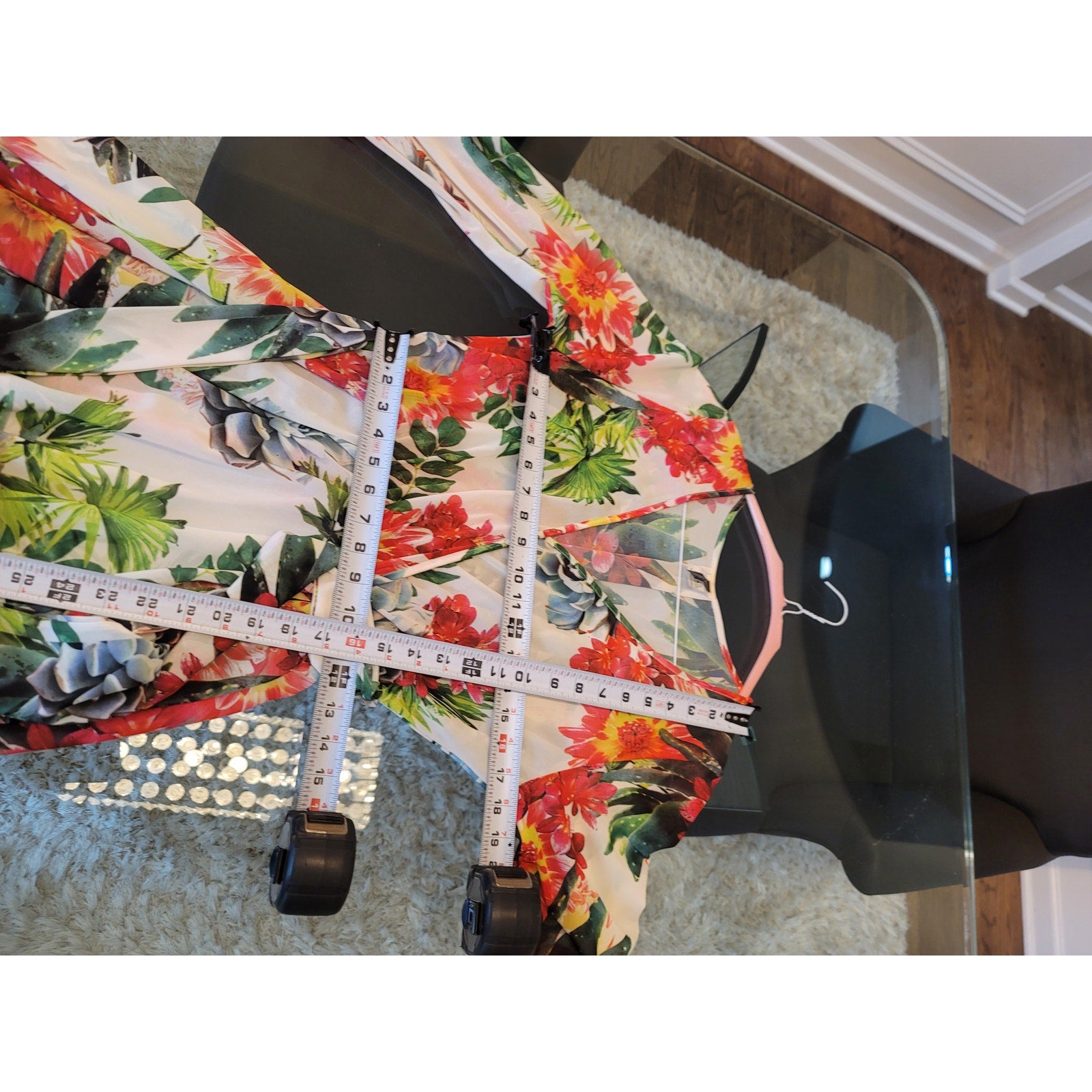 Color: White base with multicolor floral print