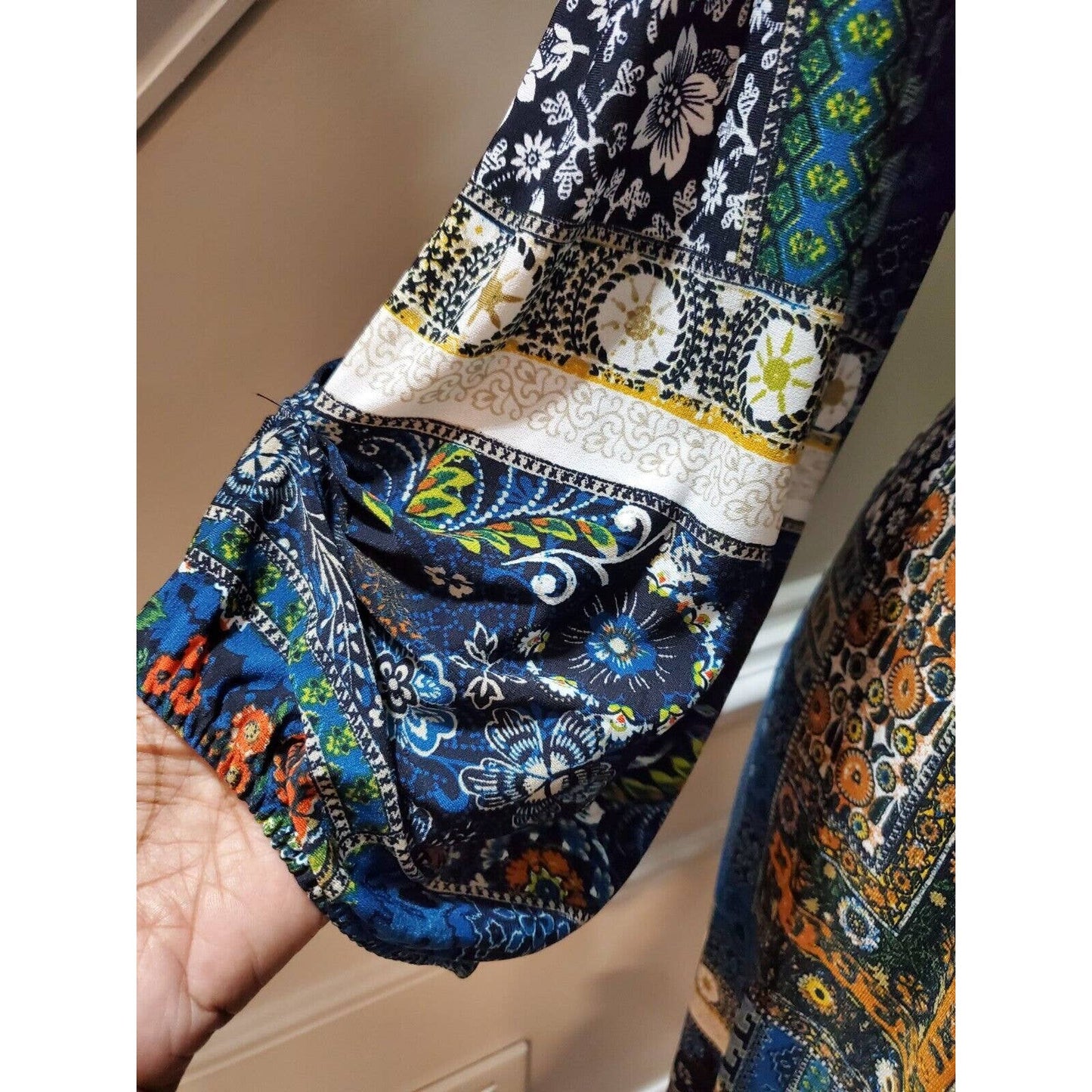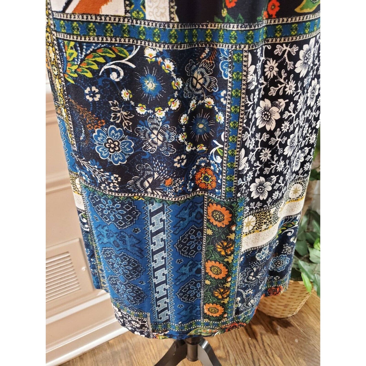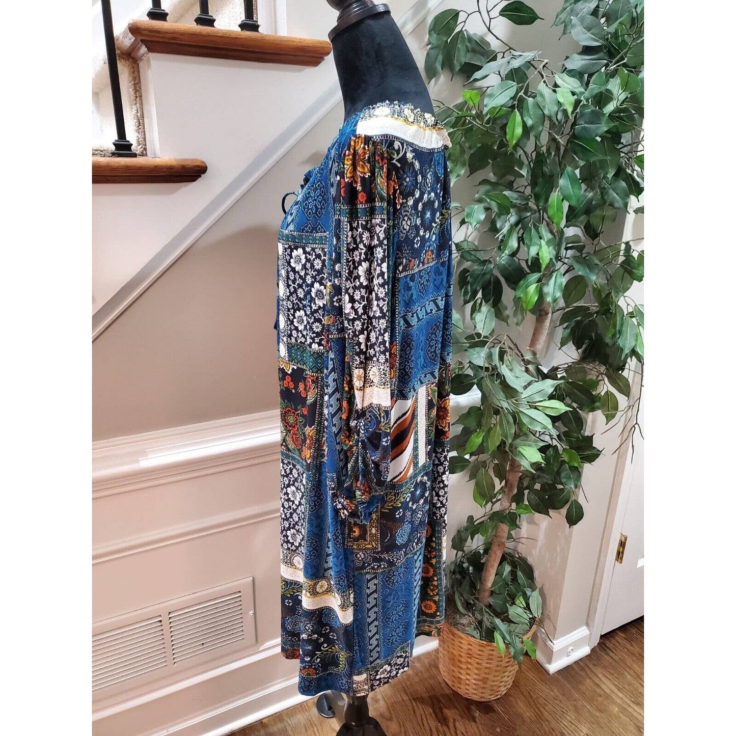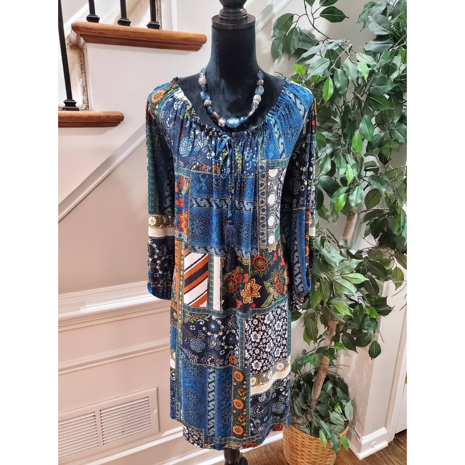 En Focus Women Blue Polyester Scoop Neck Long Sleeve Knee Length Dress Size 18W