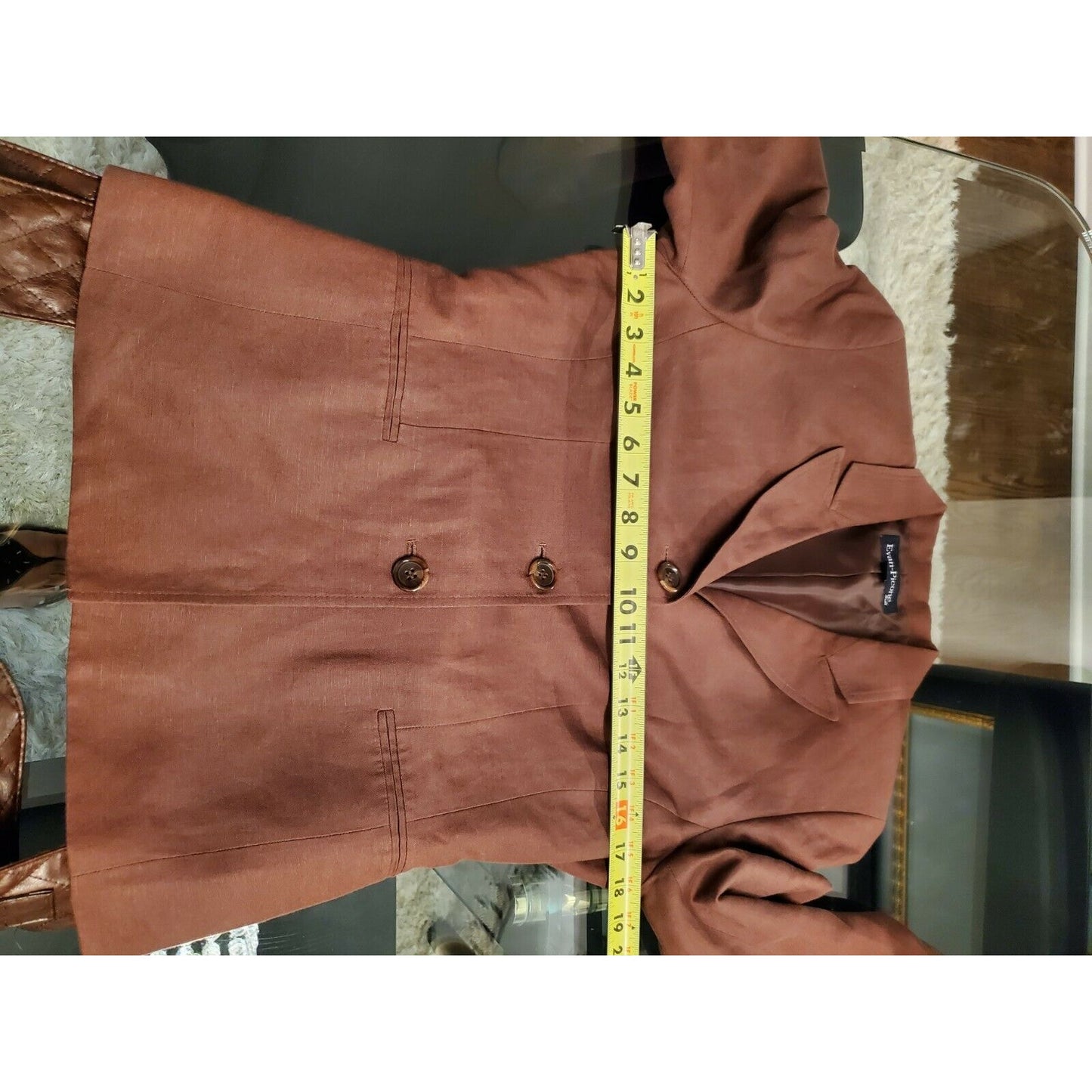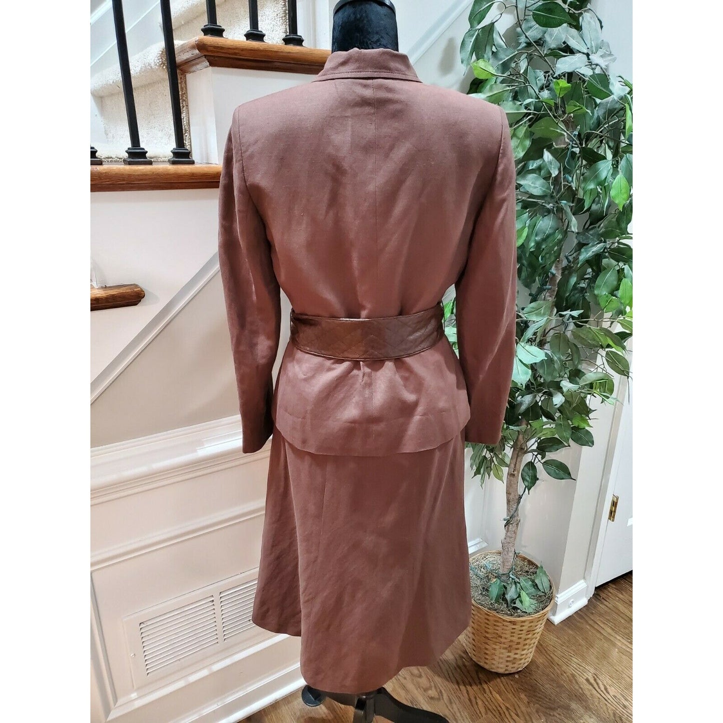 Evan Picone Women's Brown Linen & Rayon Long Sleeve Jacket & Skirt 2 Piece Suit 6