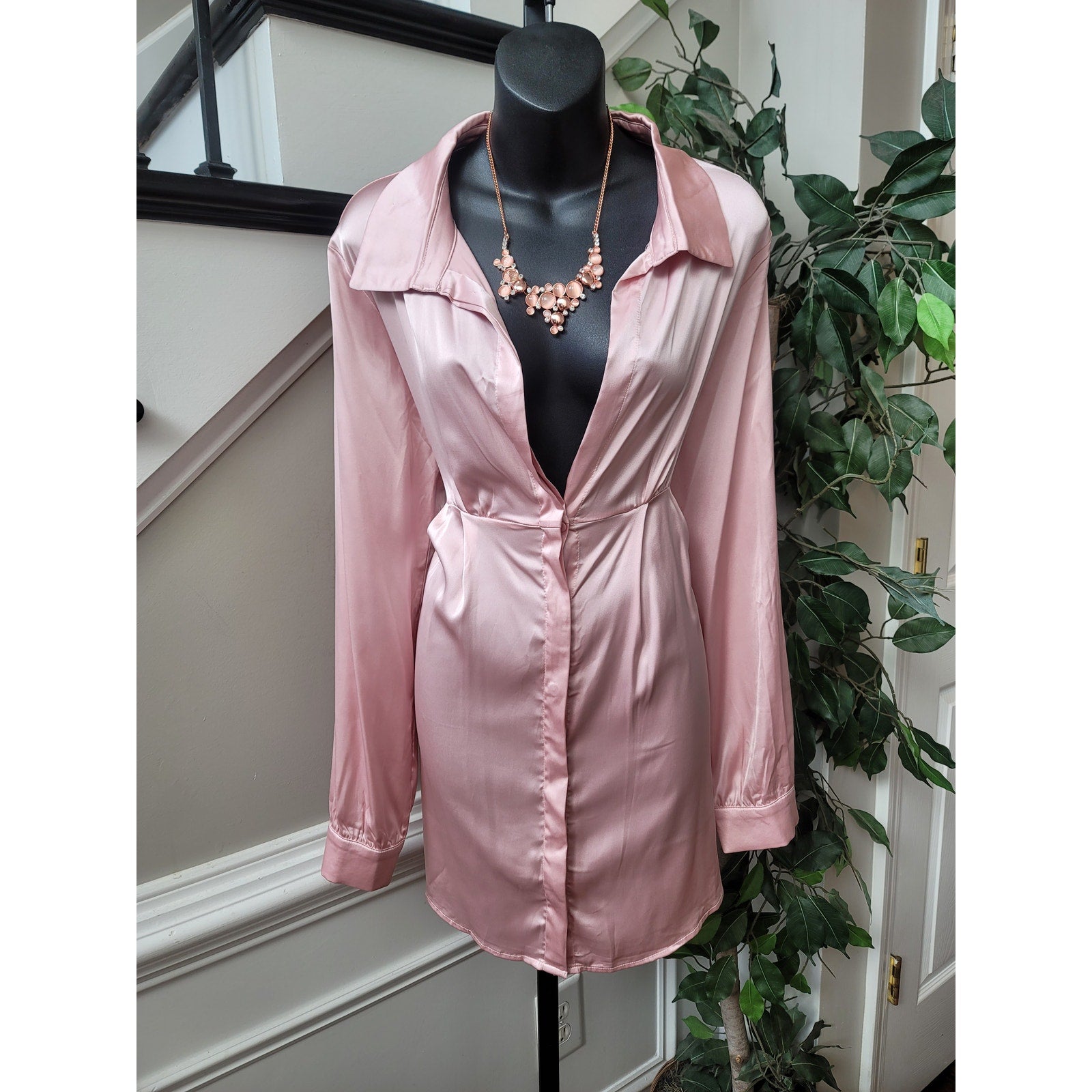 Make a statement in this stunning Fashion Nova dress! This First Priority dress features a beautiful pink satin fabric that shimmers in the light. The long sleeves add a touch of elegance, making it perfect for a night out or special occasion. This dress is a women's size large and is sure to turn heads.