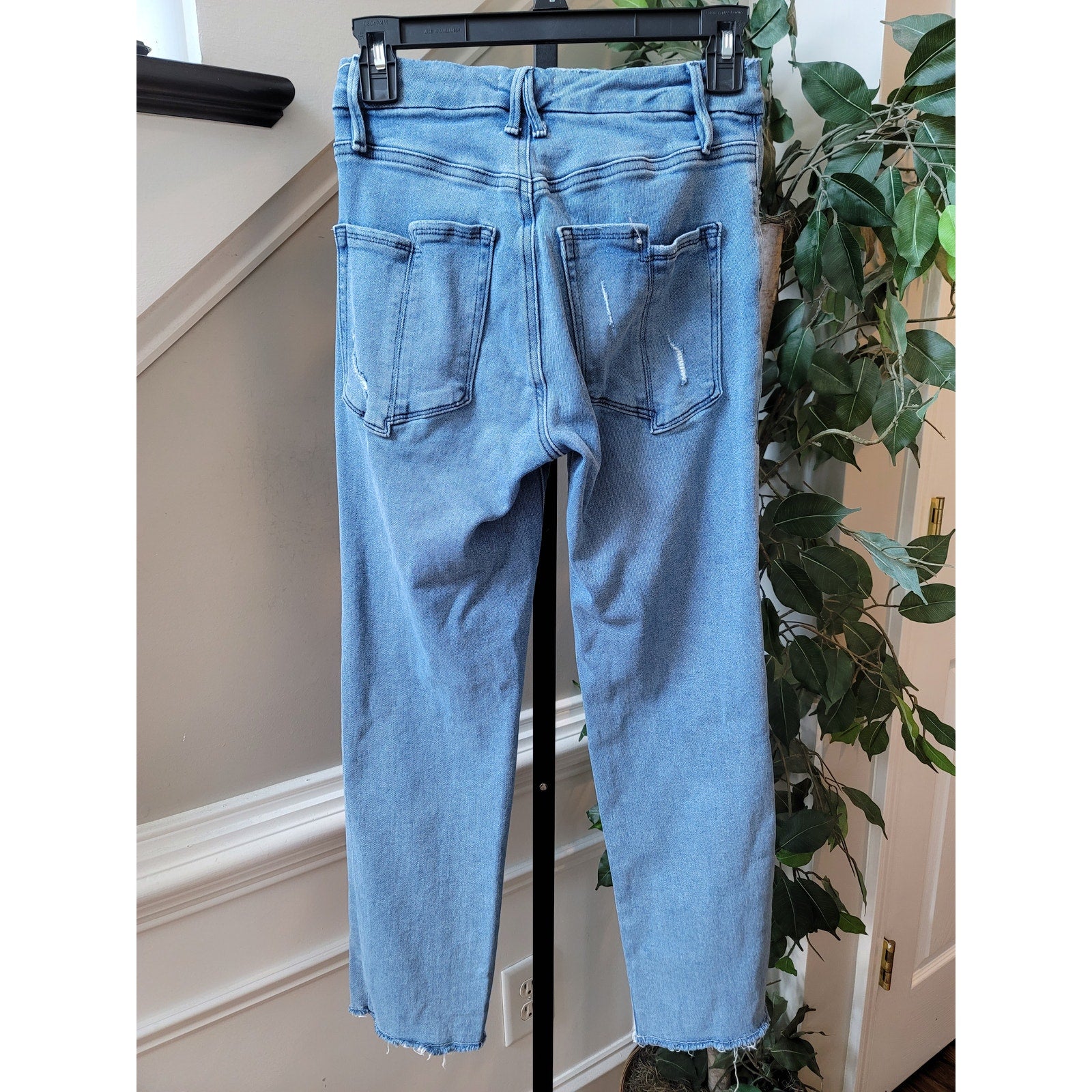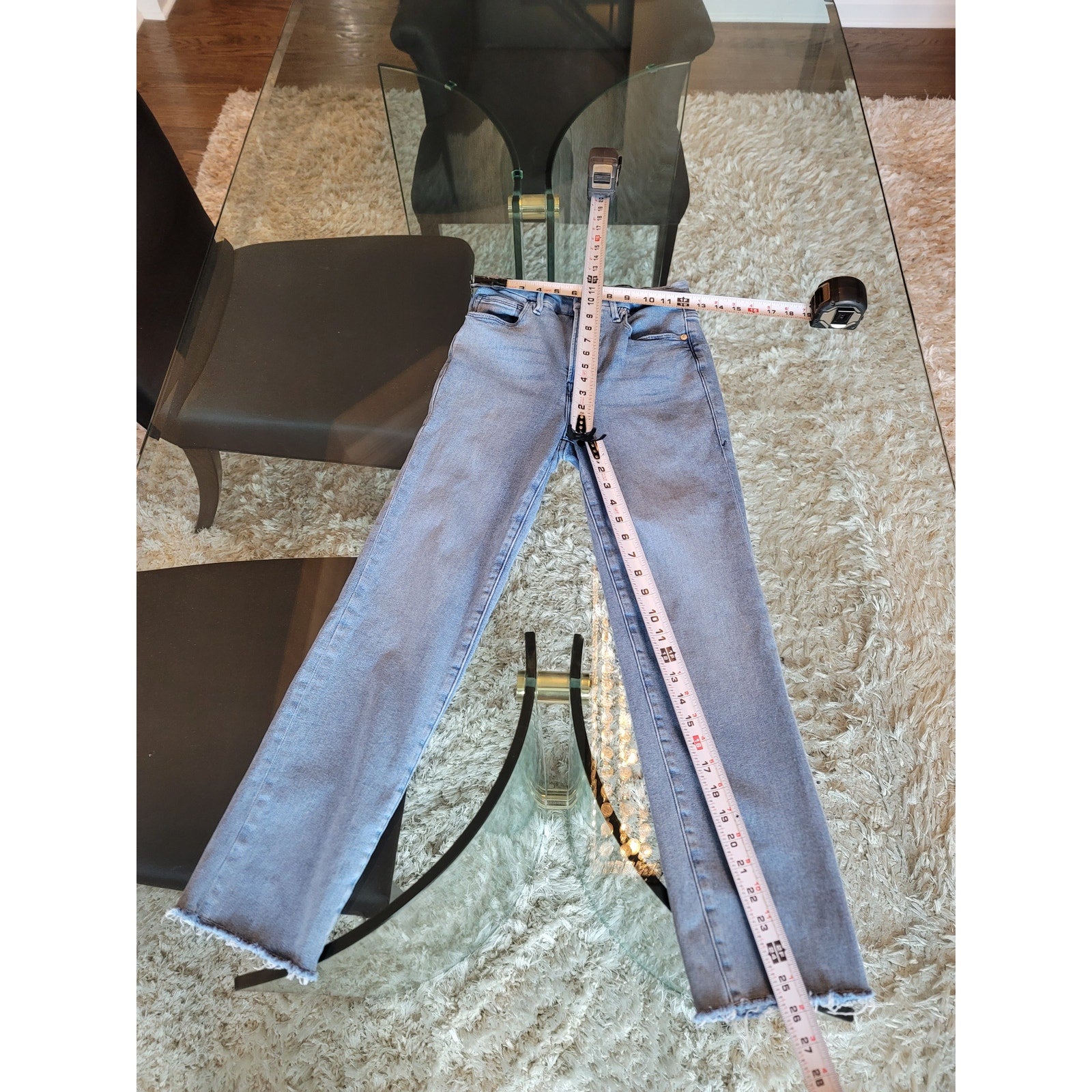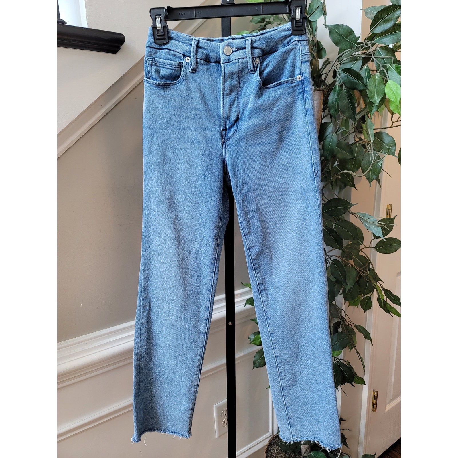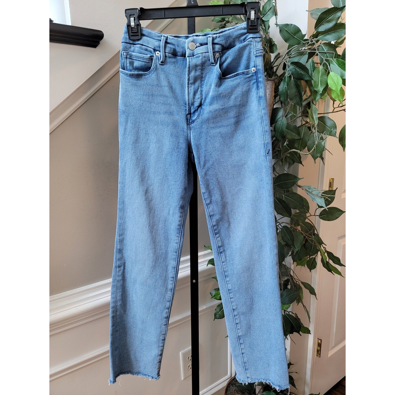 Good American High Rise Jeans Women's 27 Blue Organic Cotton Stretch Frayed Hem