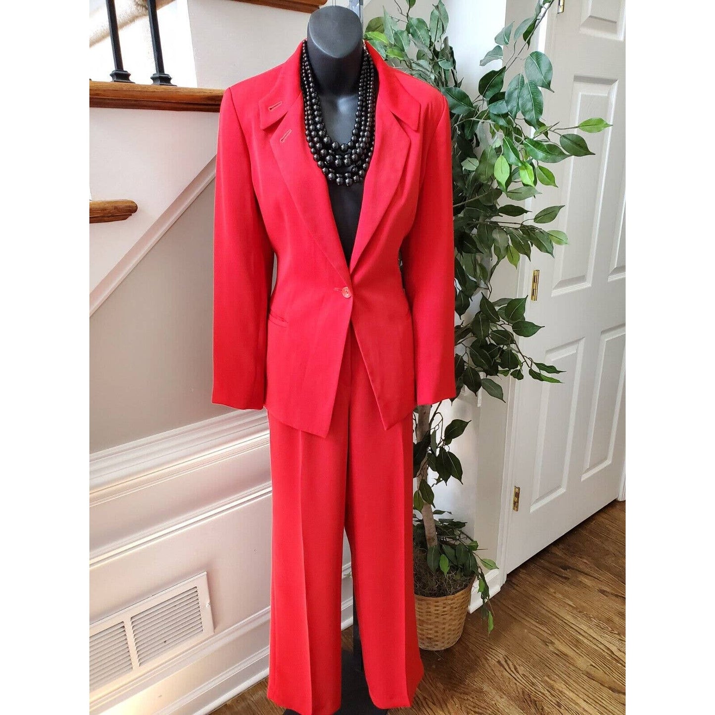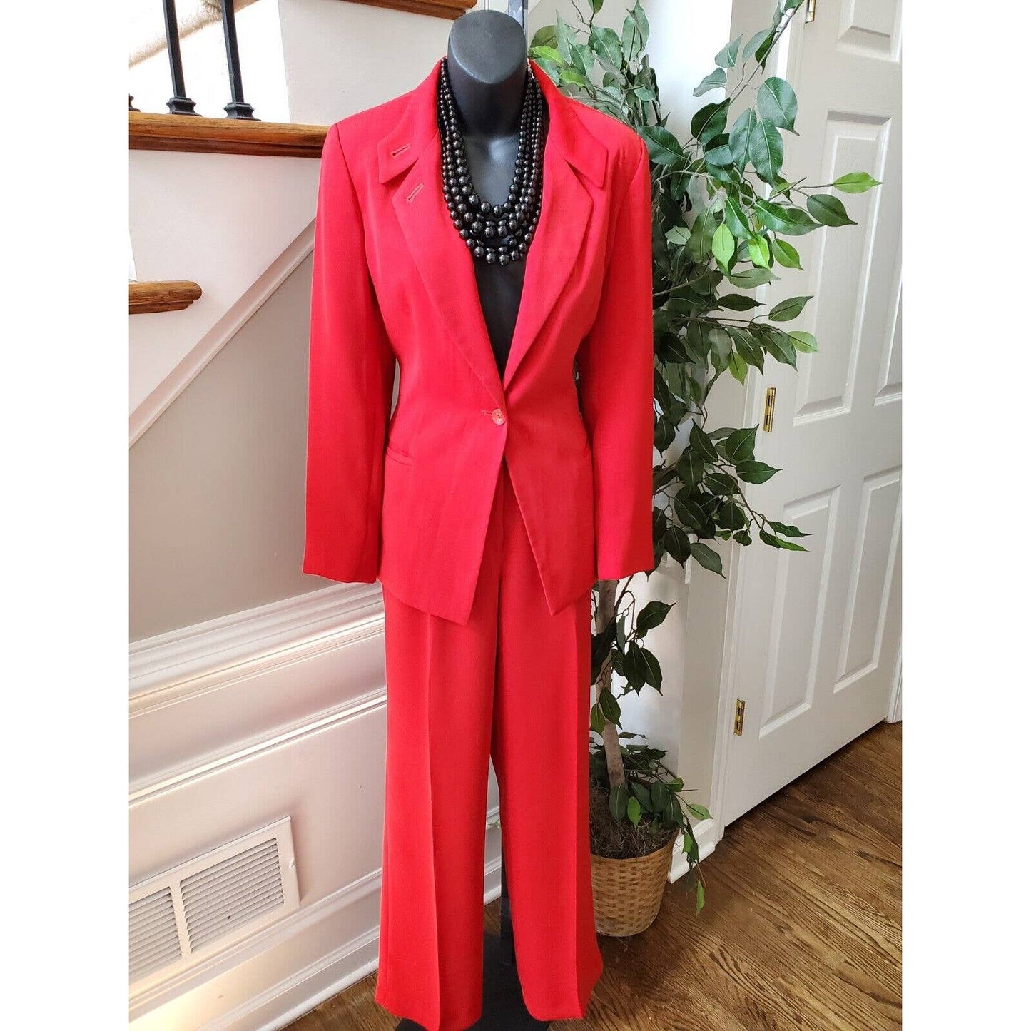 Harvé Benard Women's Red Polyester Single Breasted Blazer & Pant 2 Pc's Suit 10.