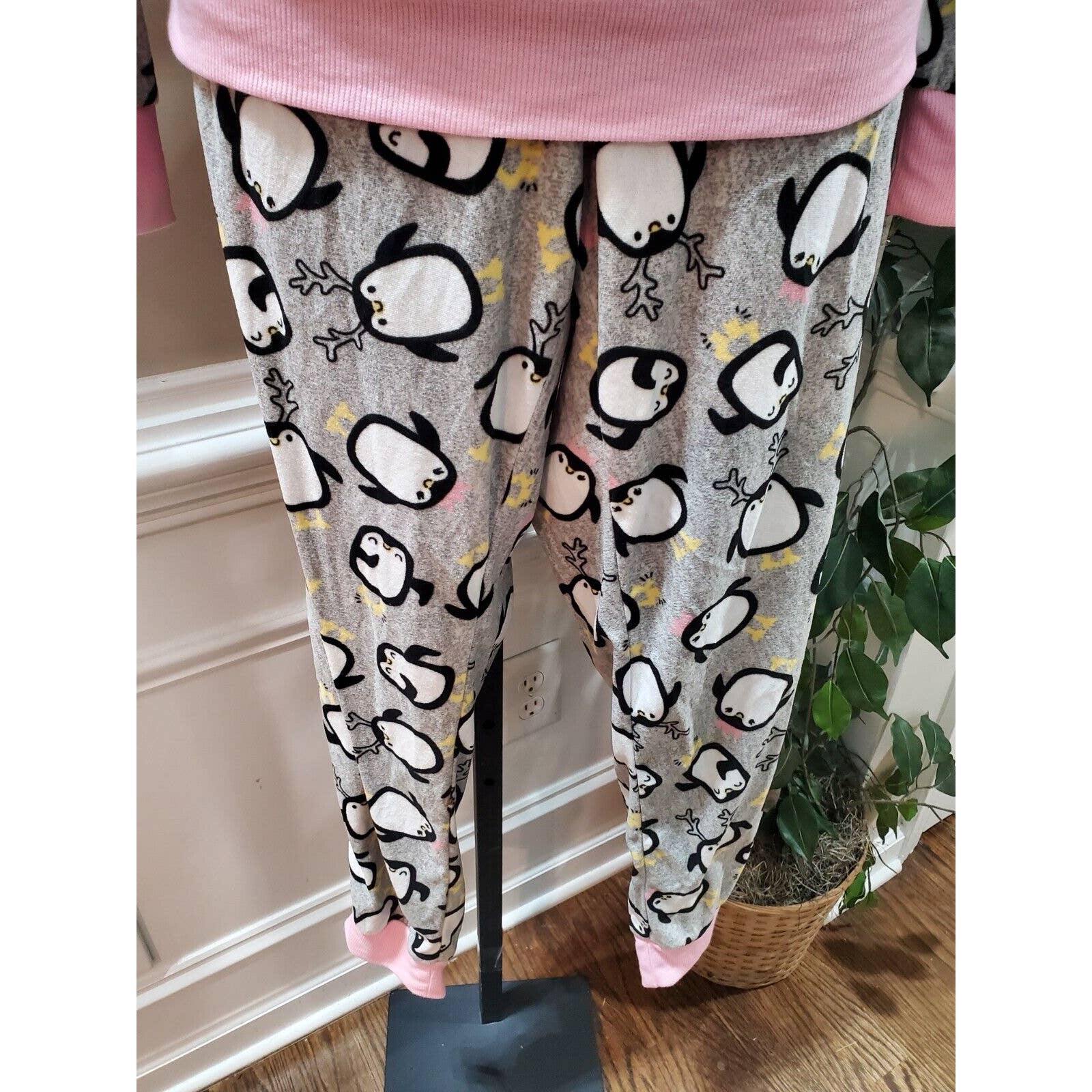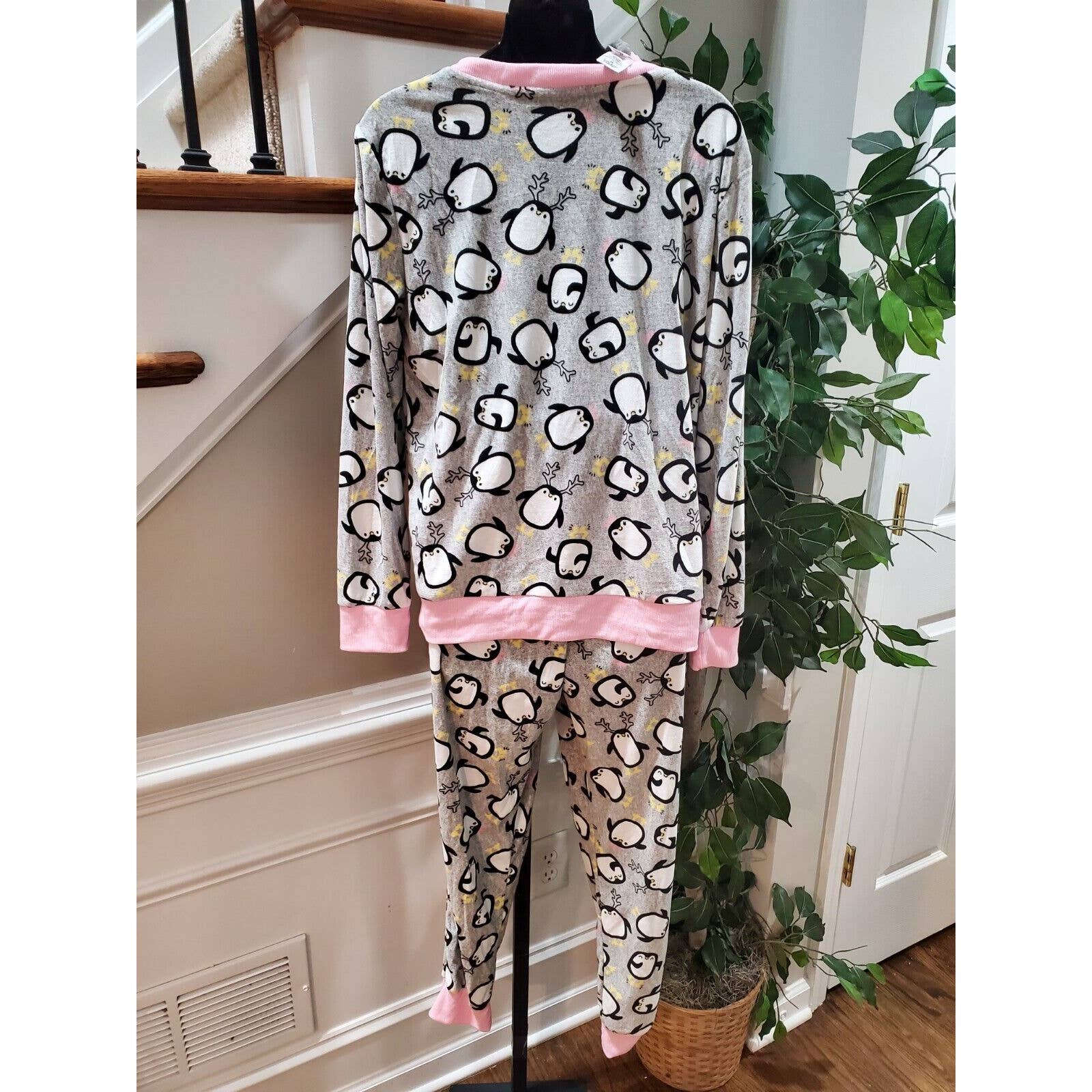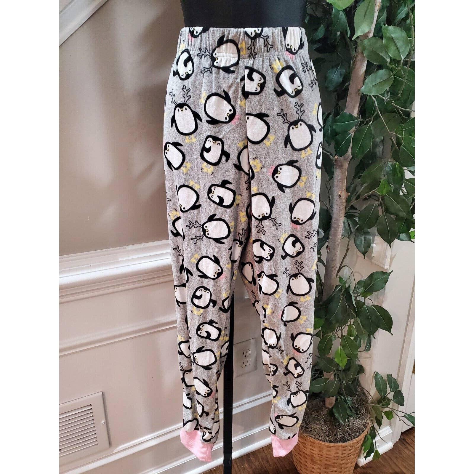 Holiday Time Women's Gray Cotton Long Sleeve Top Shirt & Trouser 2 Piece Set M