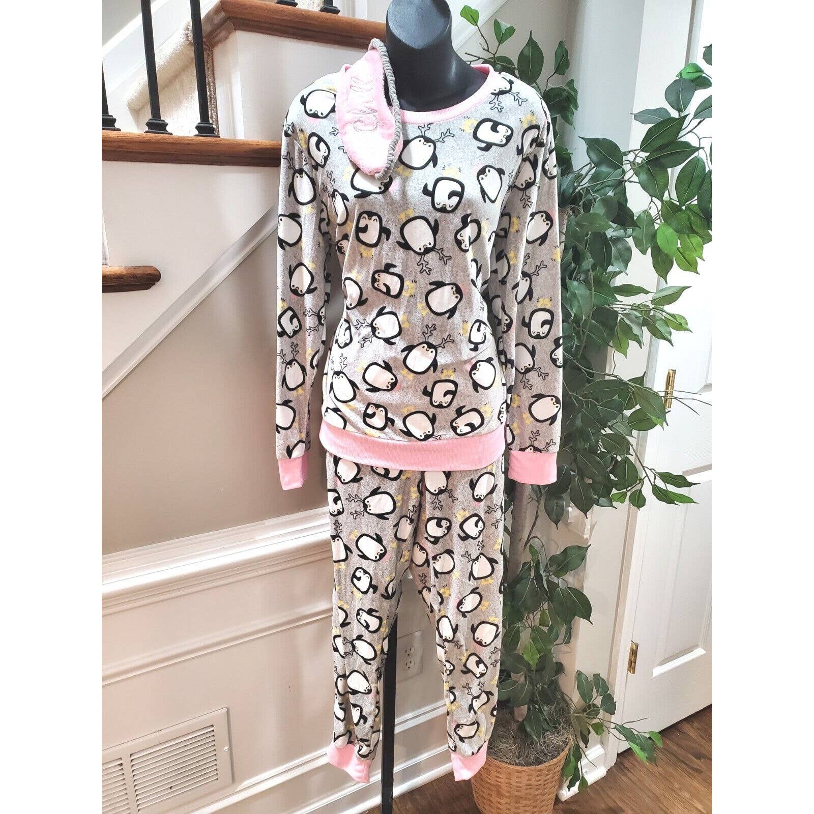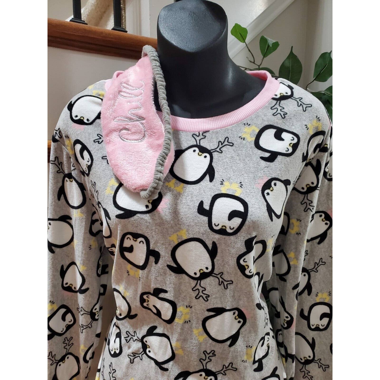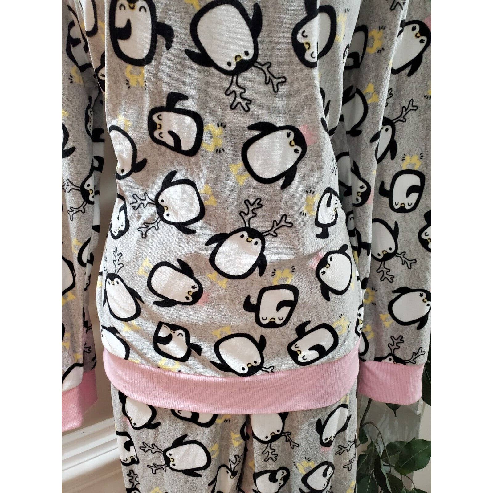 Holiday Time Women's Gray Cotton Long Sleeve Top Shirt & Trouser 2 Piece Set M