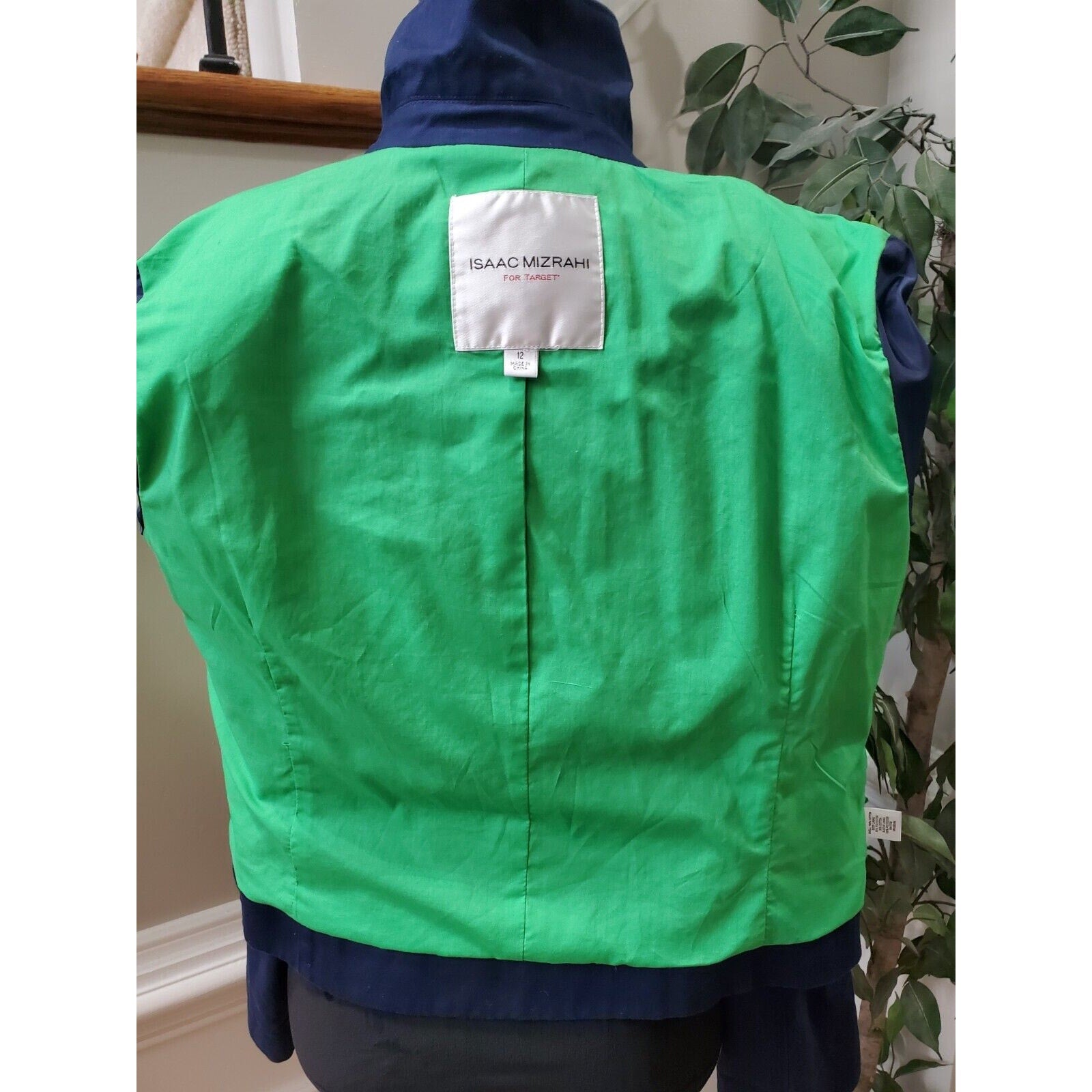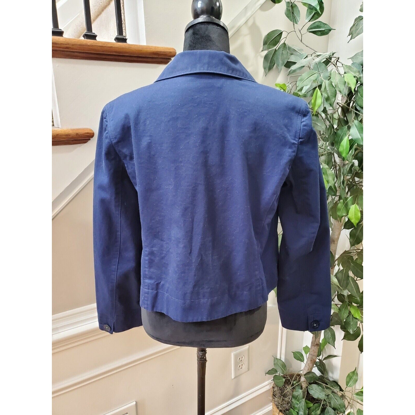 Isaac Mizrahi Women's Blue Cotton Double Breasted Long Sleeve Jacket Blazer 12.