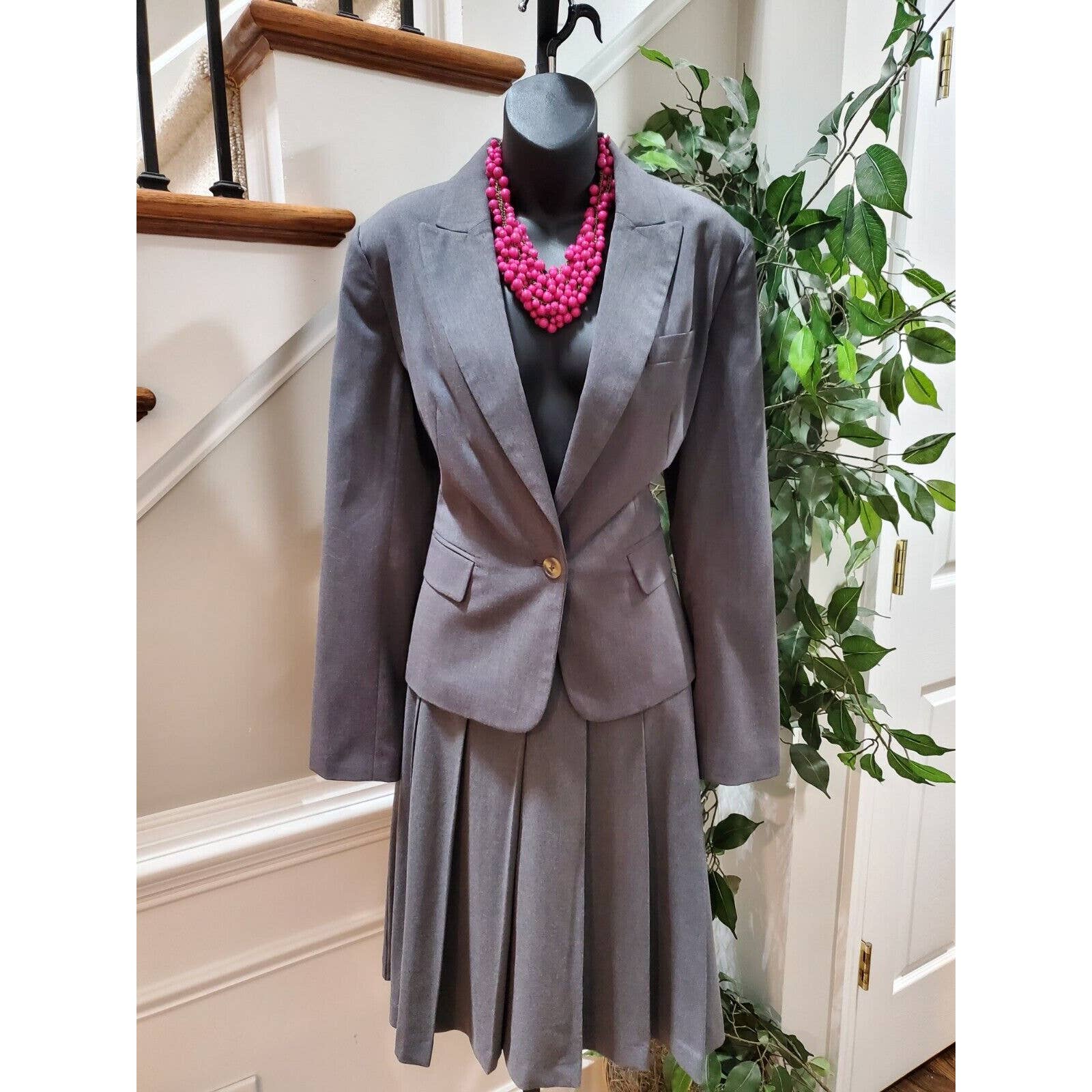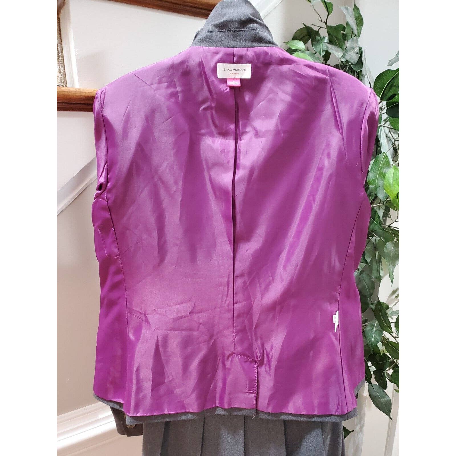 Isaac Mizrahi Women's Gray Polyester Single Breasted Jacket & Skirt 2 Pcs Suit L