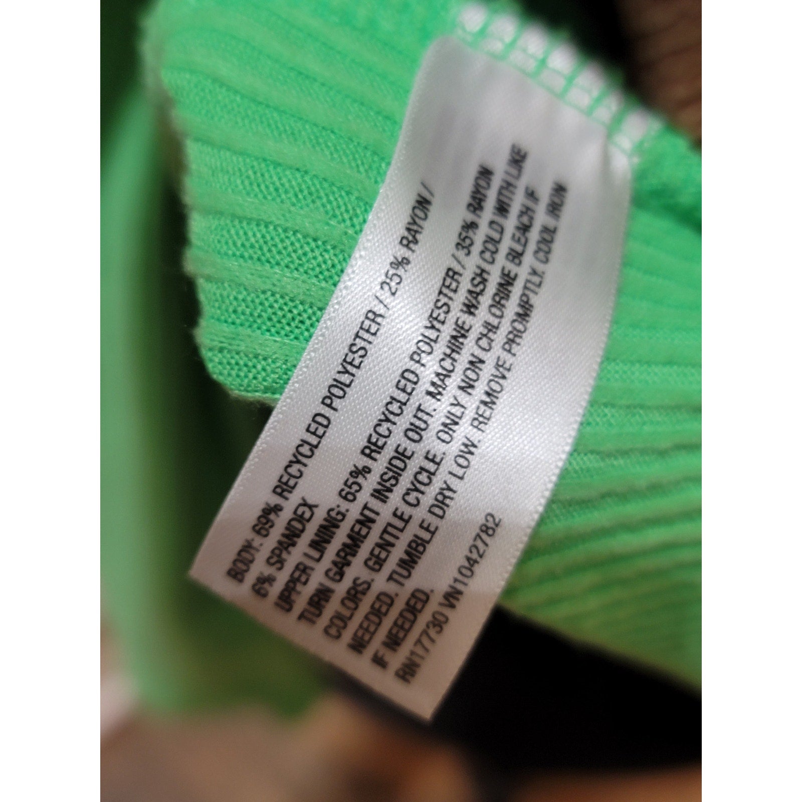 Fabric: 69% Recycled Polyester, 25% Rayon, 6% Spandex