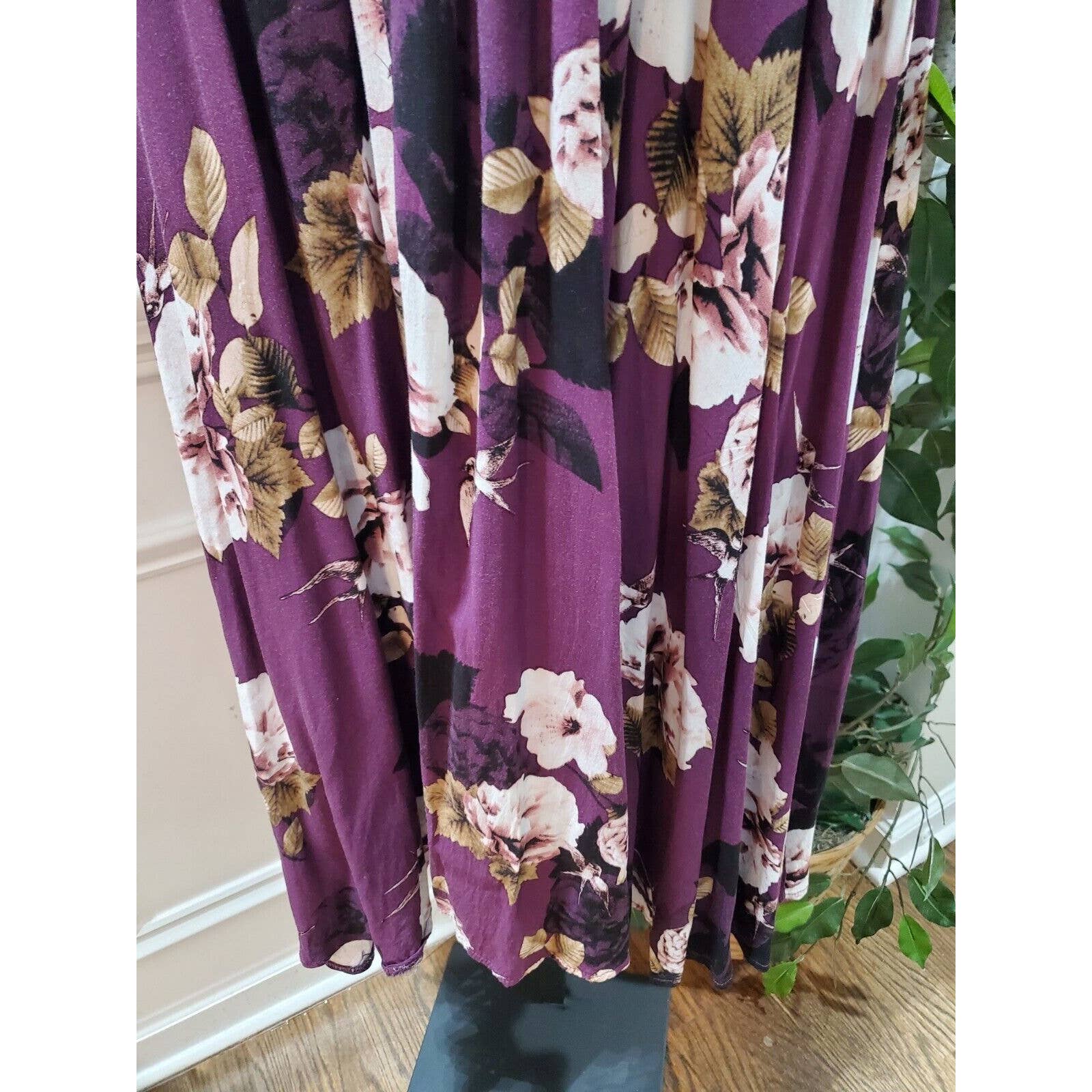 Jaase Women's Purple Floral Rayon Round Neck Half Sleeve Long Maxi Dress Small.
