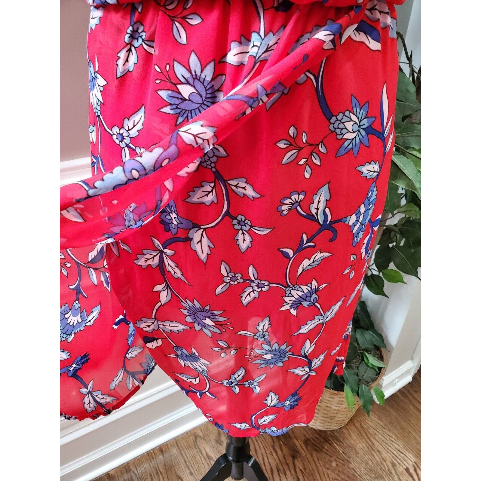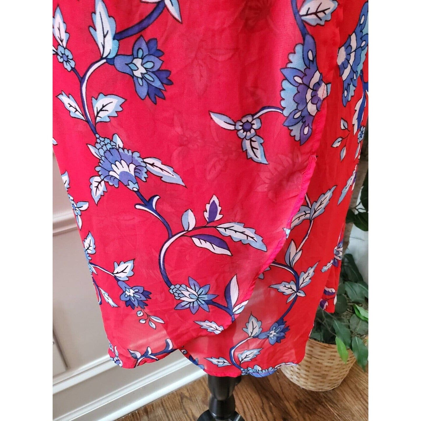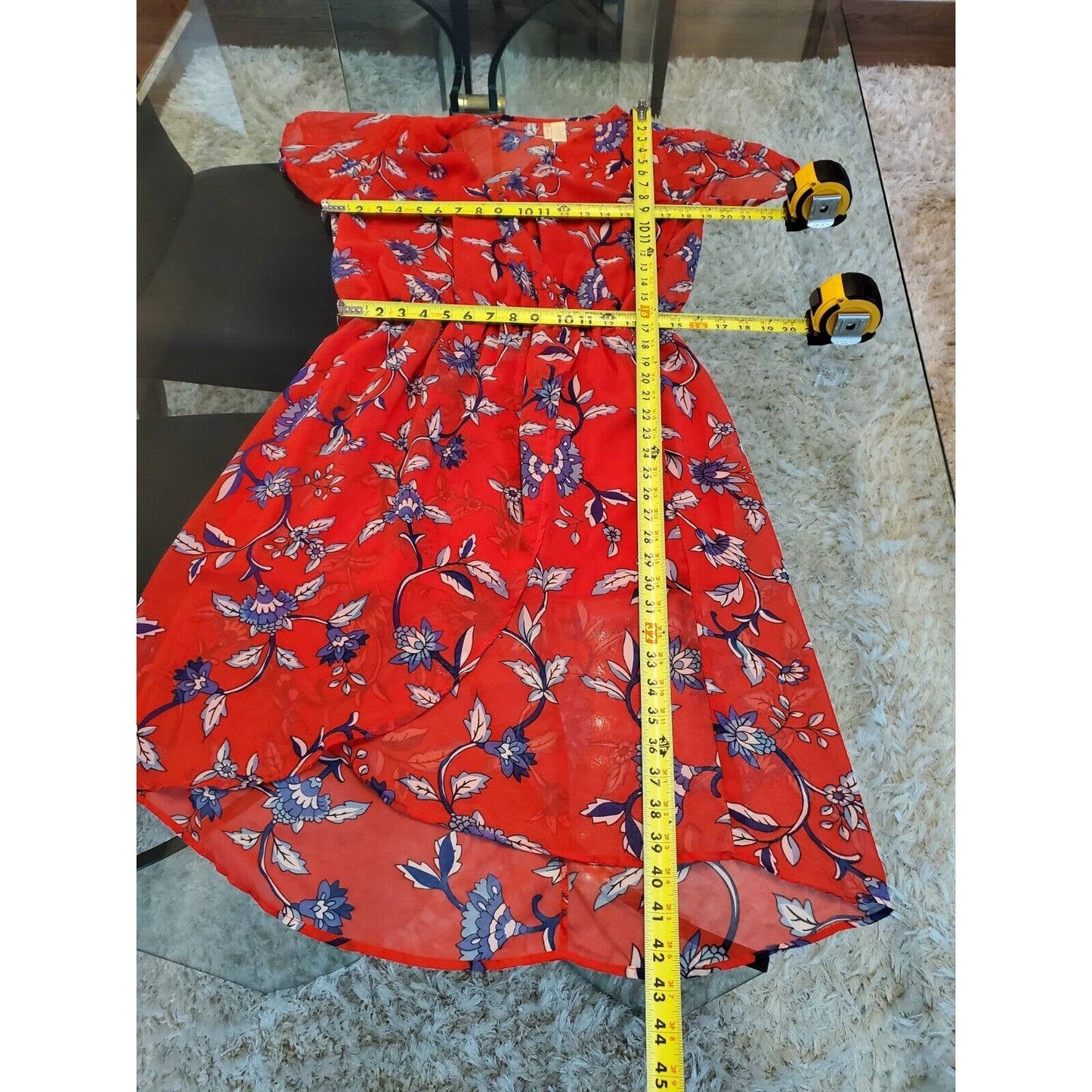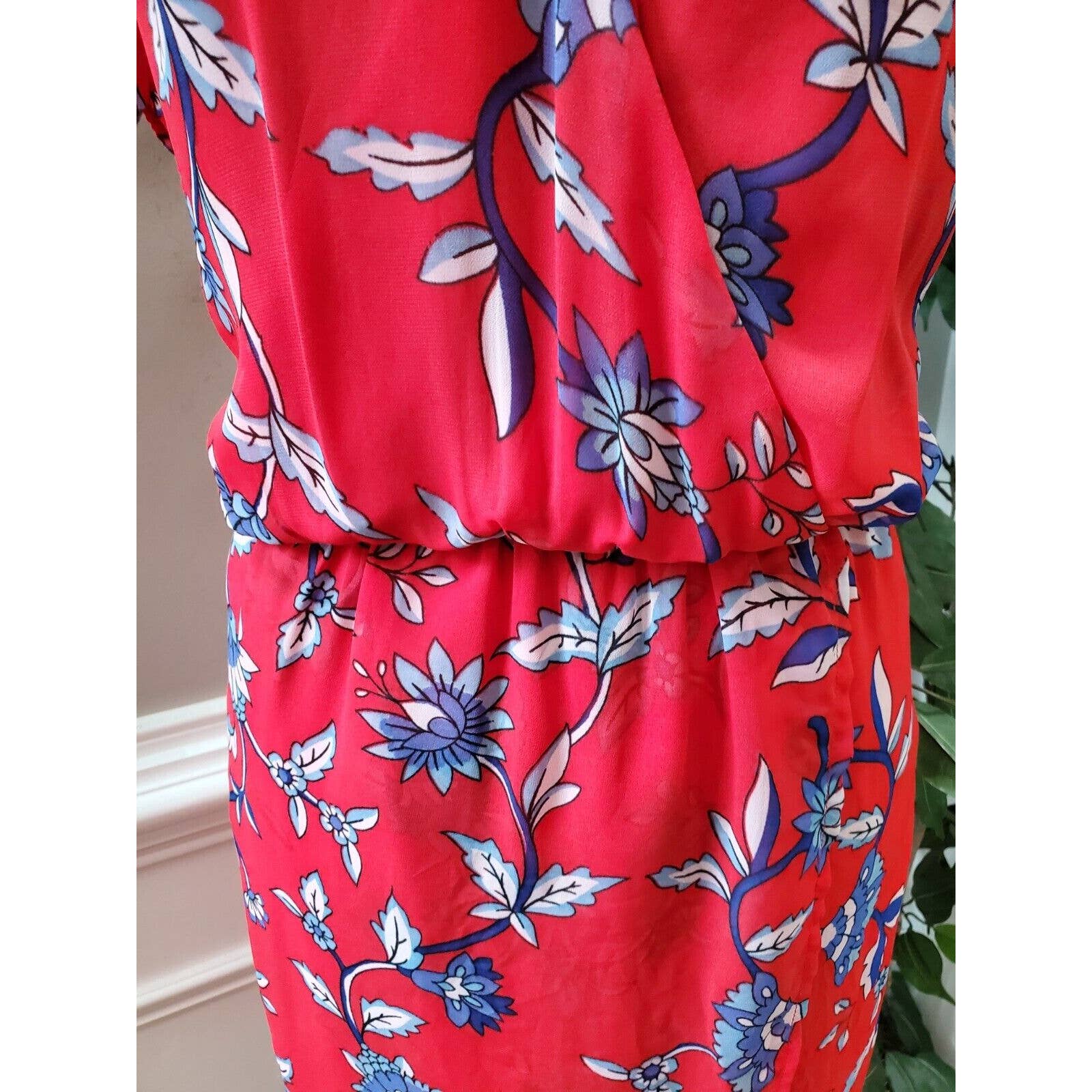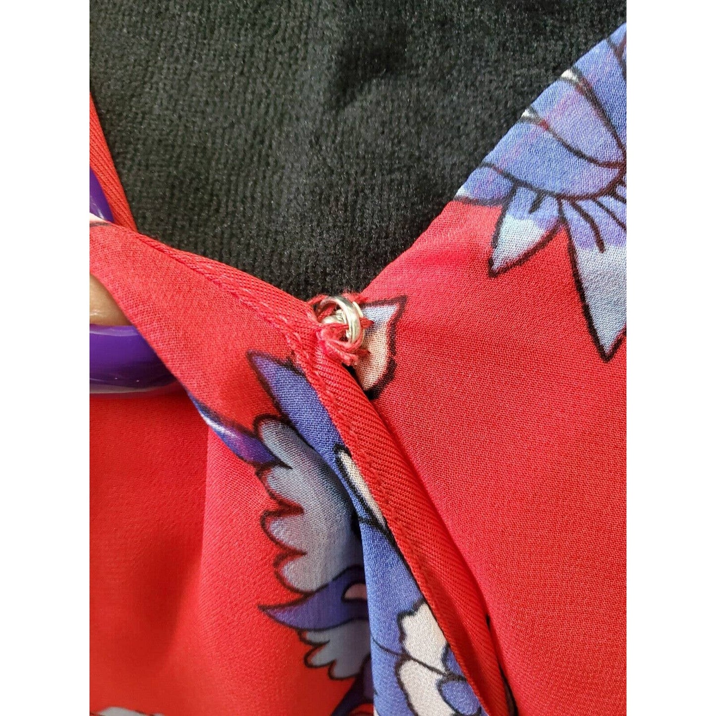 Japna Women's Red Floral 100% Polyester V-Neck Short Sleeves Knee Length Dress L.