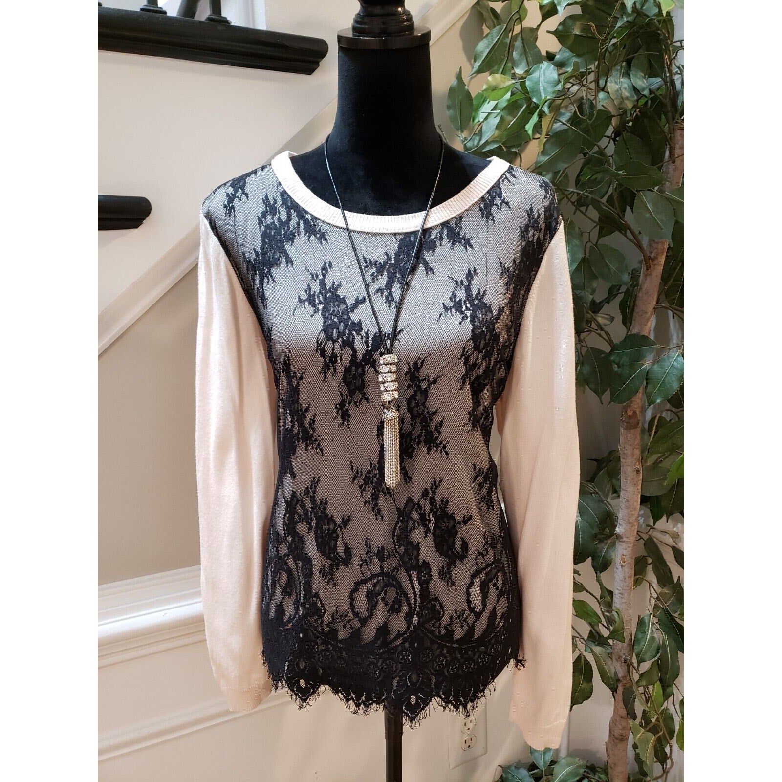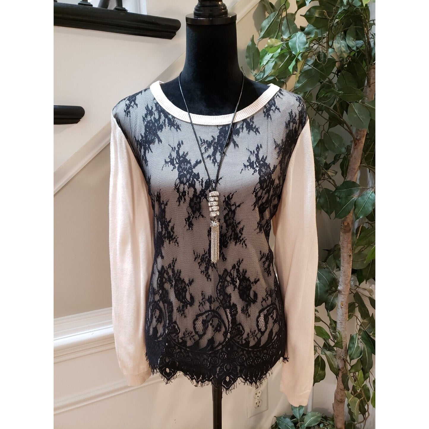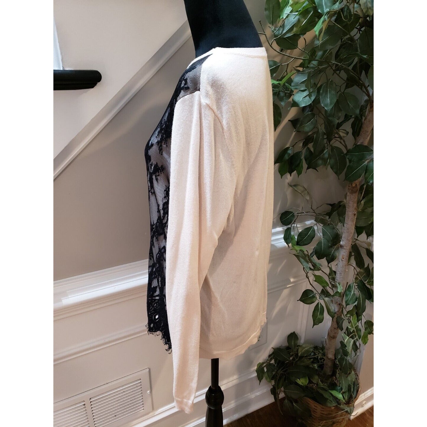 Jennifer Lopez Women's White Lace Over Round Neck Long Sleeve Sweater X-Large.