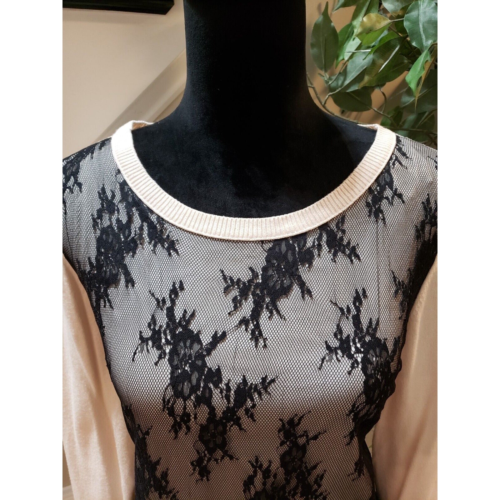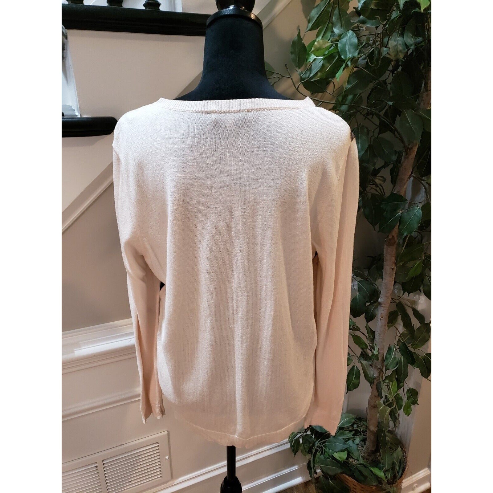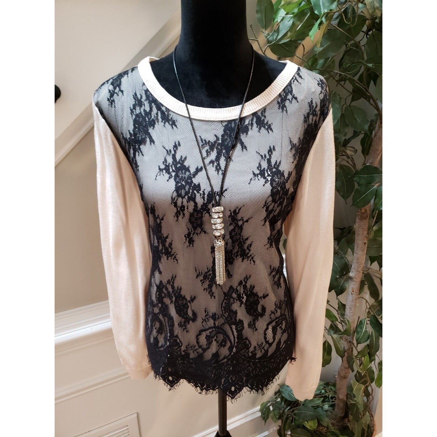 Jennifer Lopez Women's White Lace Over Round Neck Long Sleeve Sweater X-Large.