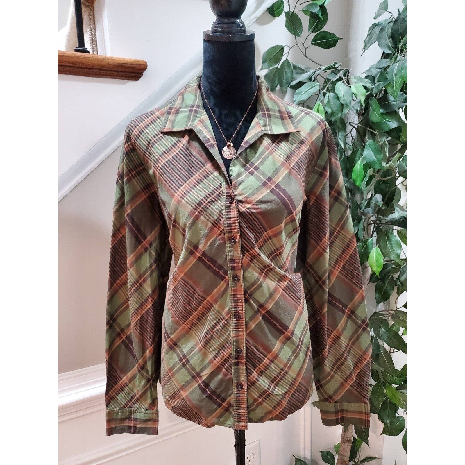 Jones New York Women Multicolor Cotton Collared Long Sleeve Button Down Shirt XL.