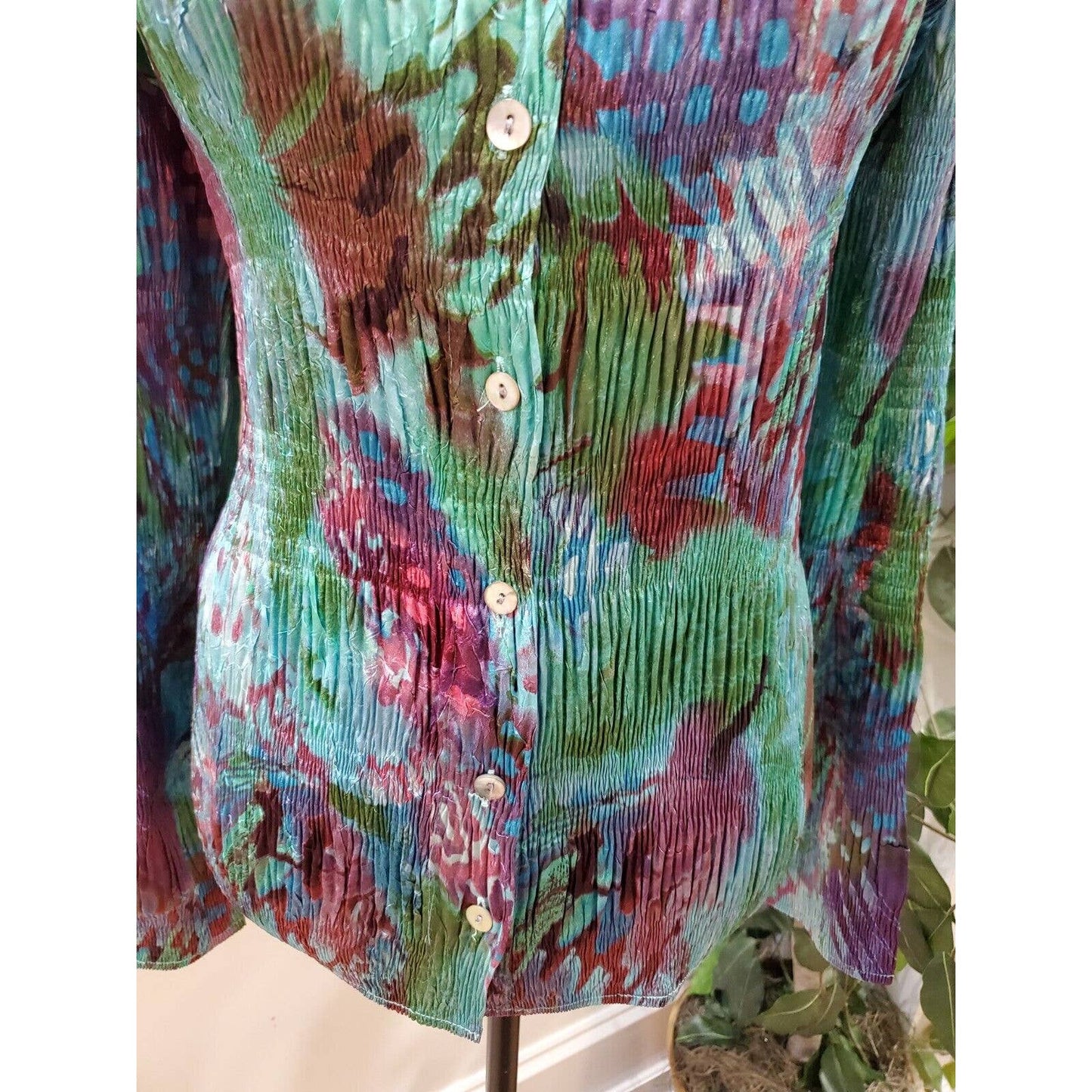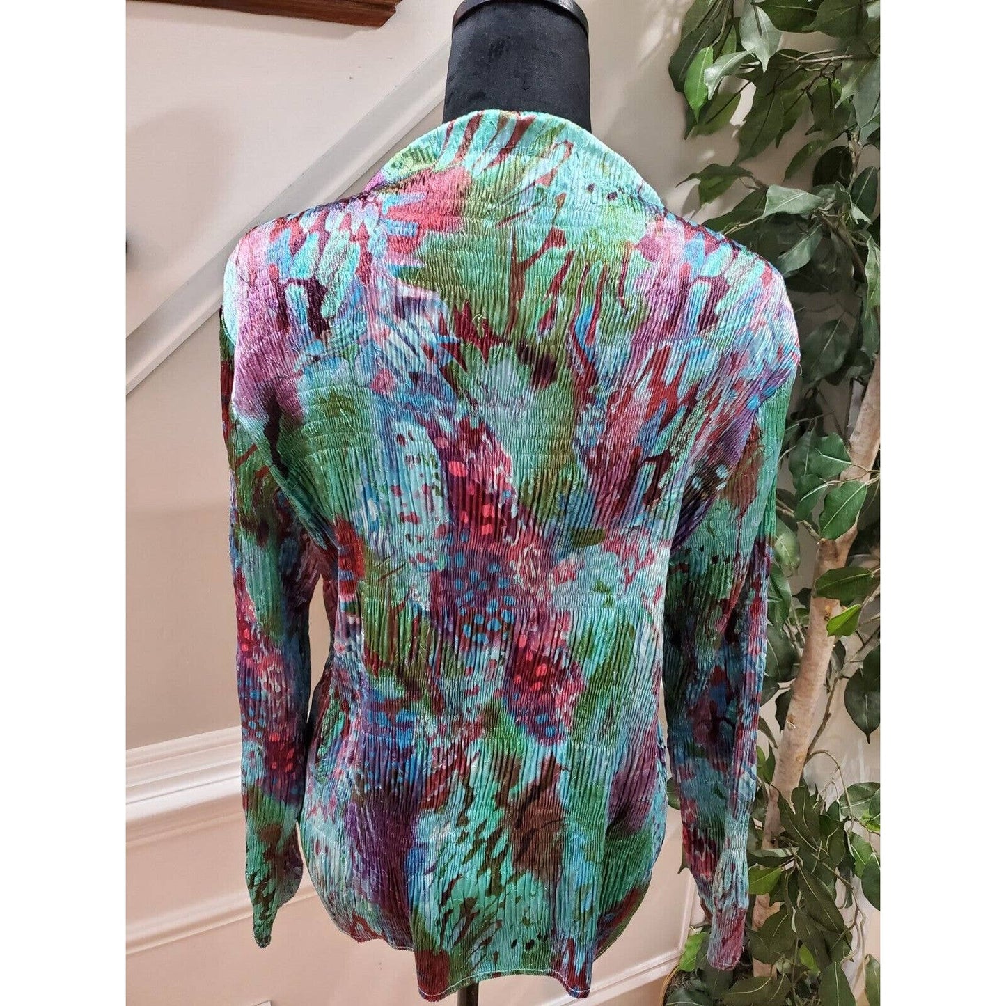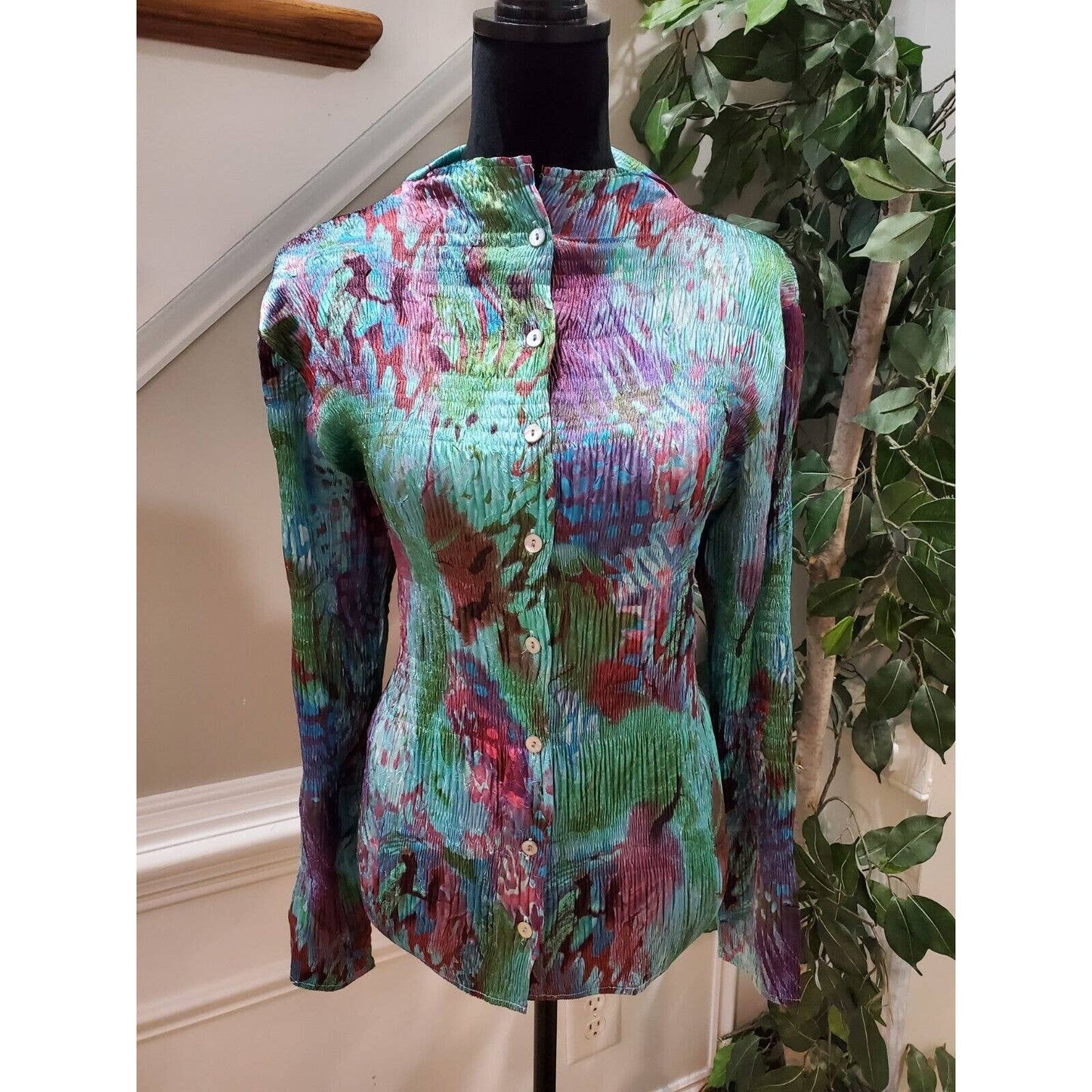 Joni B Women's Multicolor Polyester Long Sleeve Button Down Casual Shirt Size M.
