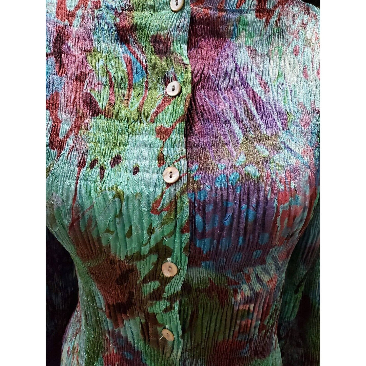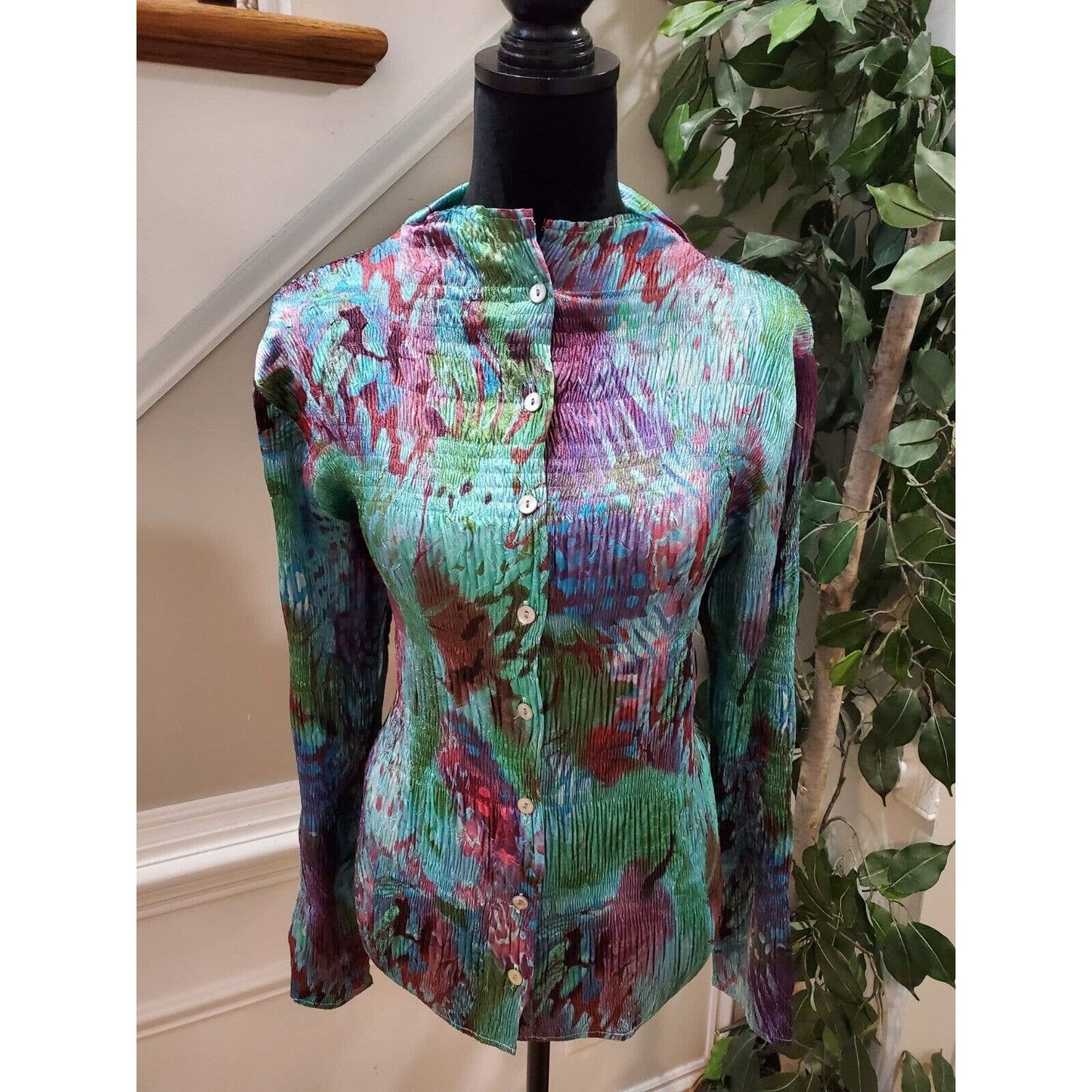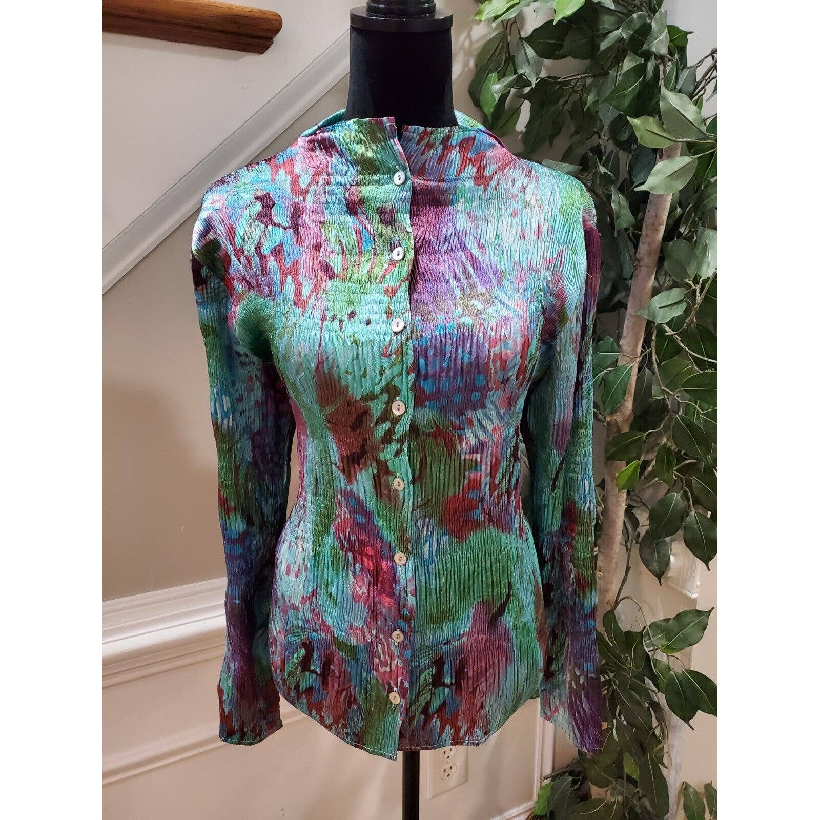 Joni B Women's Multicolor Polyester Long Sleeve Button Down Casual Shirt Size M.