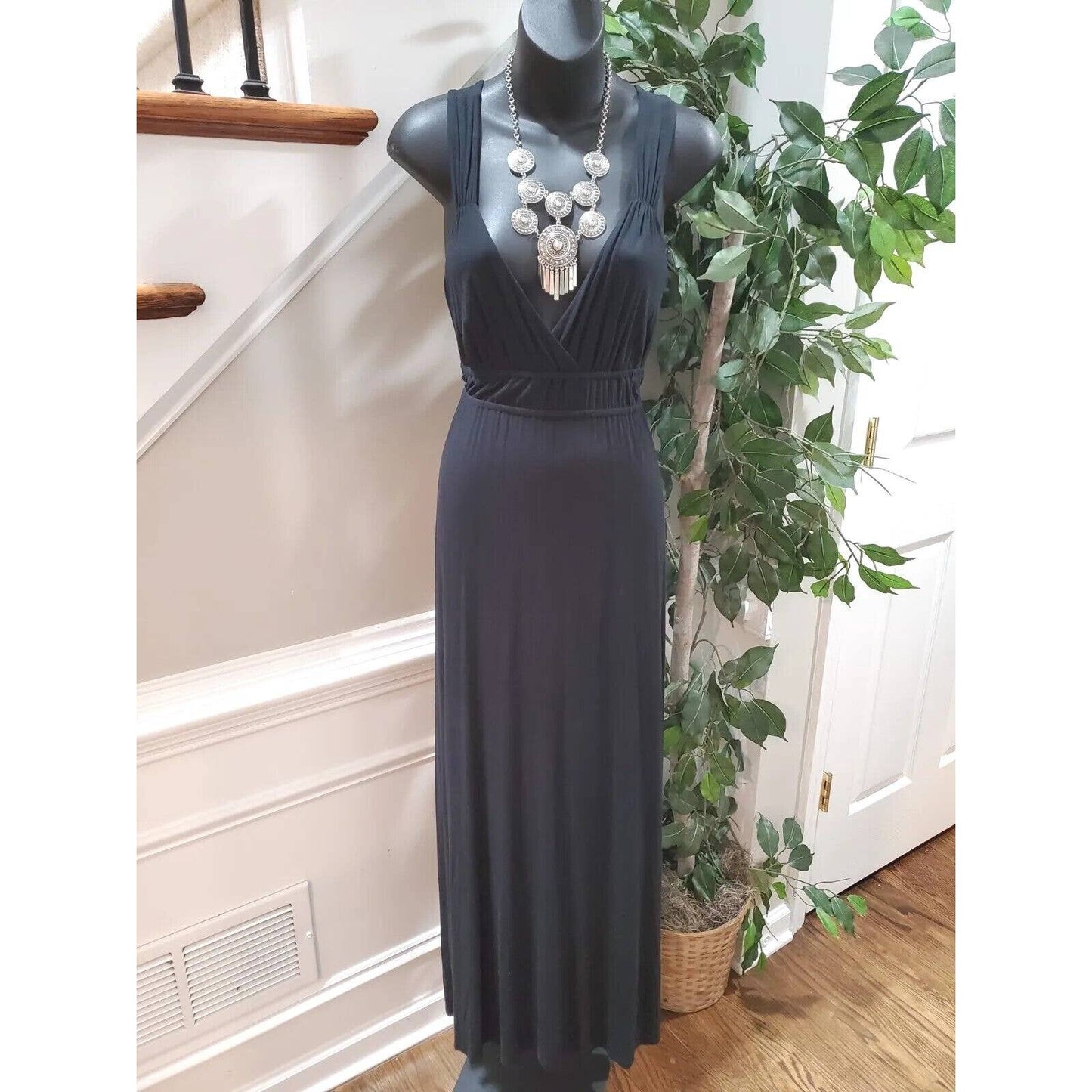 Kristin Davis Women's Black Rayon V-Neck Sleeveless Long Maxi Dress Size Small