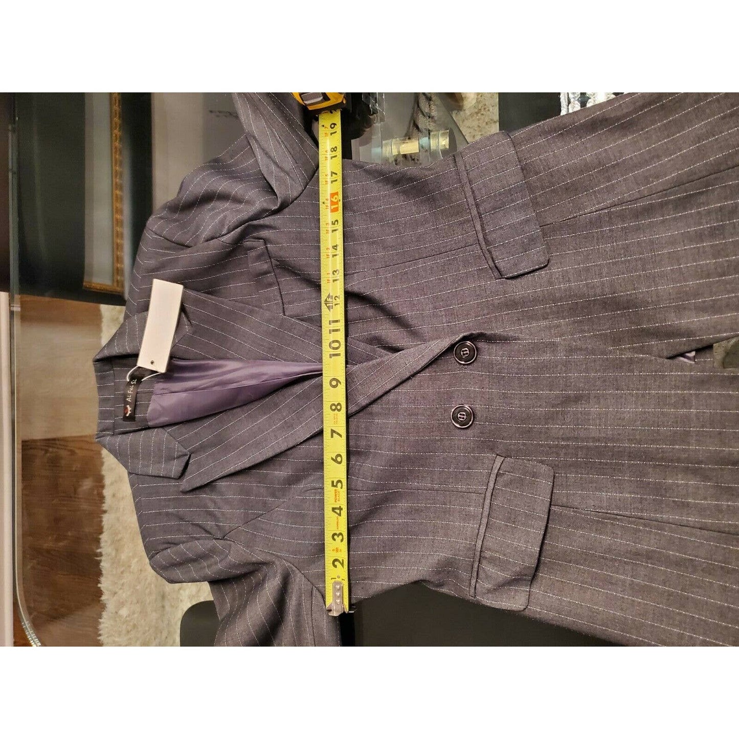 Lisueyne Women Gray Lined Polyester Long Sleeve Single Breasted Fitted Blazer M