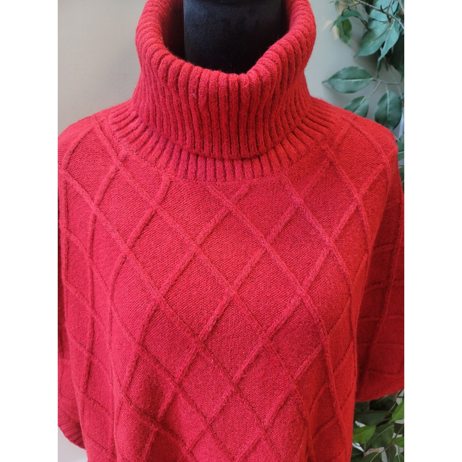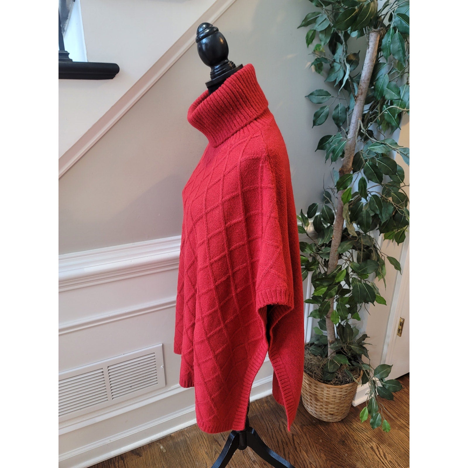 LOFT Sweater Poncho Women M/L Red Turtleneck Knit Pullover Warm Winter Top