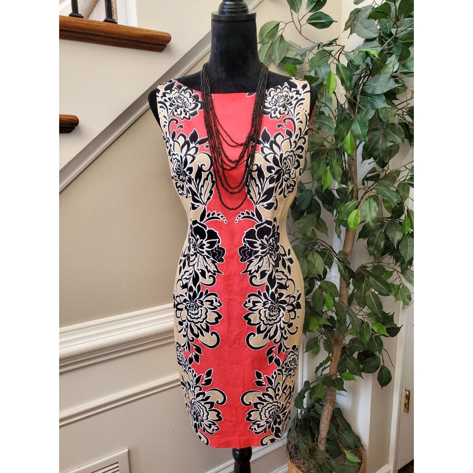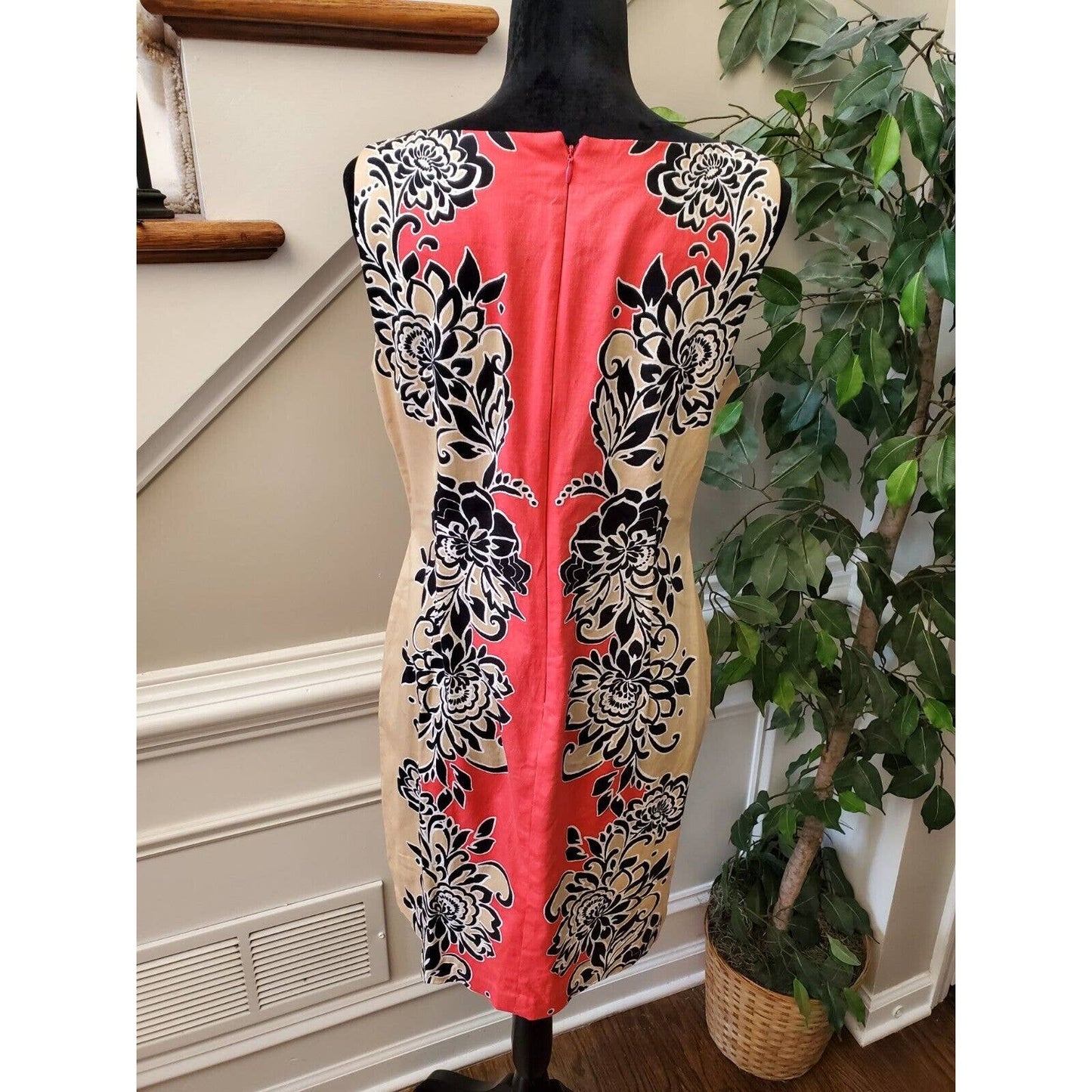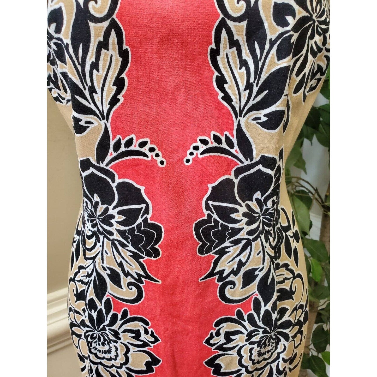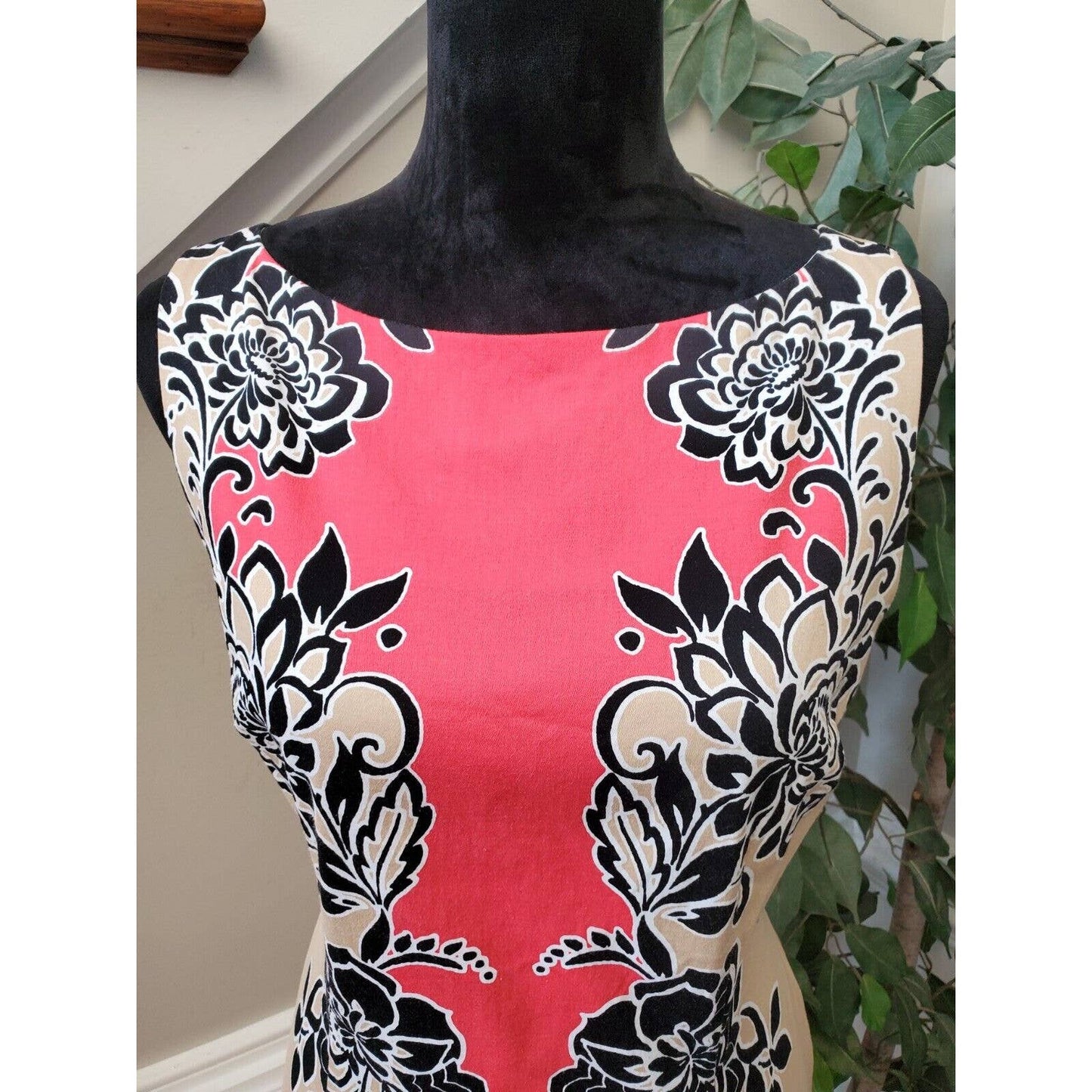 London Style Women's Floral Cotton Round Neck Sleeveless Knee Length Dress S