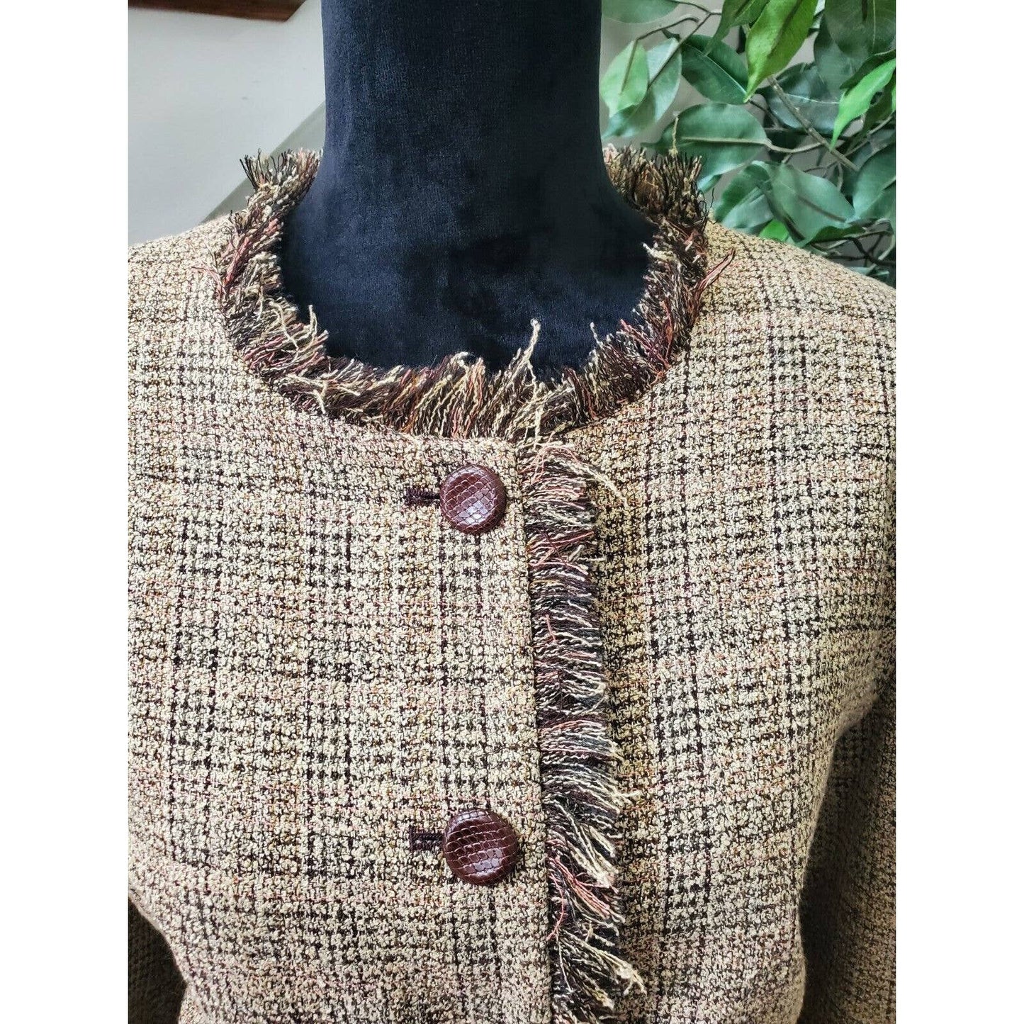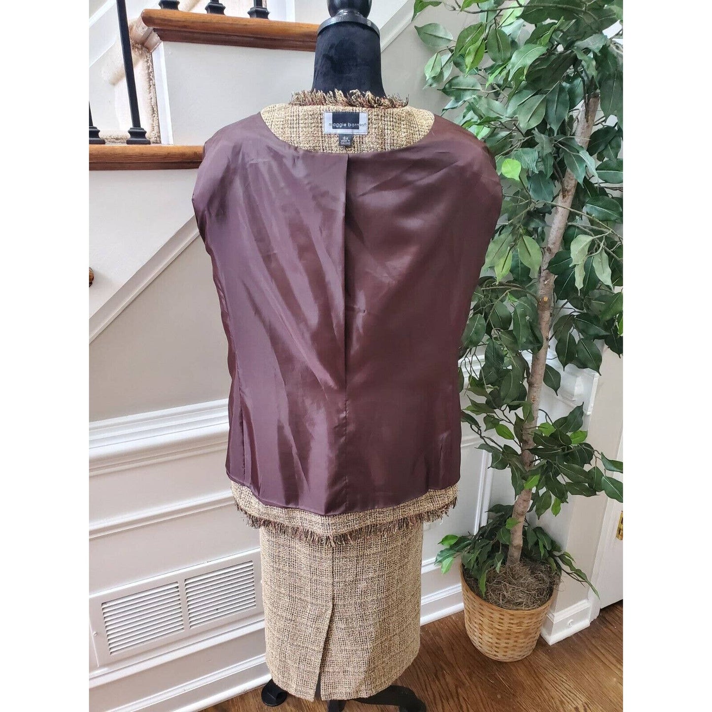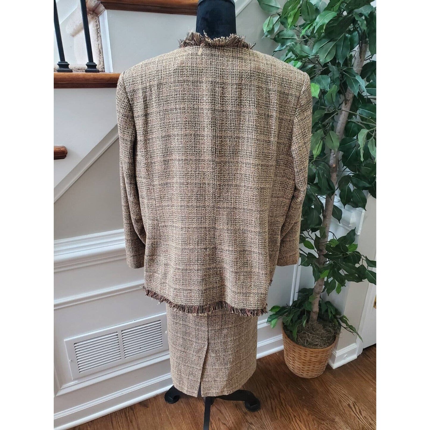 Maggie Barnes Women Brown Acrylic Long Sleeve Jacket & Skirt 2 Piece Suit 18W.