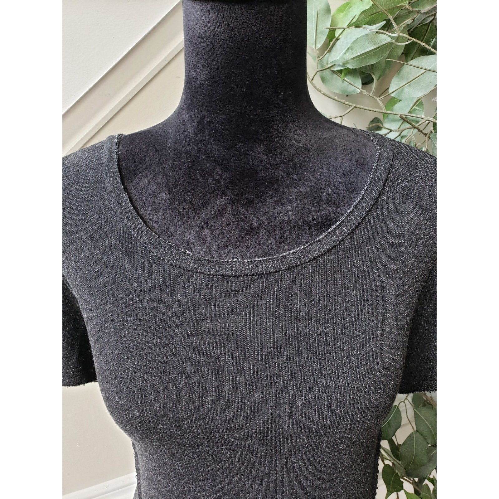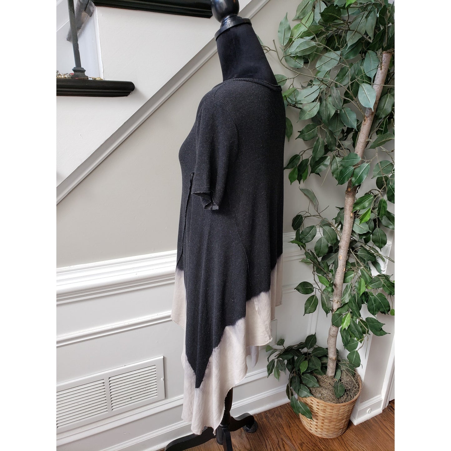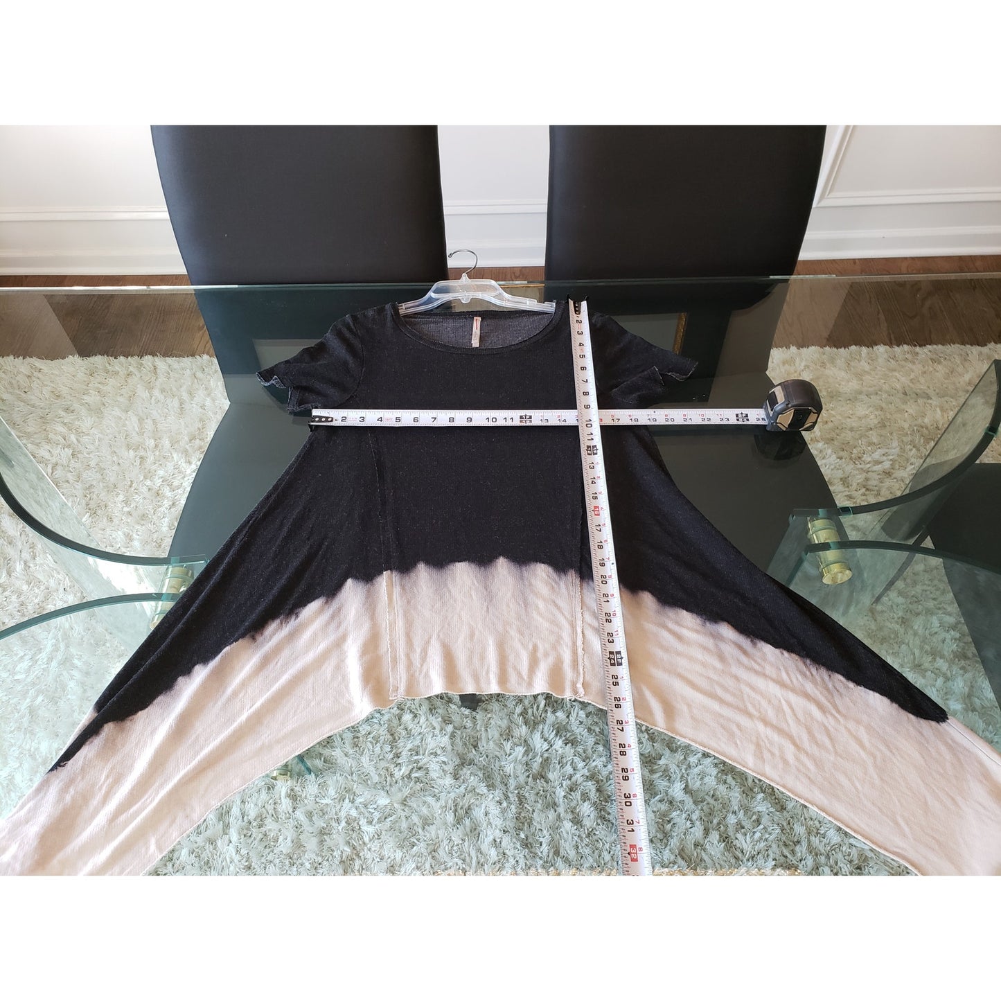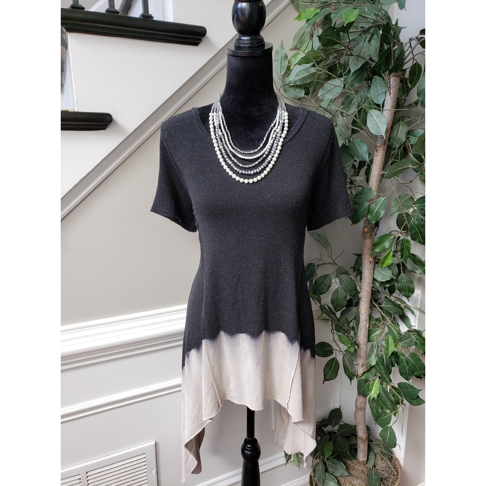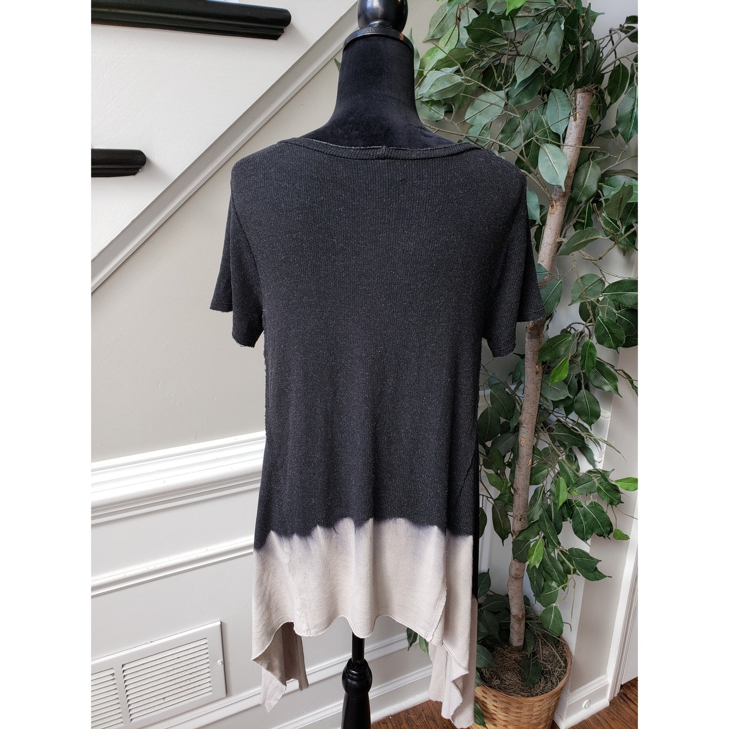 Mono B Tunic Top Womens Small Black Dip Dye Knit Short Sleeve Handkerchief Hem