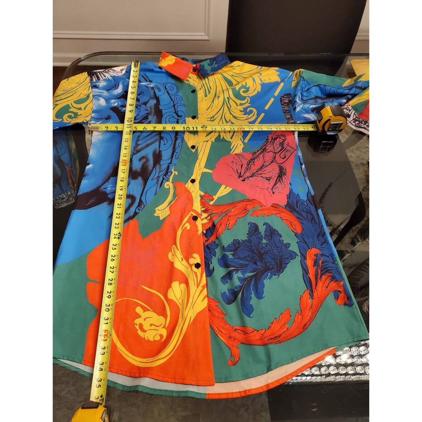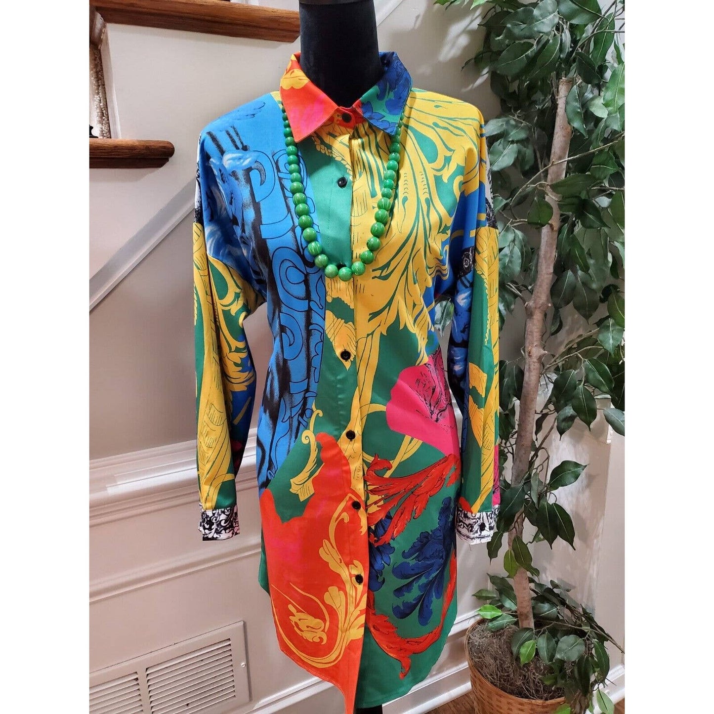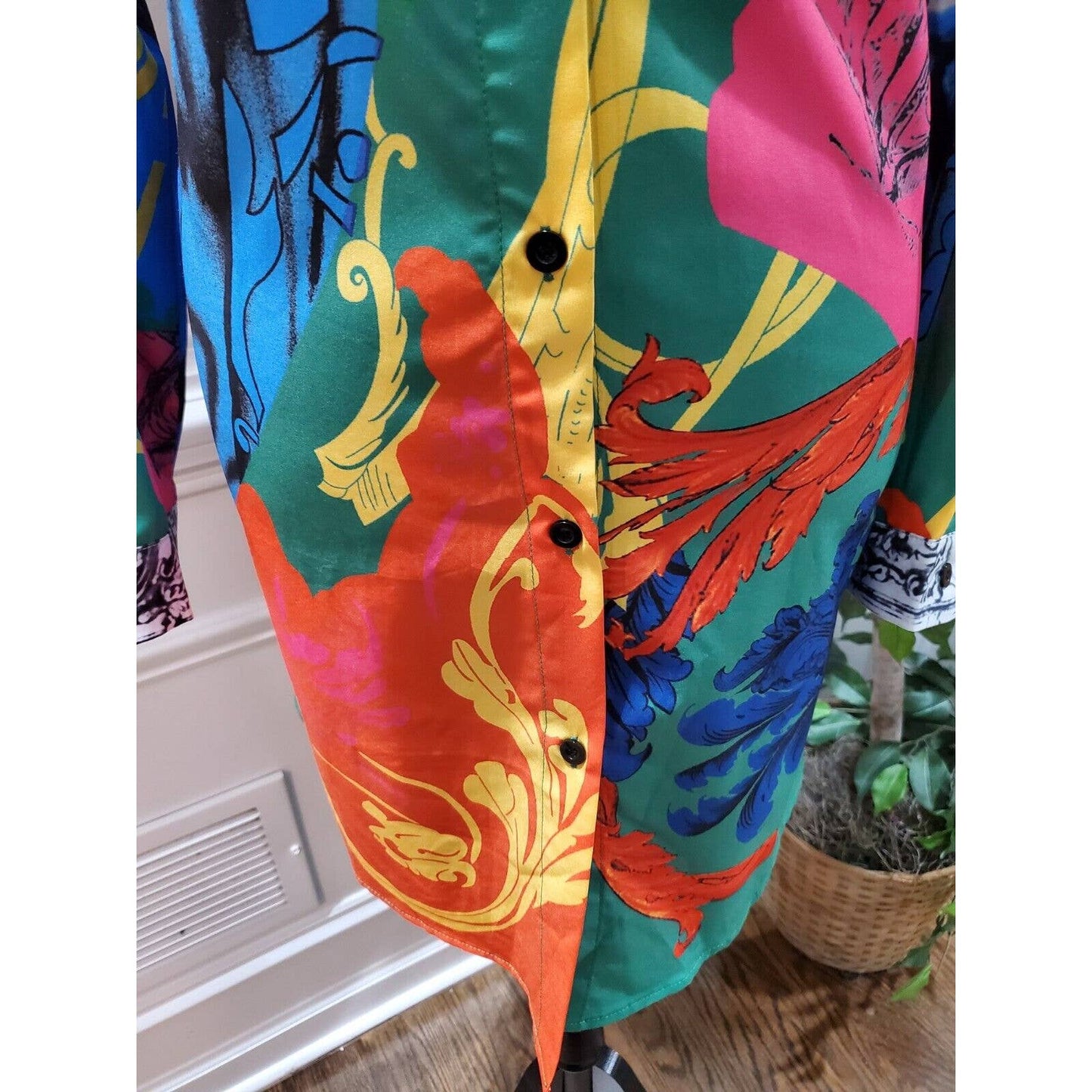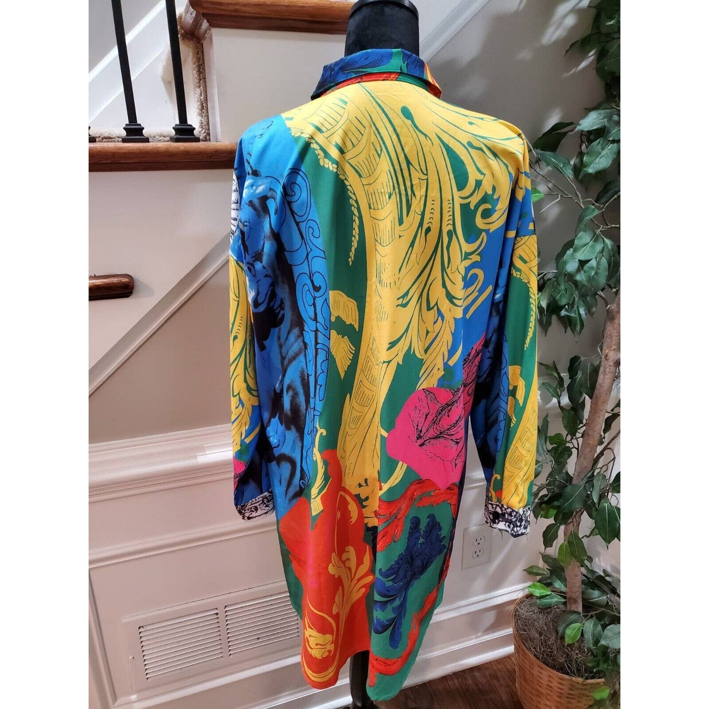 Multicolor Women Polyester Collared Long Sleeve Knee Length Shirt Dress Size 2XL.