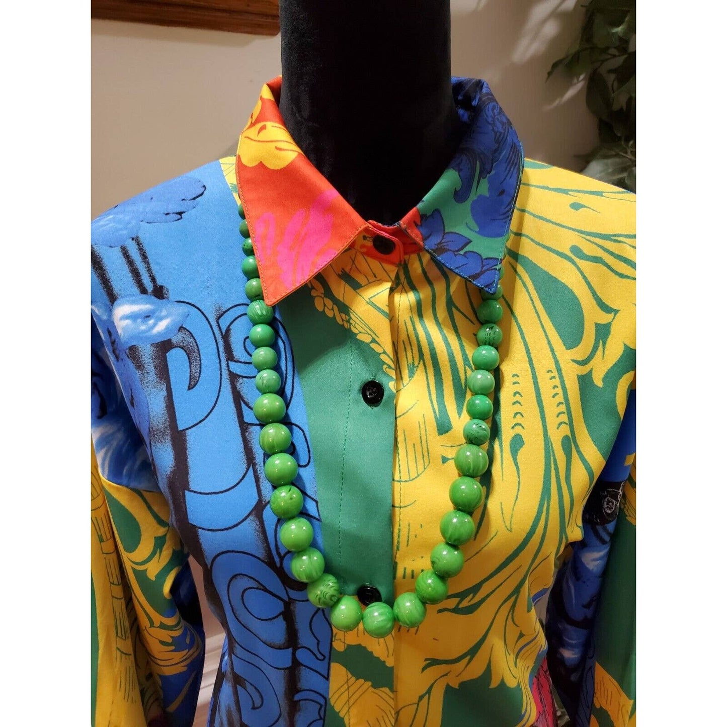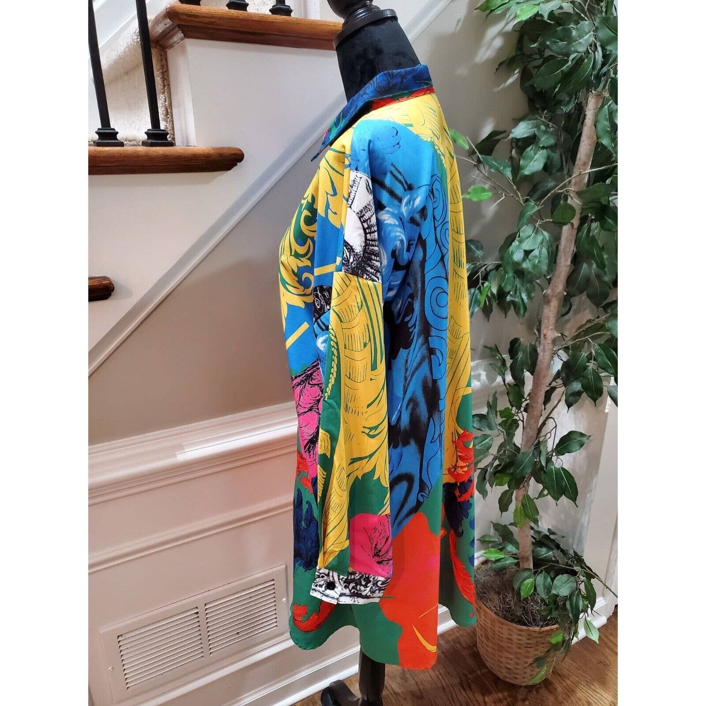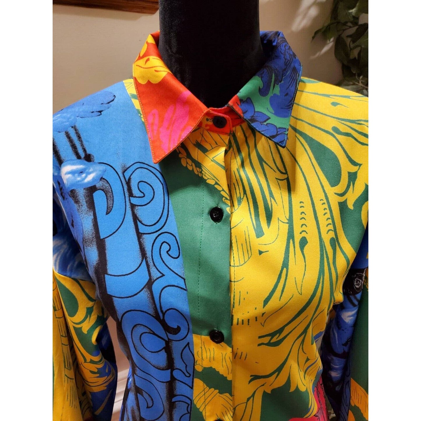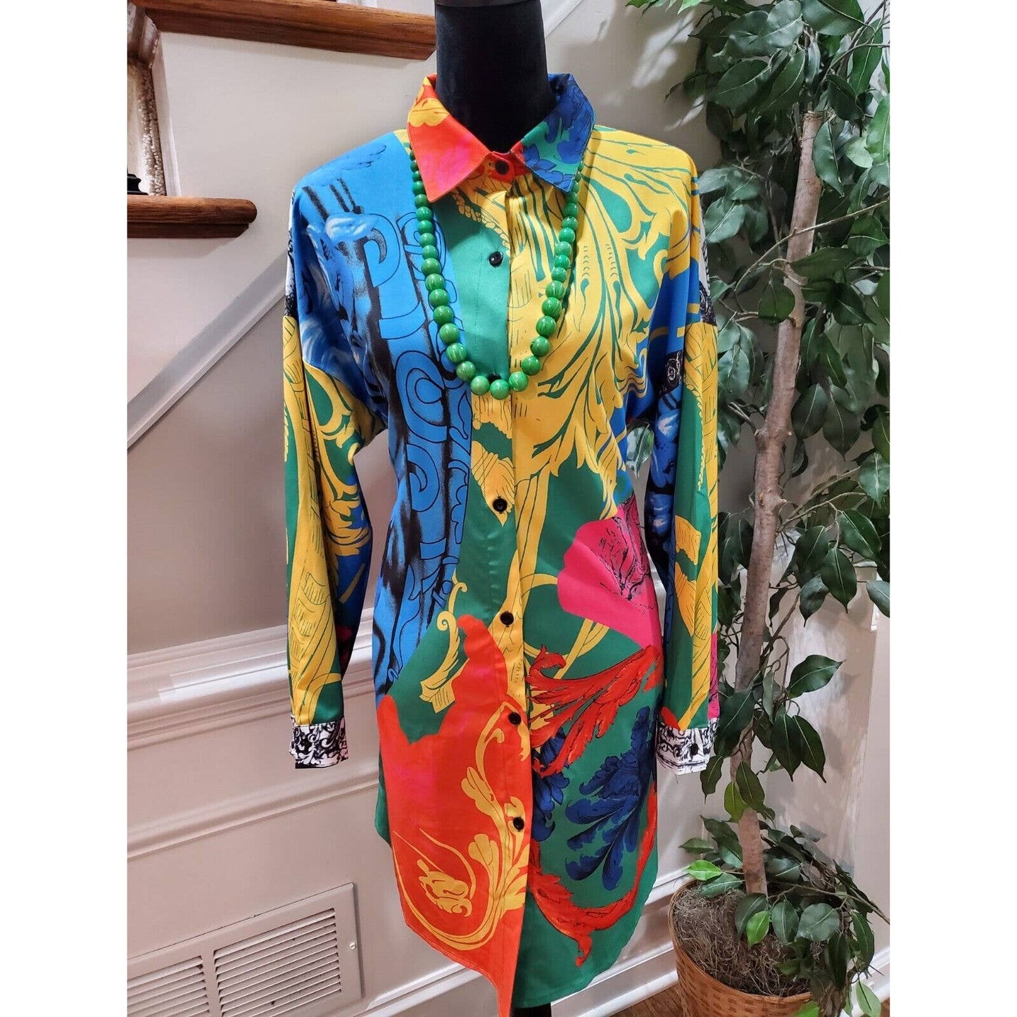 Multicolor Women Polyester Collared Long Sleeve Knee Length Shirt Dress Size 2XL.