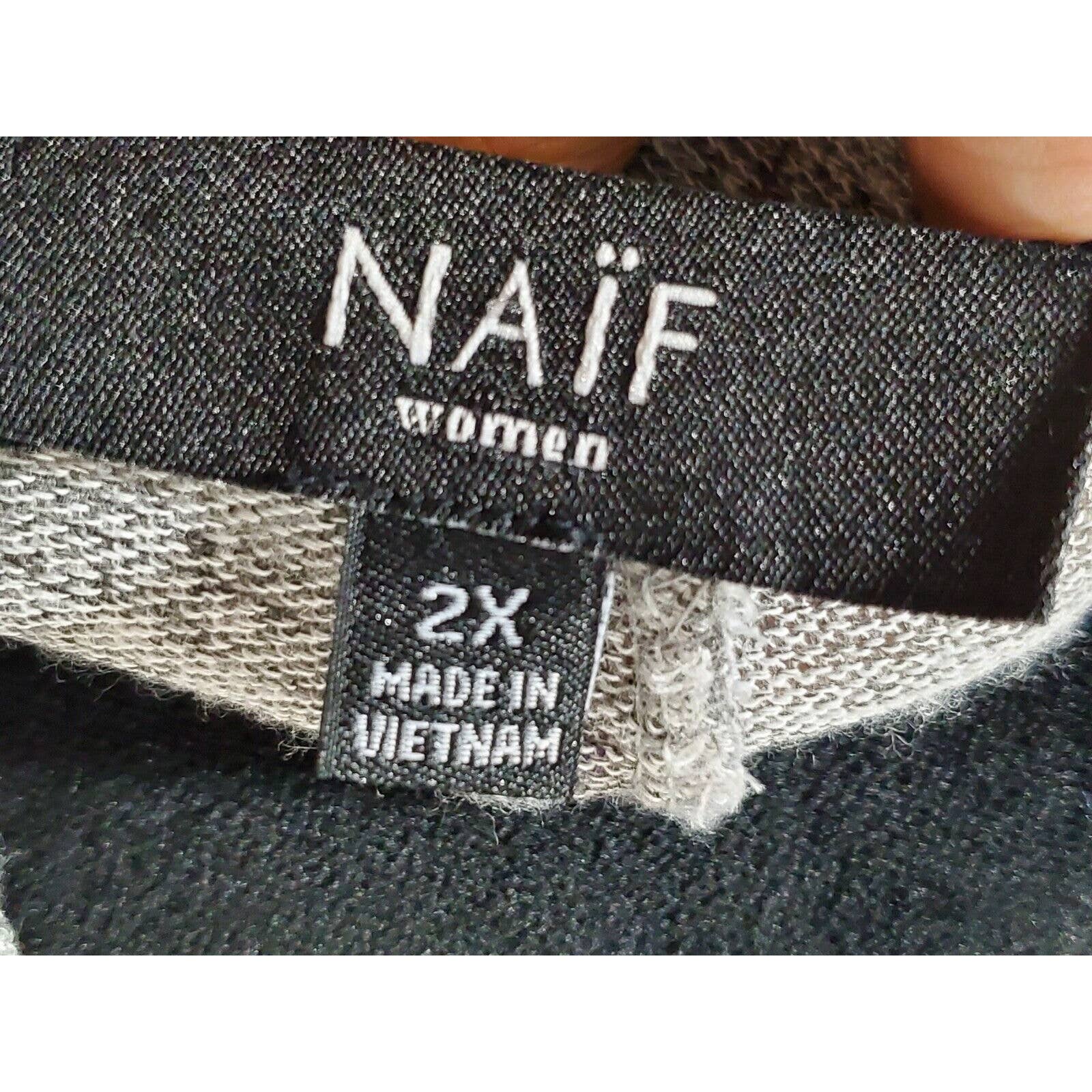 NAIF Women's Solid Gray Rayon Scoop Neck Long Sleeve Knee Length Dress Size 2X.